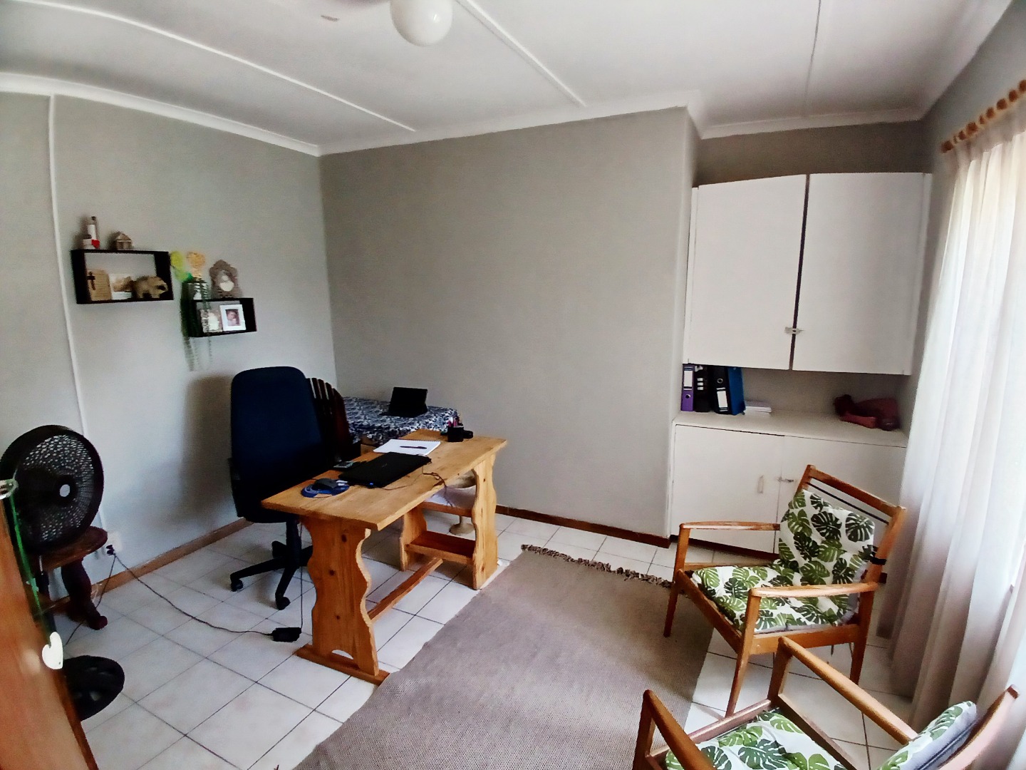 Step into exceptional value with this impressive family home, offered at R1 075 000 and designed to deliver comfort, convenience, and modern living at its best. Featuring three well-sized bedrooms and two bathrooms, including a beautifully appointed main en-suite and a full family bathroom, this home ensures effortless everyday living, complemented by a convenient guest toilet. The warm and welcoming lounge, complete with a charming fireplace, flows seamlessly into the dining area—perfect for cosy evenings and family gatherings. A private study provides the ideal work-from-home space. The newly renovated kitchen, fitted with a gas stove and an adjoining laundry area, is a standout feature that will delight any home cook. Upstairs, an air-conditioned entertainment area opens onto a lovely balcony, offering an inviting space to relax or entertain guests.The outdoor spaces are just as impressive, boasting a spacious garden with an enclosed vegetable garden for those who love to grow their own produce, along with a dedicated outdoor braai area designed for alfresco living. Practicality is taken care of with a single garage, secure parking, a storeroom, and an SQ toilet. Added extras such as a water tank and two JoJo tanks with a pressure pump provide peace of mind and support sustainable living.This is a home that truly offers more—more space, more comfort, and more value. A must-see for buyers seeking a move-in-ready property with standout features.