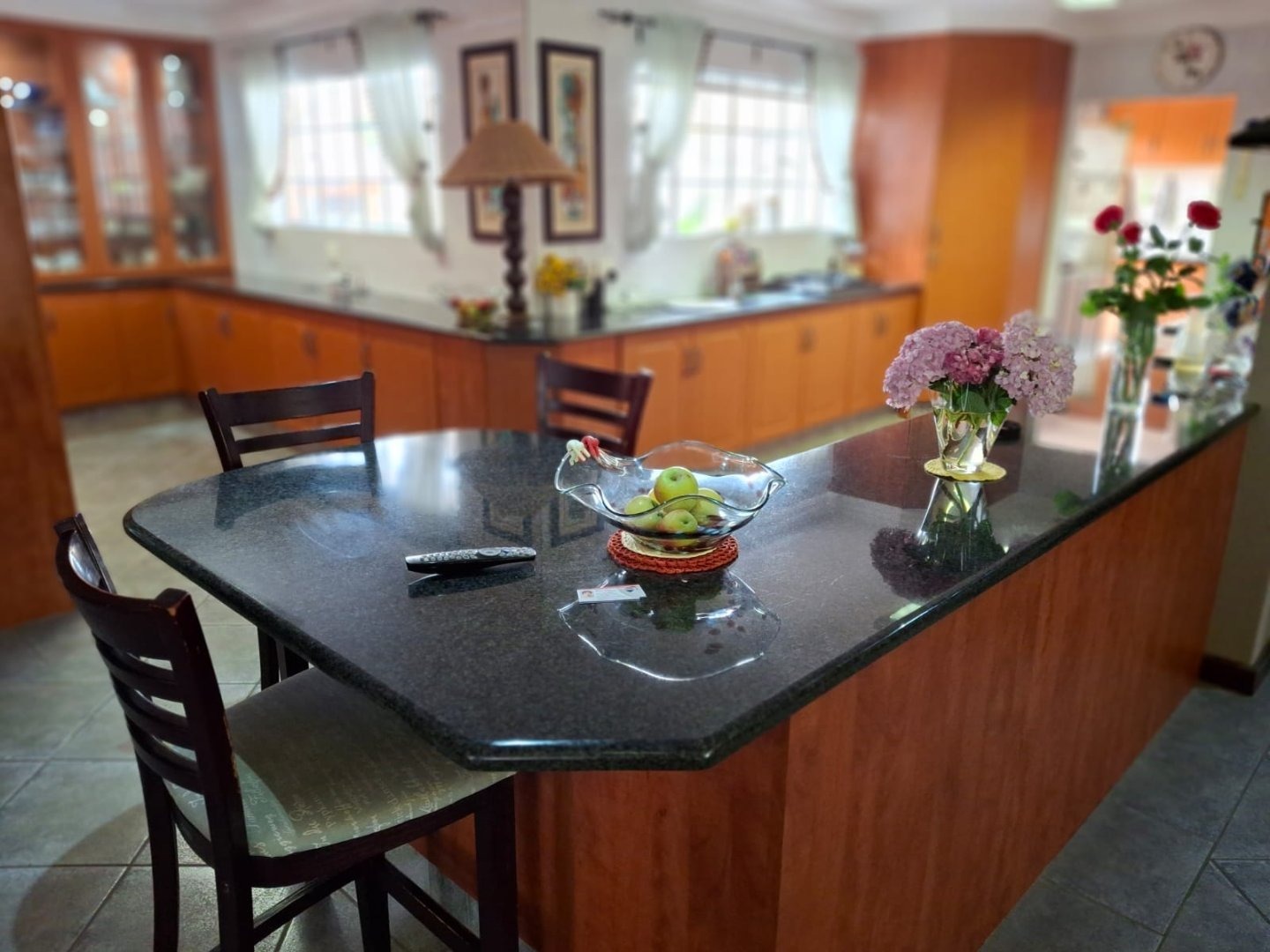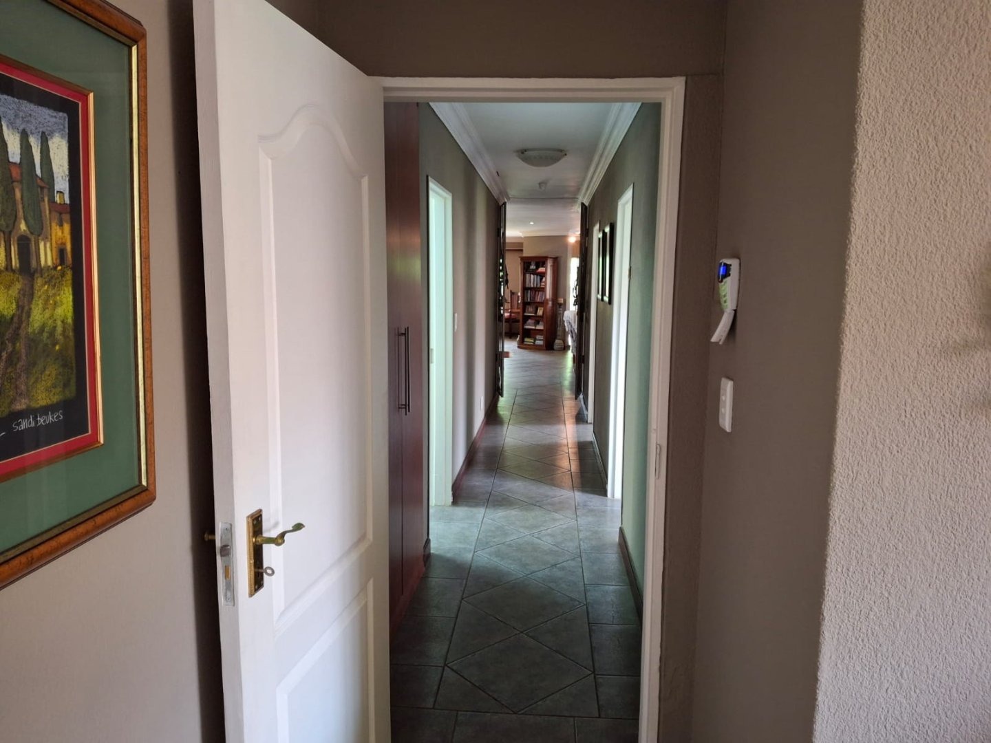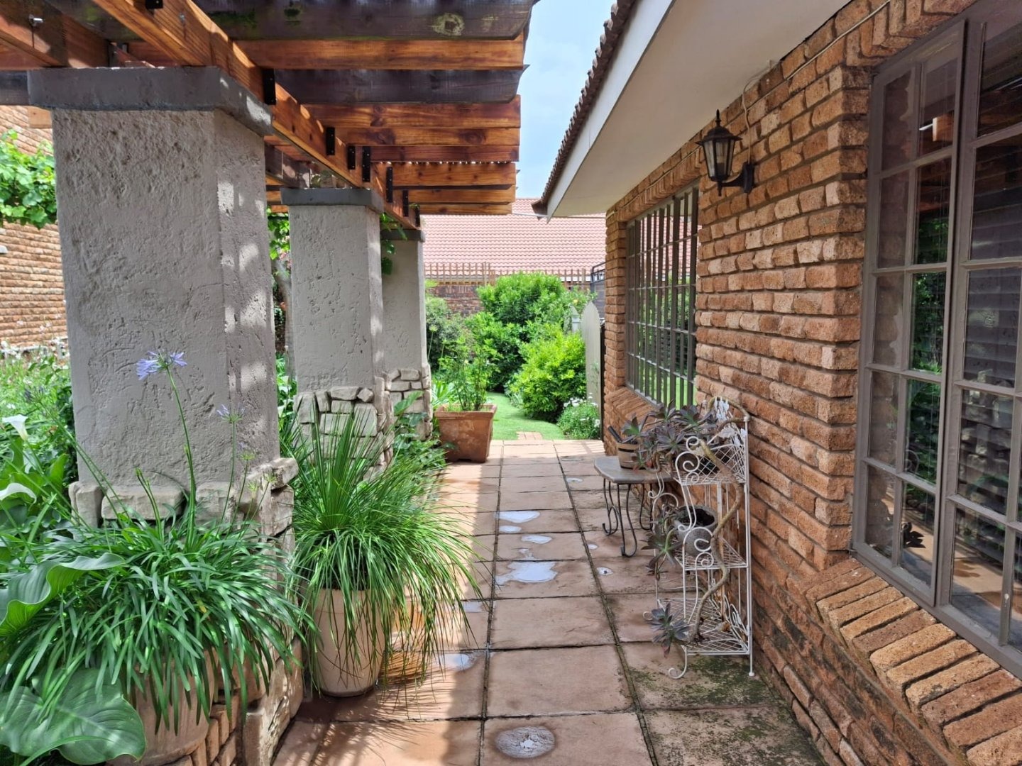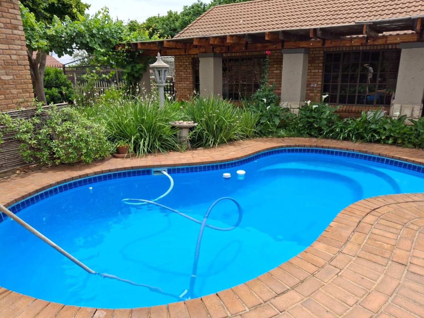 Outdoor areas offer ample space for relaxation and entertainment with a sparkling blue swimming pool. The lapa is every entertainer's dream, laid out neatly, paved with a landscaped garden. There is also, for the greenfinger, an established veggie garden and fruit trees.