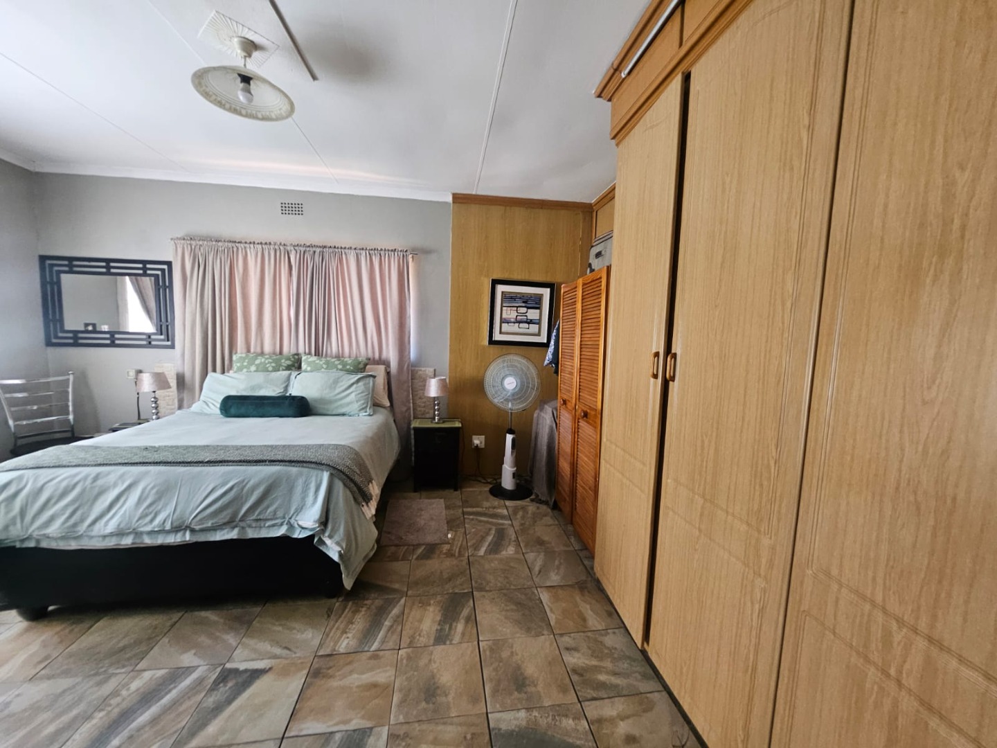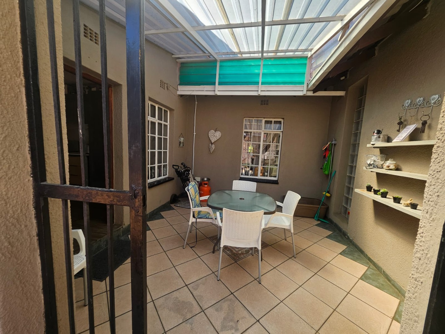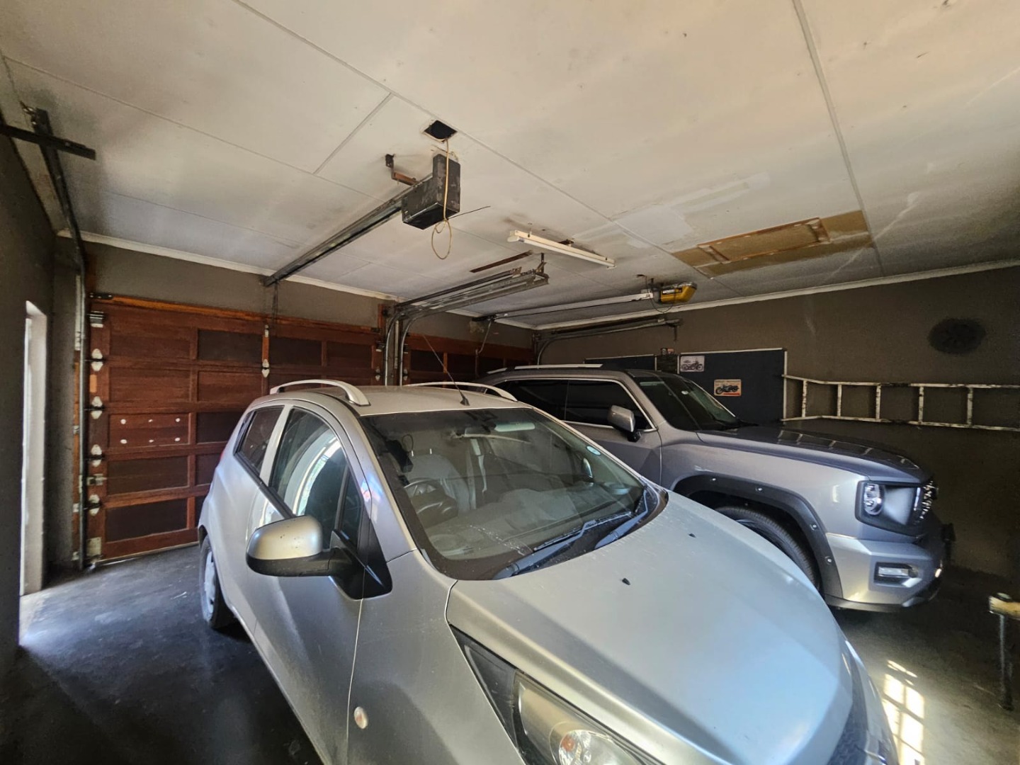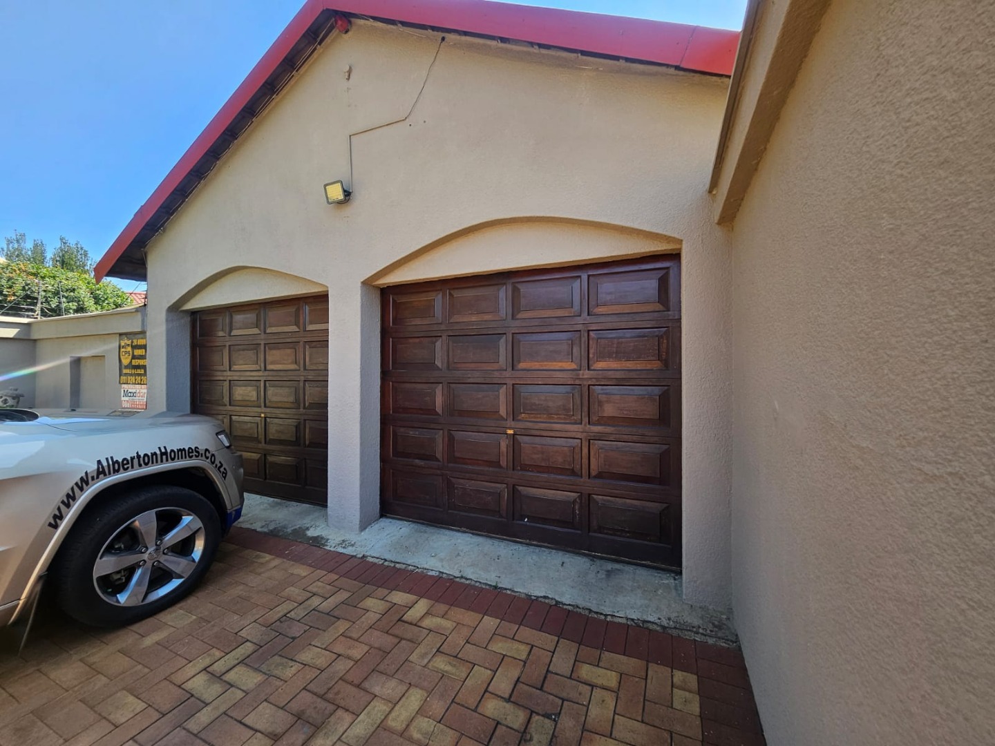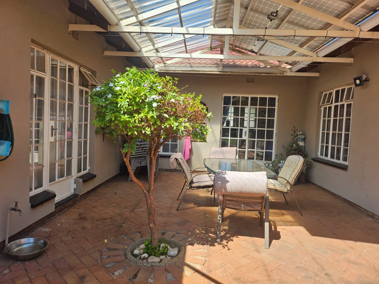 Outdoor living is a delight with a covered patio, perfect for al fresco dining and relaxation, featuring brick paving and an established tree. The property boasts a refreshing swimming pool, ideal for warm South African days and a well kept garden. Parking is well catered for with two garages and additional parking spaces. Security is a priority, with electric fencing, an access gate, burglar bars and security gates. The property is totally walled, providing privacy. This home embraces sustainability with solar panels and a solar geyser, contributing to energy efficiency. Fibre internet is installed and pets are welcome.