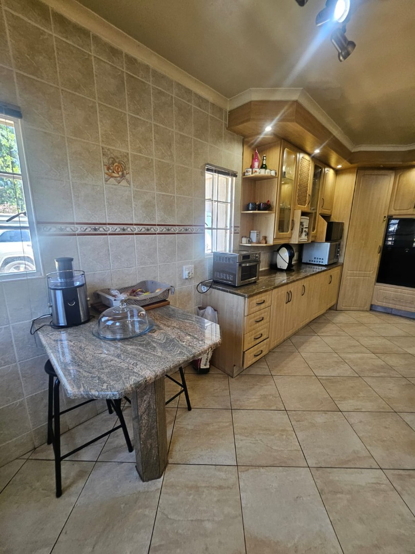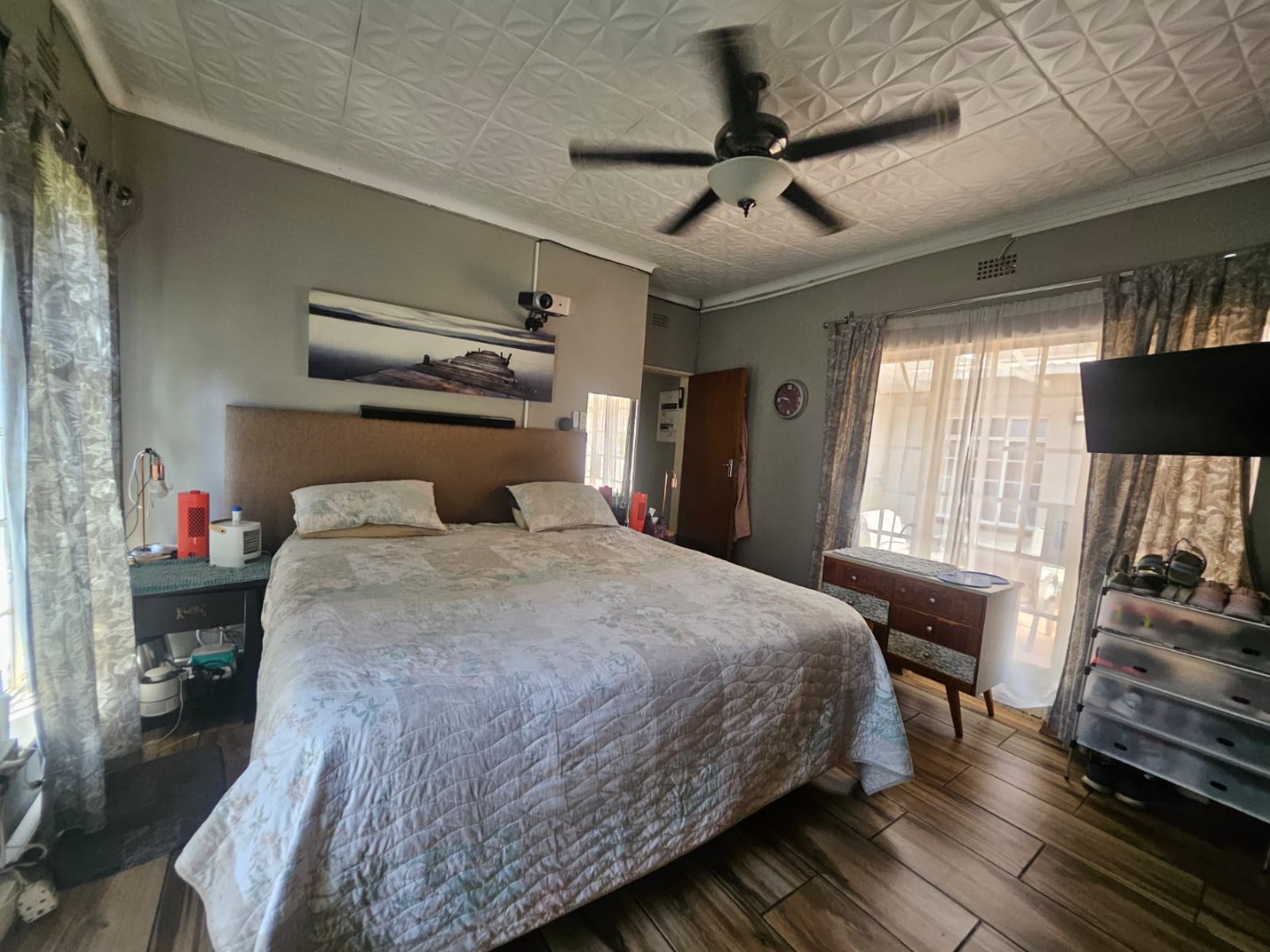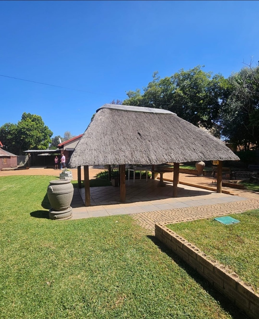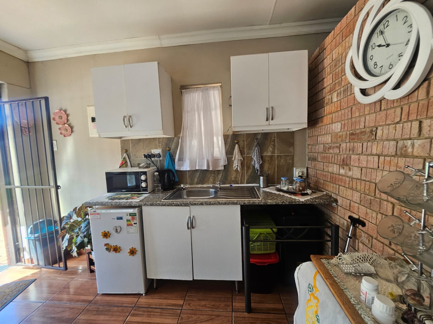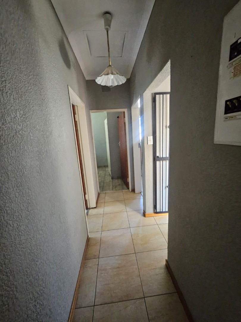 Outdoor living is a delight with a covered patio, perfect for al fresco dining and relaxation, featuring brick paving and an established tree. The property boasts a refreshing swimming pool, ideal for warm South African days and a well kept garden. Parking is well catered for with two garages and additional parking spaces. Security is a priority, with electric fencing, an access gate, burglar bars and security gates. The property is totally walled, providing privacy. This home embraces sustainability with solar panels and a solar geyser, contributing to energy efficiency. Fibre internet is installed and pets are welcome.