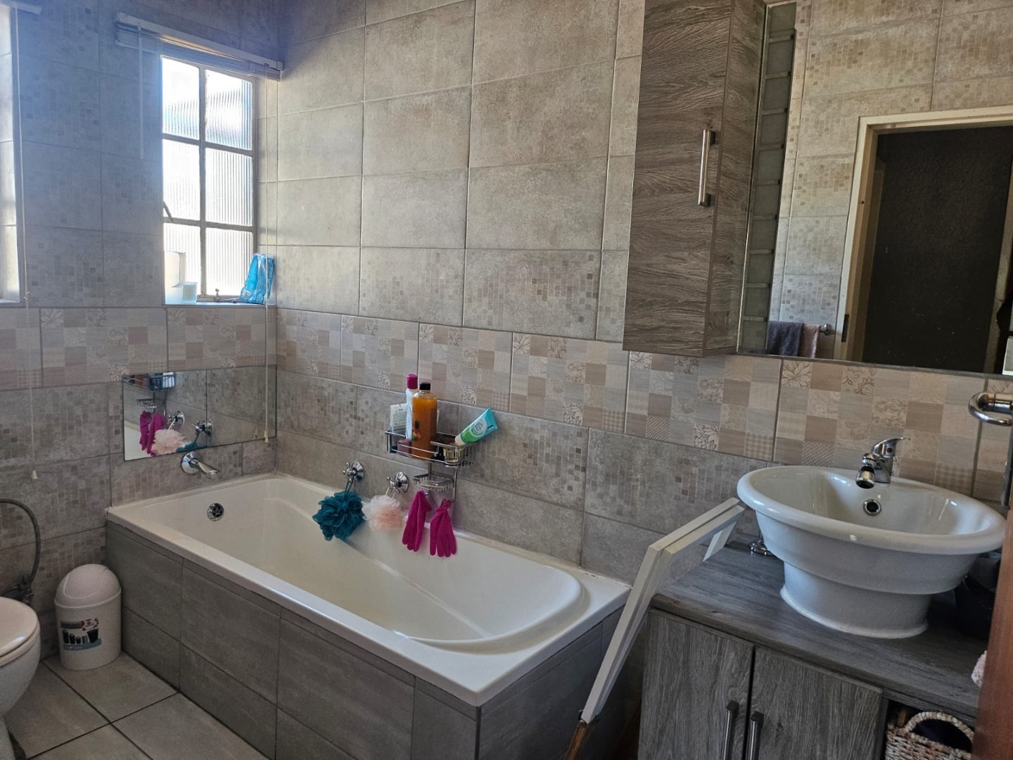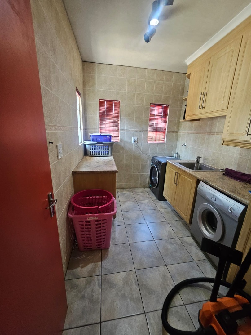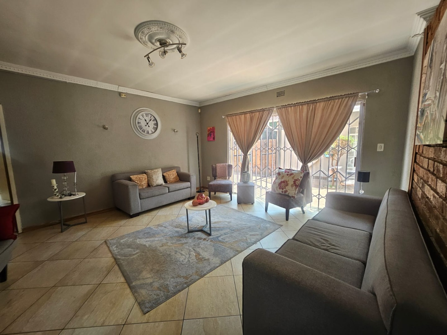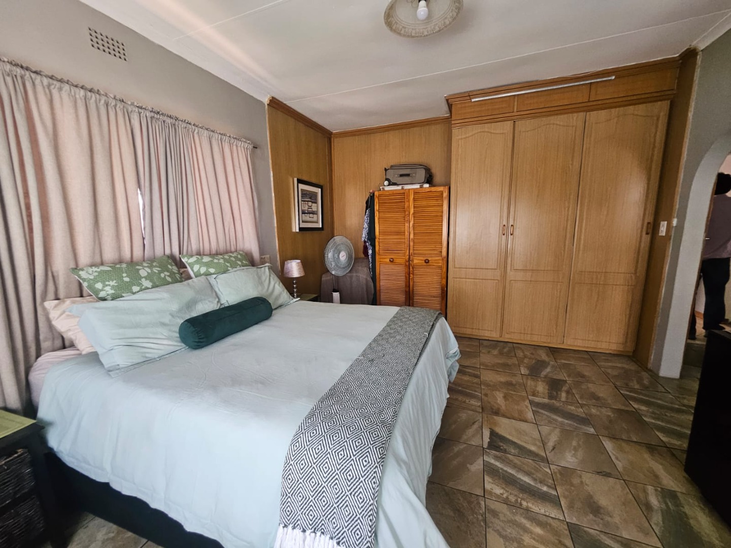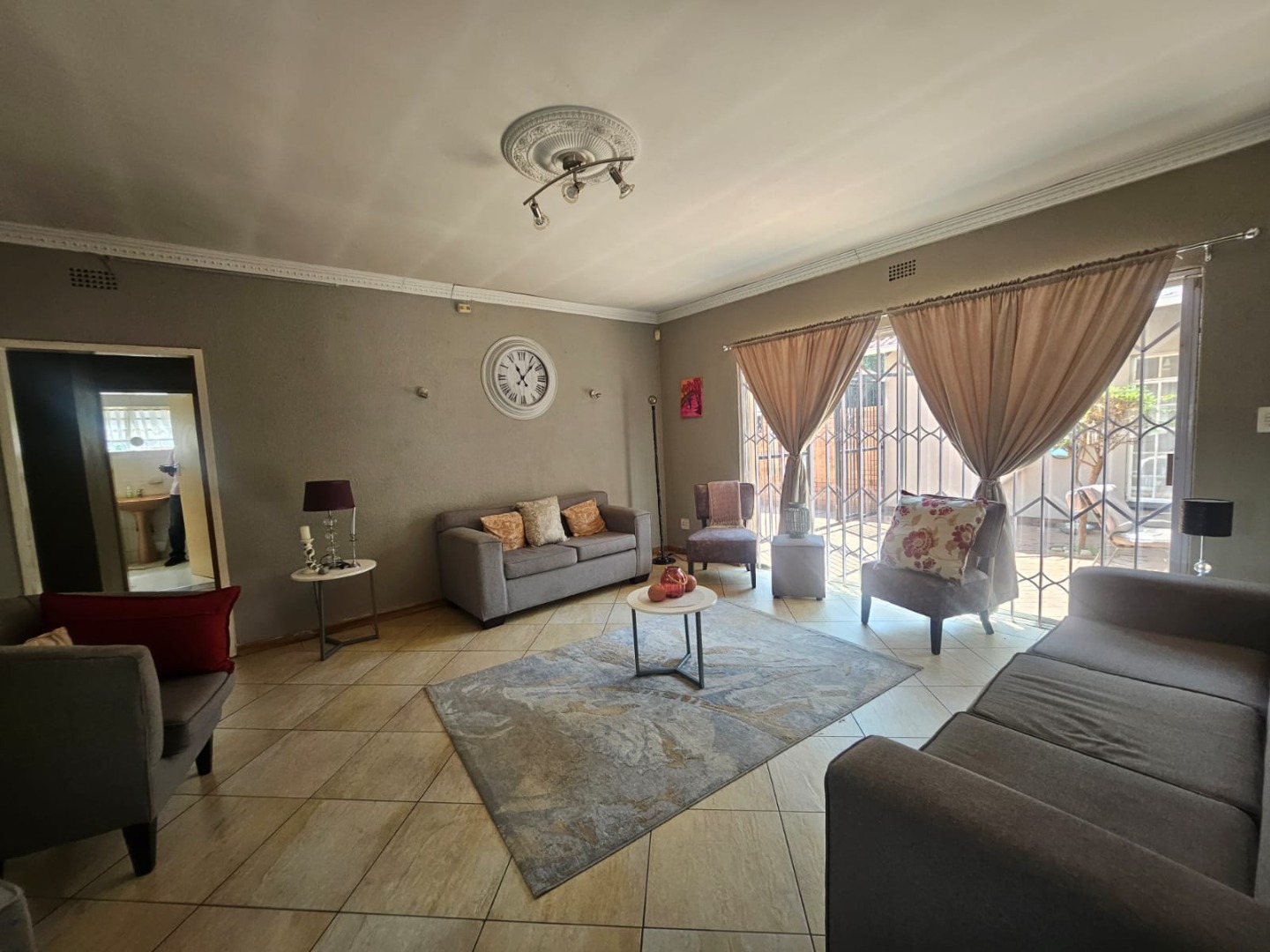 Outdoor living is a delight with a covered patio, perfect for al fresco dining and relaxation, featuring brick paving and an established tree. The property boasts a refreshing swimming pool, ideal for warm South African days and a well kept garden. Parking is well catered for with two garages and additional parking spaces. Security is a priority, with electric fencing, an access gate, burglar bars and security gates. The property is totally walled, providing privacy. This home embraces sustainability with solar panels and a solar geyser, contributing to energy efficiency. Fibre internet is installed and pets are welcome.