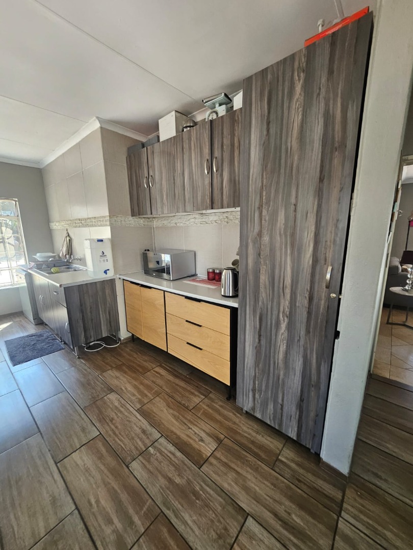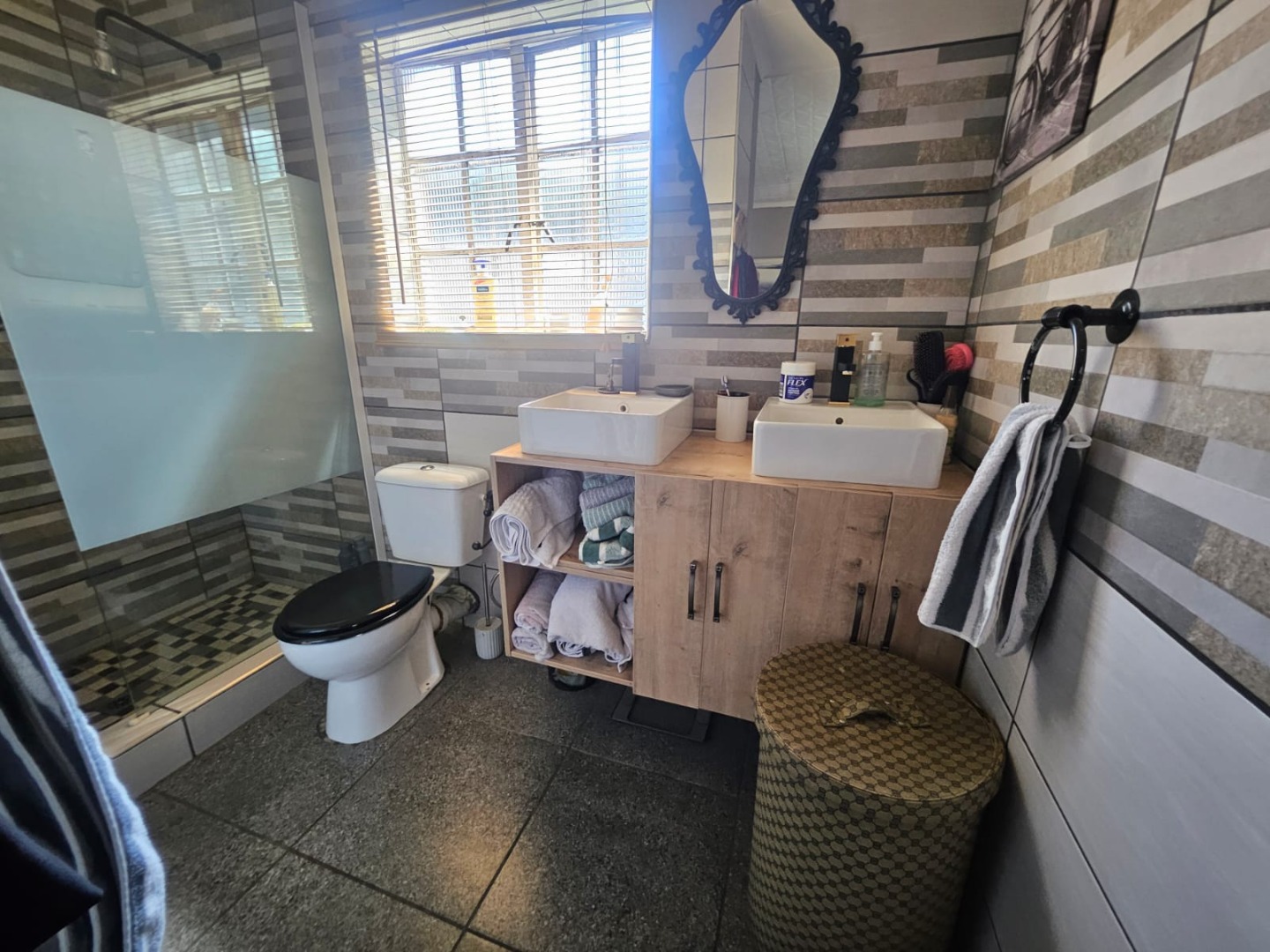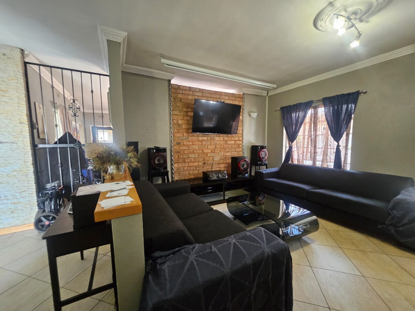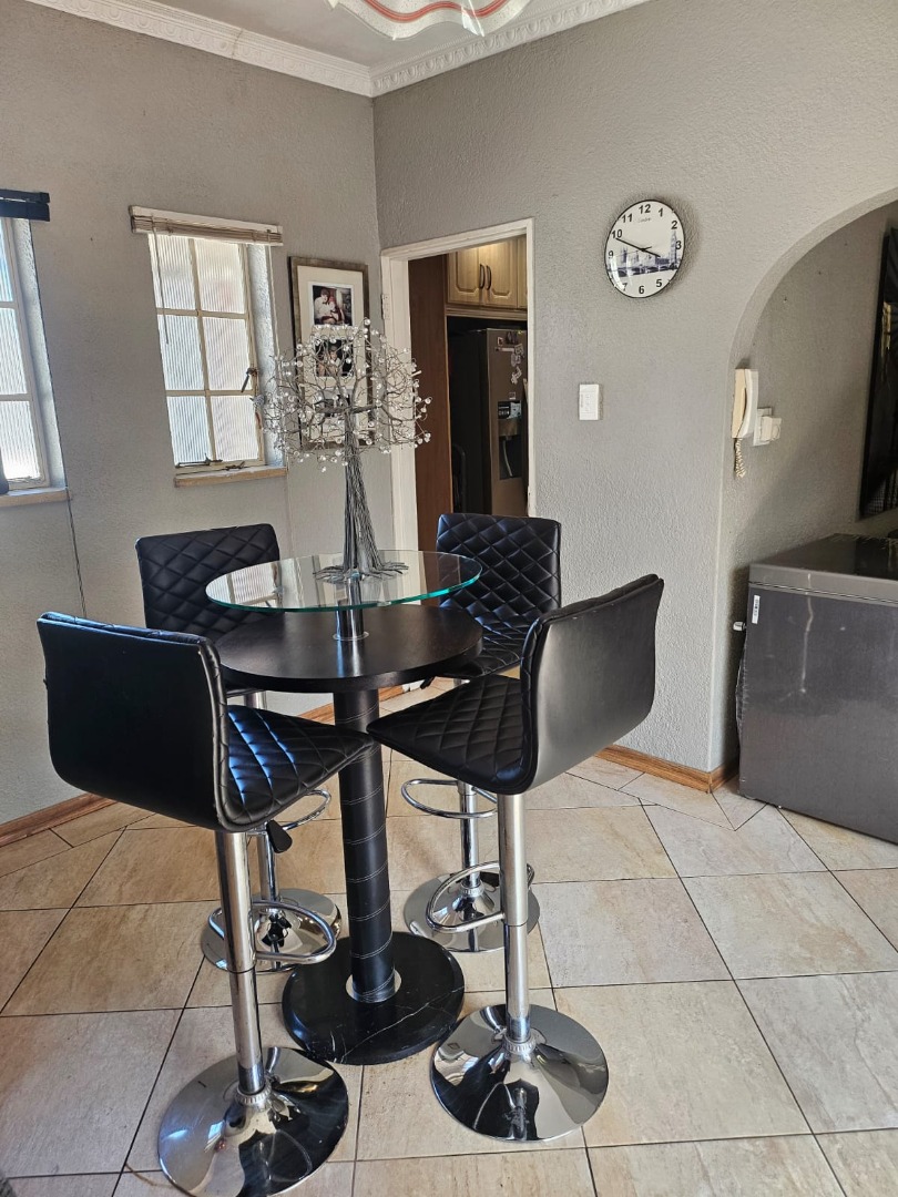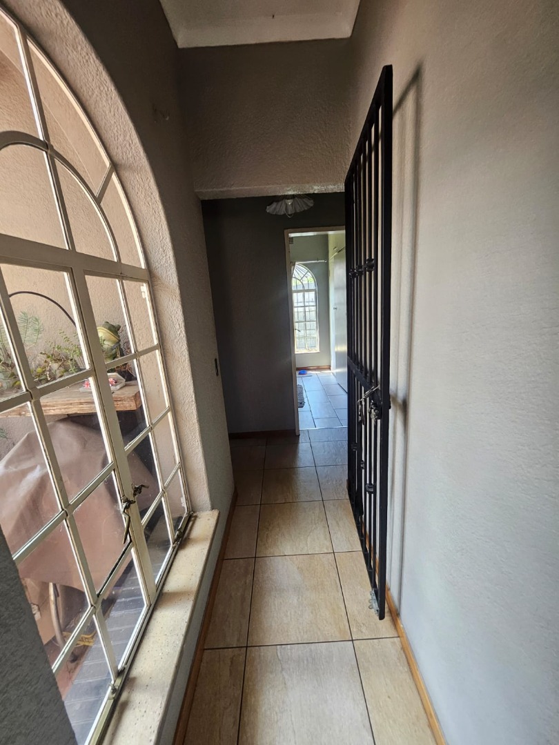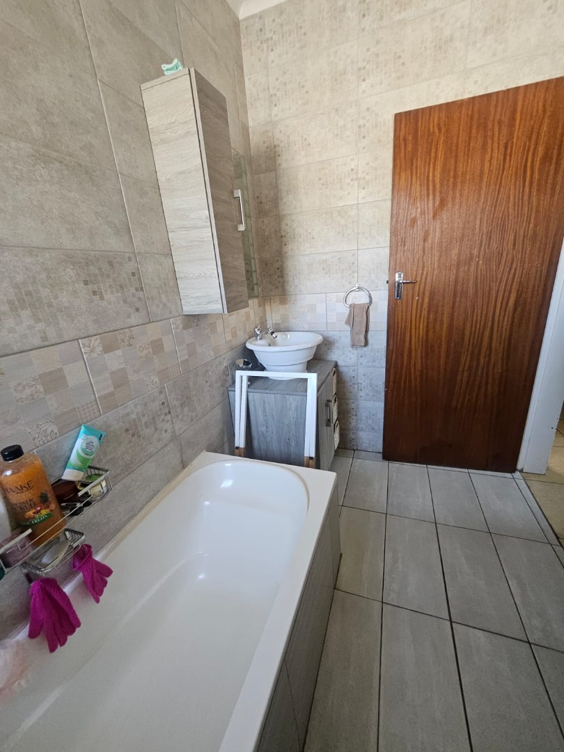 Outdoor living is a delight with a covered patio, perfect for al fresco dining and relaxation, featuring brick paving and an established tree. The property boasts a refreshing swimming pool, ideal for warm South African days and a well kept garden. Parking is well catered for with two garages and additional parking spaces. Security is a priority, with electric fencing, an access gate, burglar bars and security gates. The property is totally walled, providing privacy. This home embraces sustainability with solar panels and a solar geyser, contributing to energy efficiency. Fibre internet is installed and pets are welcome.