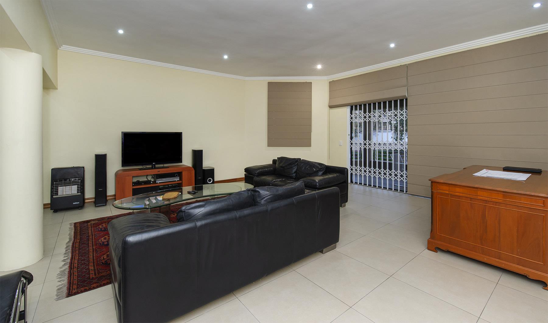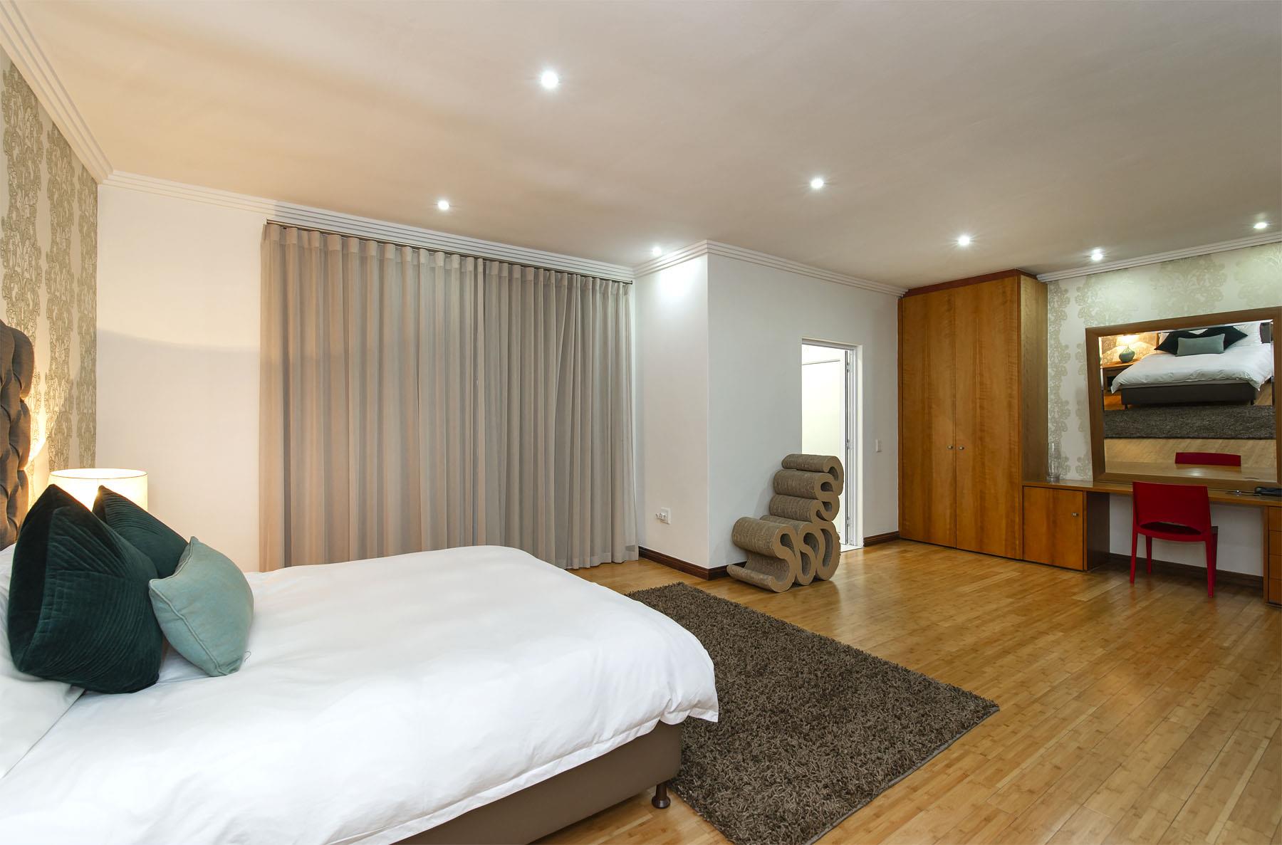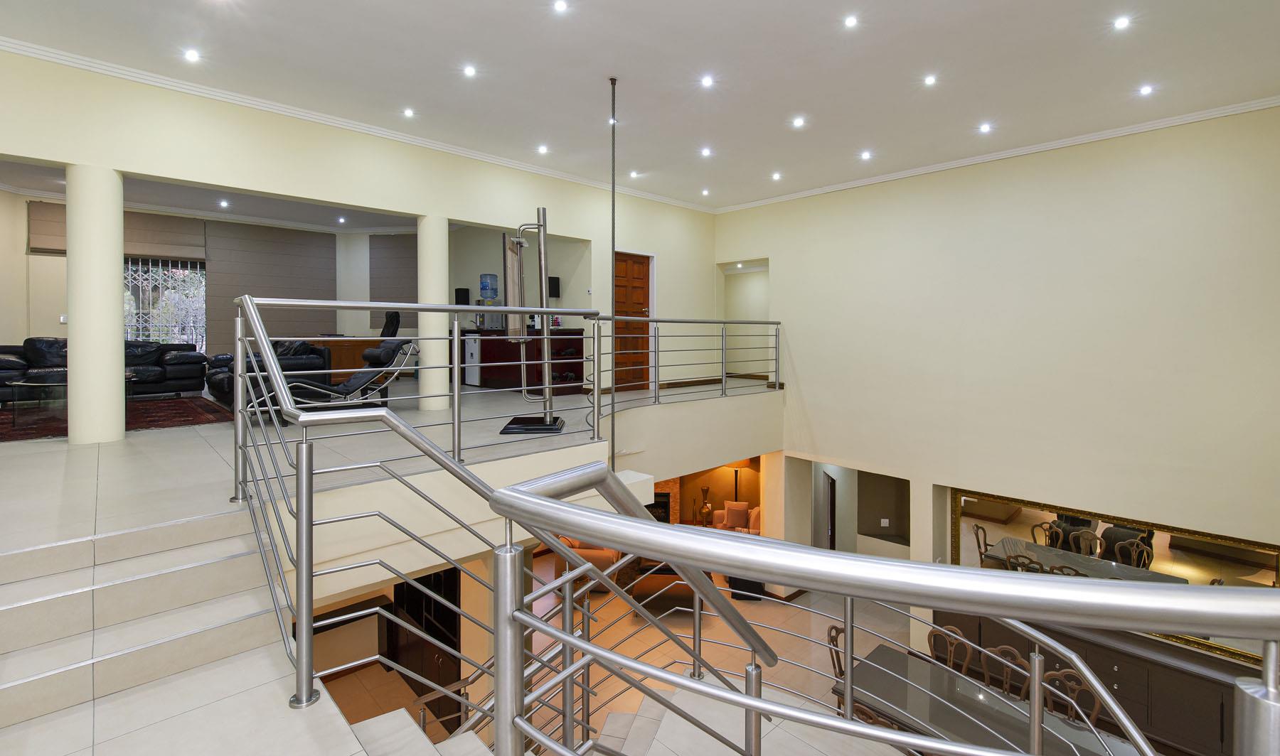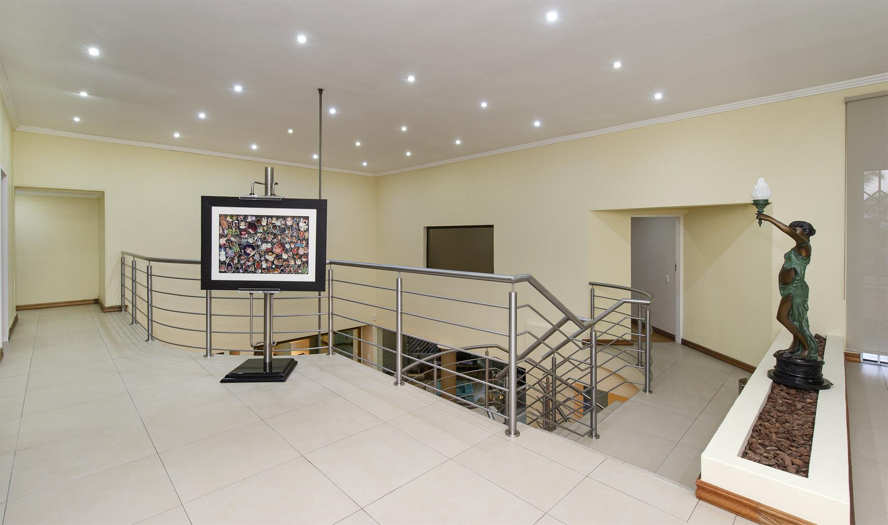Upstairs accommodation in the Bedfordview home offers a very spacious central pajama lounge with for the family to congregate in the evenings with a coffee station and leads to four enormous bedrooms, four beautifully refurbished modern bathrooms all of which are en suite. The master bedroom is a tranquil and private haven with ultra large master bathroom with bath and shower with LED lighting feature as well as a dressing room. There is a fitted study upstairs.