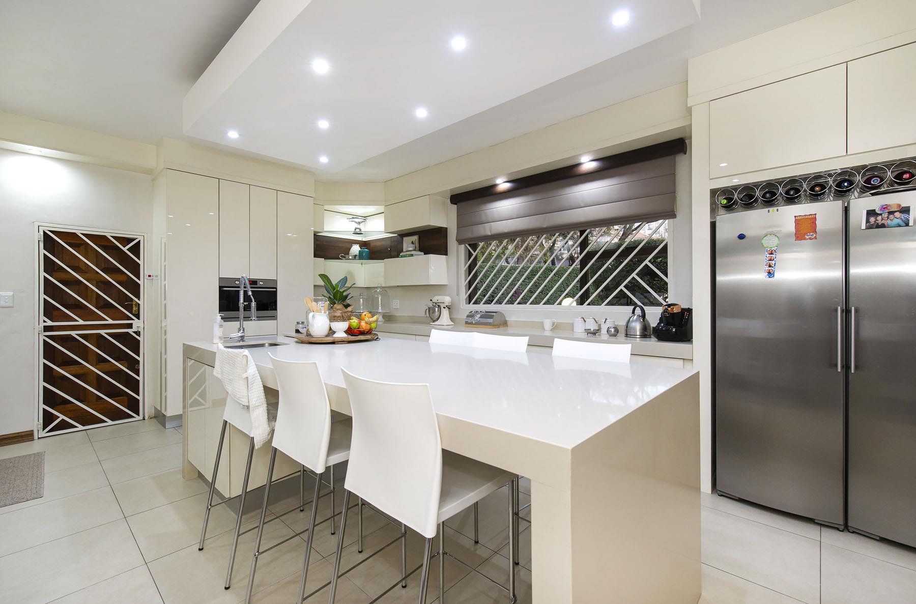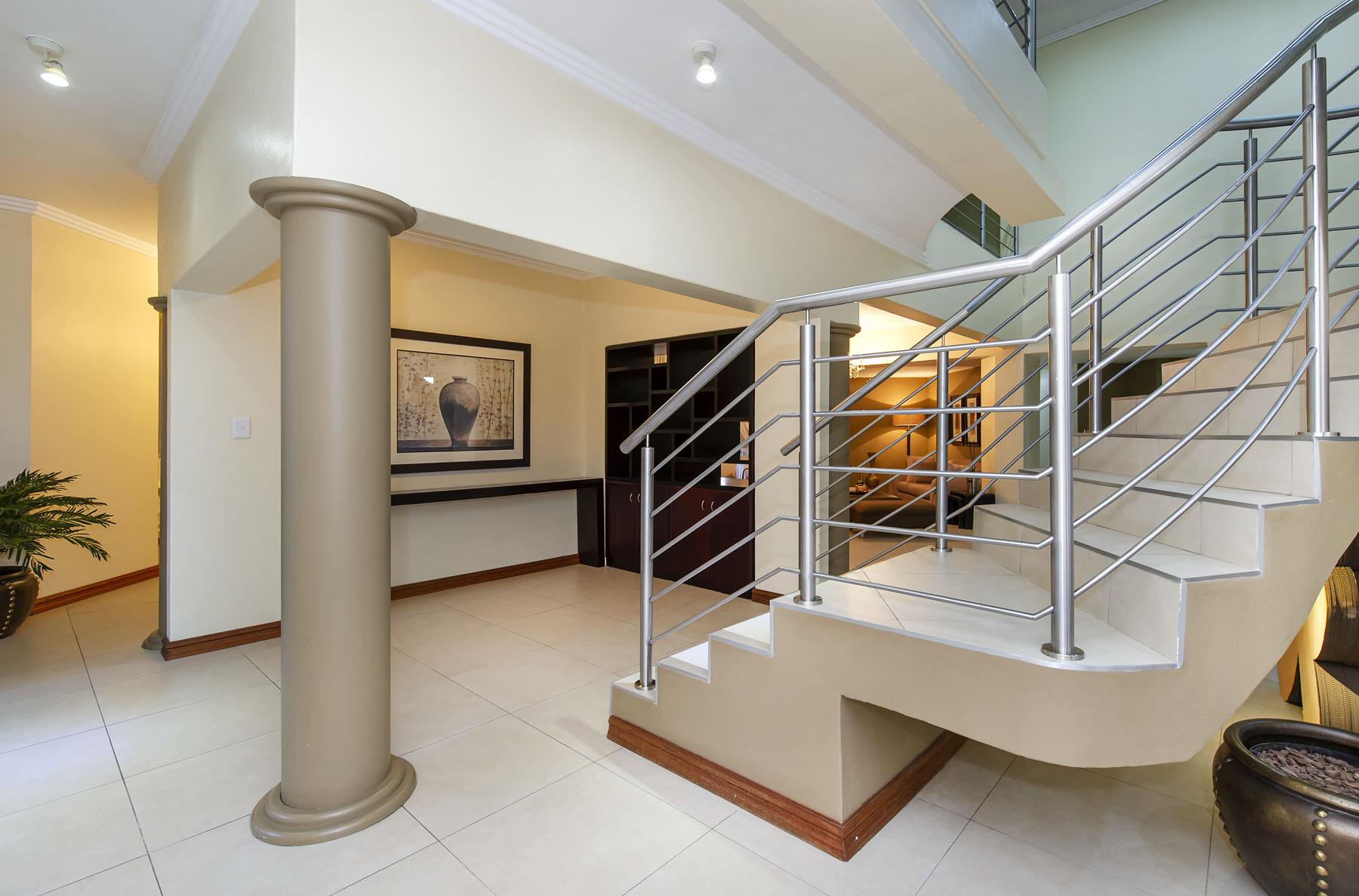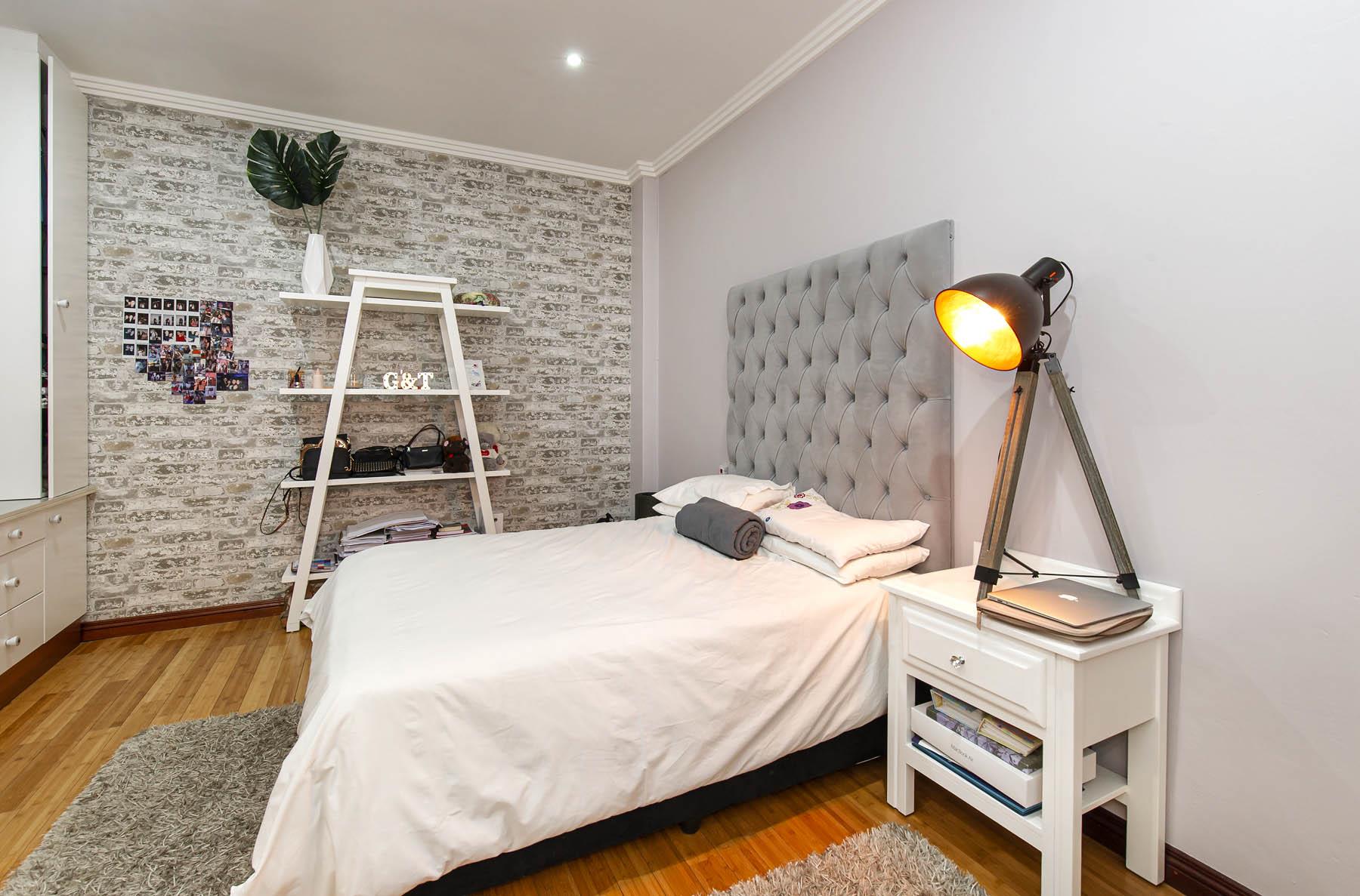 Upstairs accommodation in the Bedfordview home offers a very spacious central pajama lounge with for the family to congregate in the evenings with a coffee station and leads to four enormous bedrooms, four beautifully refurbished modern bathrooms all of which are en suite. The master bedroom is a tranquil and private haven with ultra large master bathroom with bath and shower with LED lighting feature as well as a dressing room. There is a fitted study upstairs.