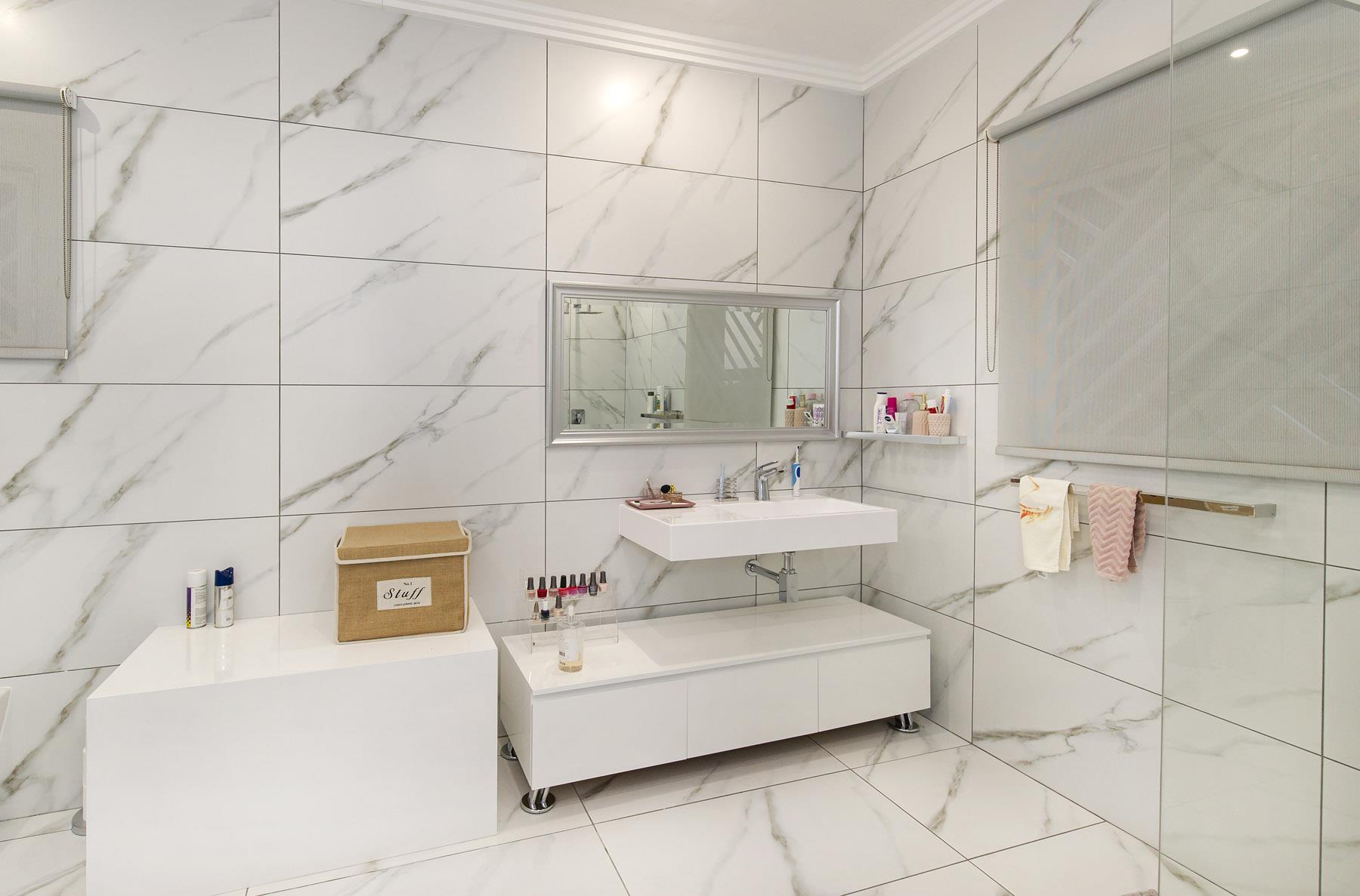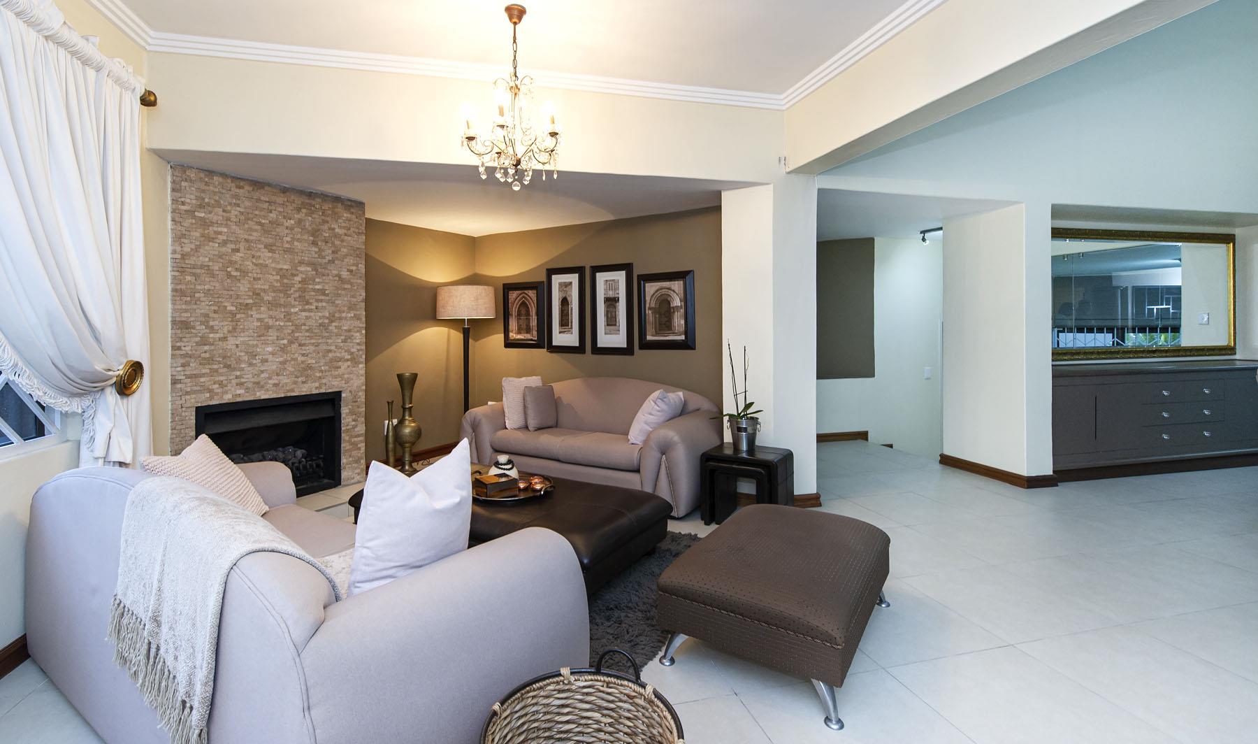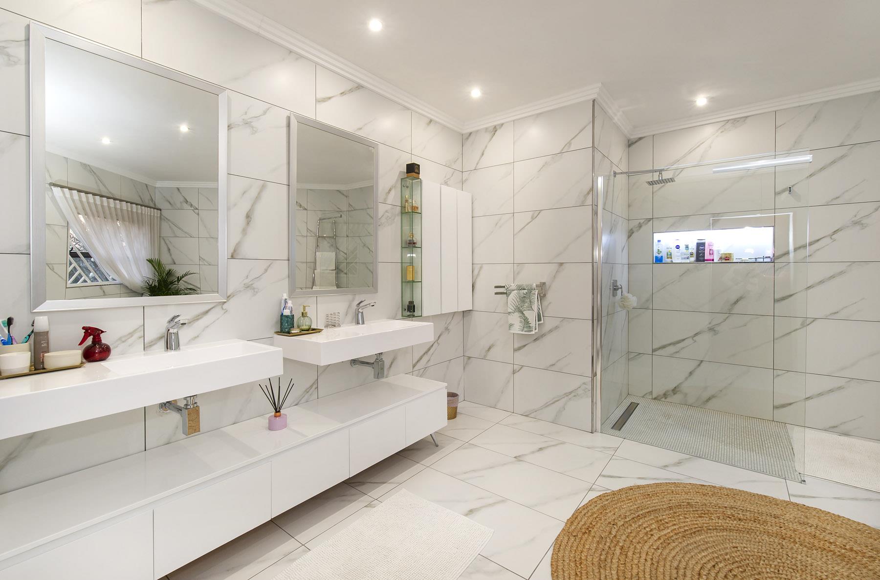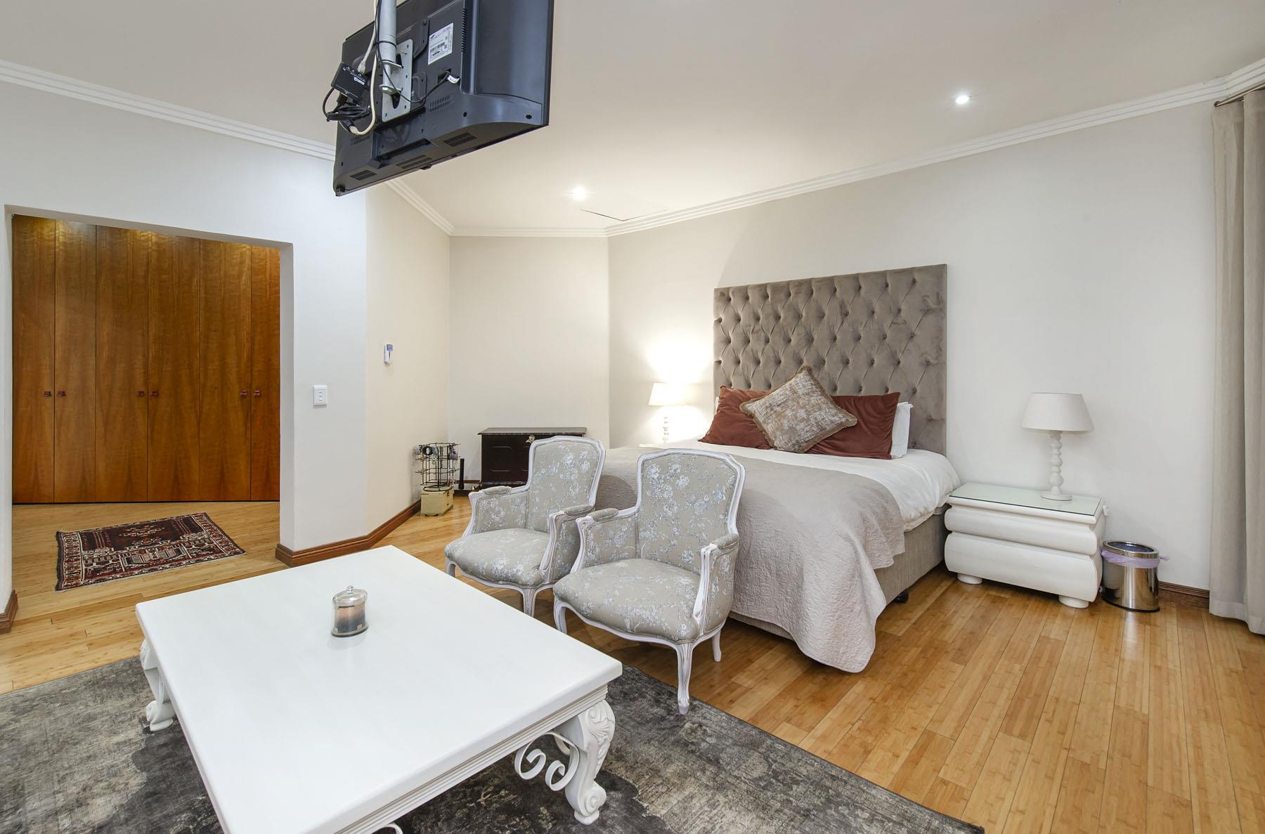 Upstairs accommodation in the Bedfordview home offers a very spacious central pajama lounge with for the family to congregate in the evenings with a coffee station and leads to four enormous bedrooms, four beautifully refurbished modern bathrooms all of which are en suite. The master bedroom is a tranquil and private haven with ultra large master bathroom with bath and shower with LED lighting feature as well as a dressing room. There is a fitted study upstairs.
