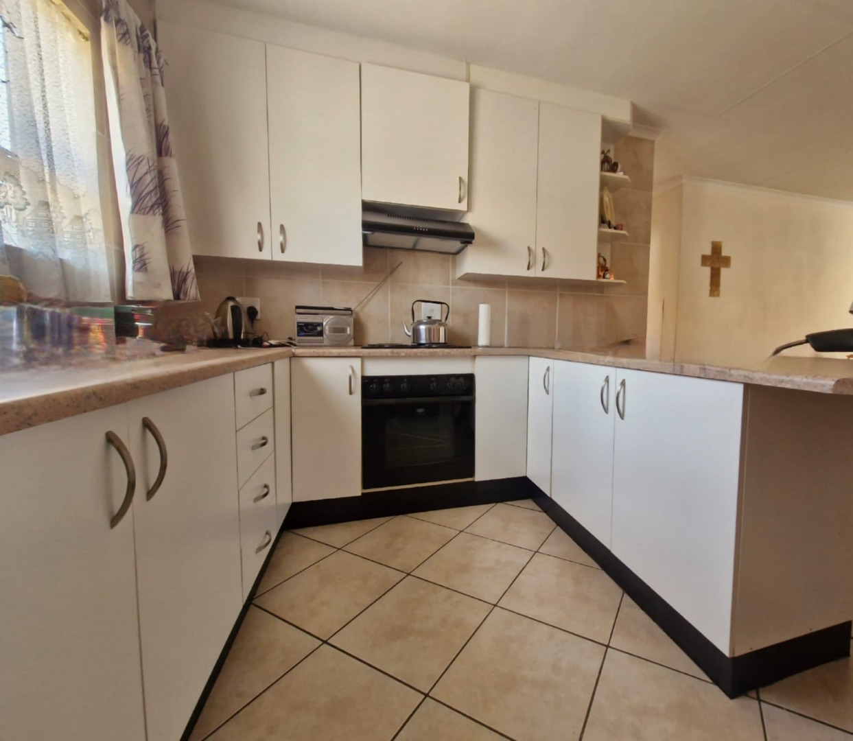 Outside, you'll absolutely love the covered patio – it's a fantastic spot to unwind, rain or shine, with its paved floor and a cozy atmosphere enhanced by plants and wall art. The property also includes a double garage and additional open parking, so there's always space for vehicles. Plus, your beloved pets are welcome here! For your peace of mind, the home is fitted with an alarm system. Fochville offers a peaceful community feel with essential amenities close by.