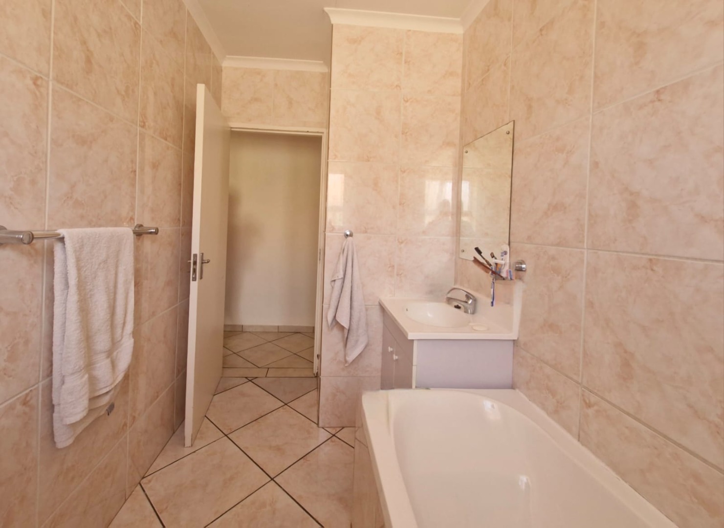 This home offers three comfortable bedrooms, each fitted with tiled flooring and practical built-in wardrobes to keep things tidy. You'll find two bathrooms, including a convenient en-suite bathroom for added privacy. The main bathroom features a relaxing bathtub, while the second bathroom includes a walk-in shower with a glass enclosure, catering to all your needs.