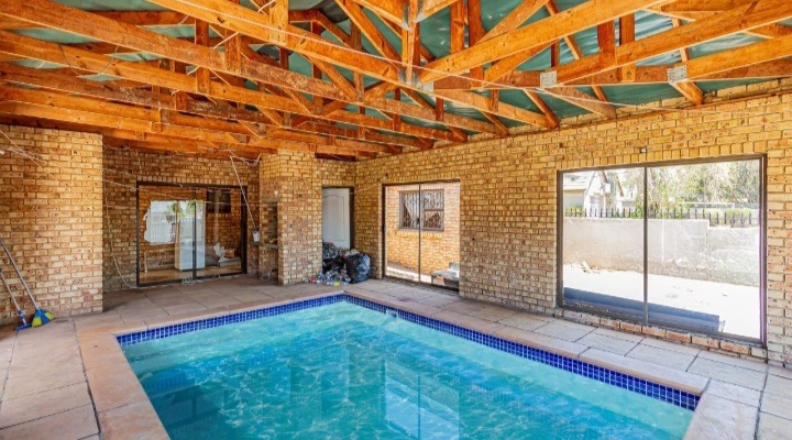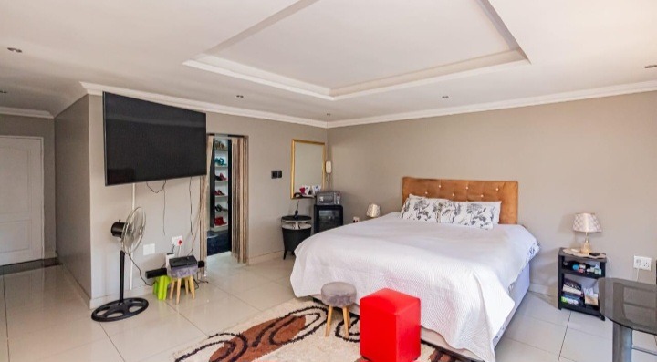 The exterior amenities are meticulously curated for an elevated lifestyle. A private swimming pool offers a refreshing retreat, complemented by a dedicated lapa and a built-in braai area, ideal for outdoor entertaining and leisure. The property boasts a well maintained garden and extensive paving, creating an inviting outdoor ambiance. Car accommodation is comprehensively addressed with two secure garages and an additional eight open parking spaces, providing unparalleled convenience for multiple cars and visitors. Pets are permitted, further enhancing its family friendly appeal.