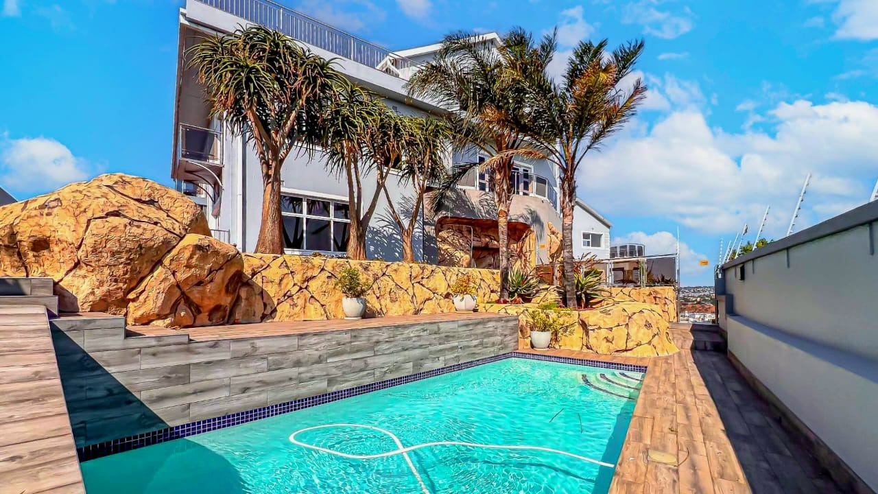 Perched majestically in the esteemed suburb of Bassonia, Johannesburg, this architectural masterpiece redefines luxury living. Boasting an expansive 850 sqm under roof on a generous 1819 sqm erf, this multi-level residence presents an unparalleled blend of sophisticated design and breathtaking panoramic views. The striking modern exterior, seamlessly integrated with dramatic rock formations, immediately captivates, offering a grand first impression with its extensive glass balconies and a private swimming pool that overlooks the distant landscape.