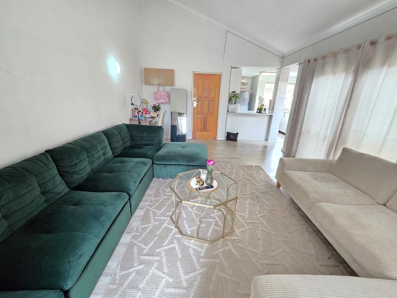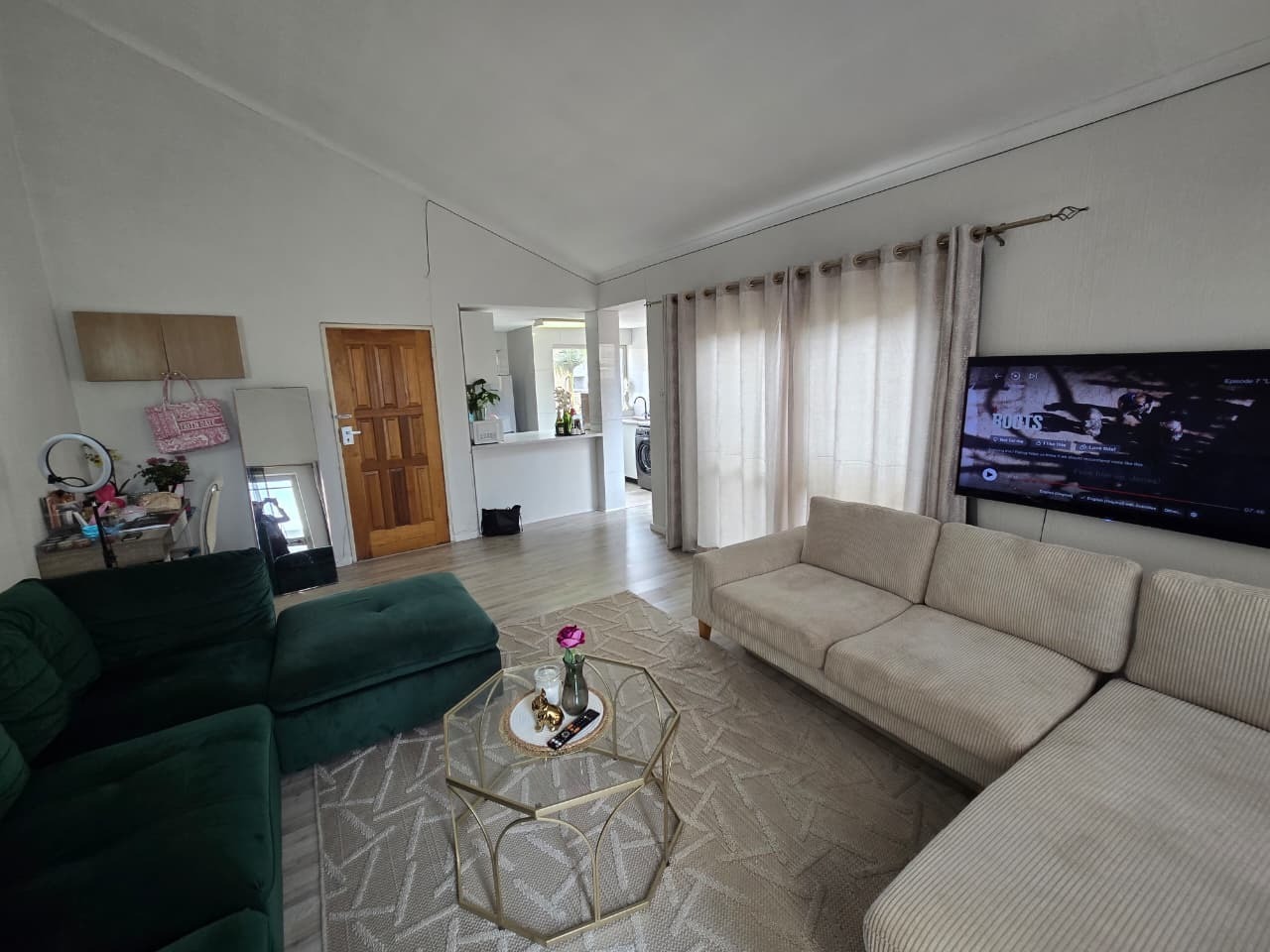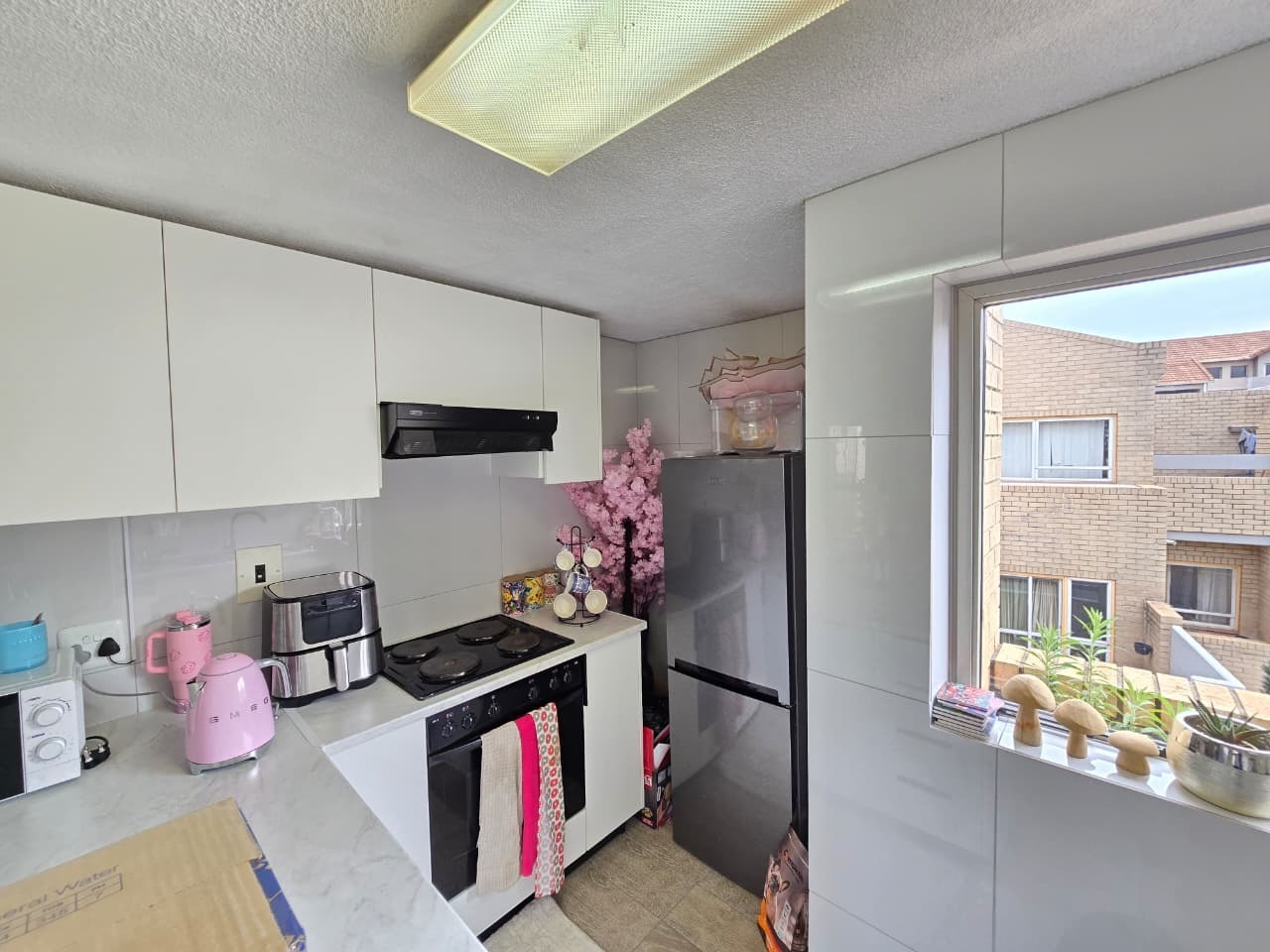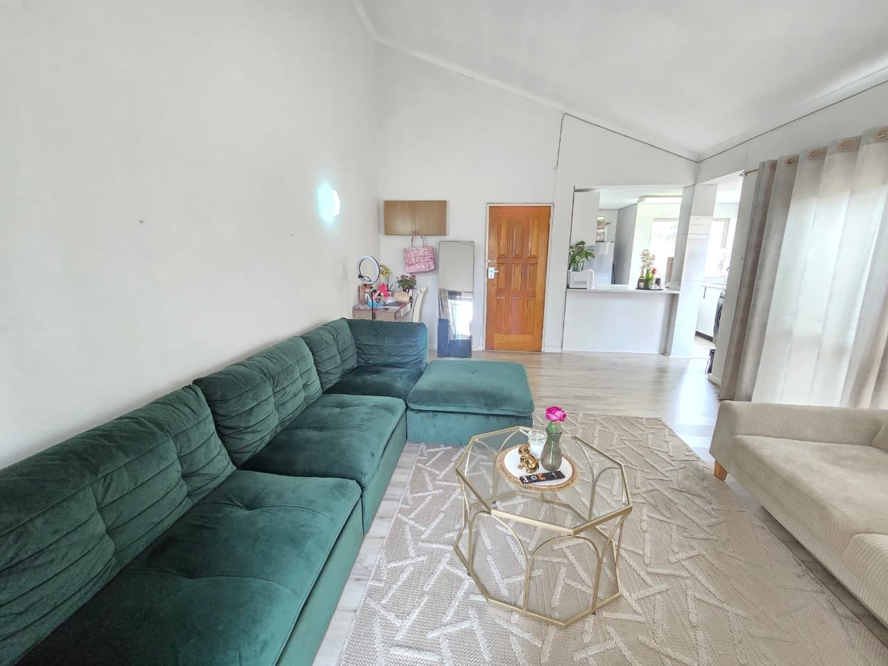 The home welcomes you with light-filled interiors and a clean, contemporary aesthetic, enhanced by neutral tones and modern finishes throughout. The open-plan living area creates a seamless flow between the lounge and kitchen, making the space feel both spacious and inviting. The lounge comfortably accommodates both relaxation and entertaining, with direct access to a private balcony, allowing natural light to flood the space while offering a peaceful outdoor extension of the home.