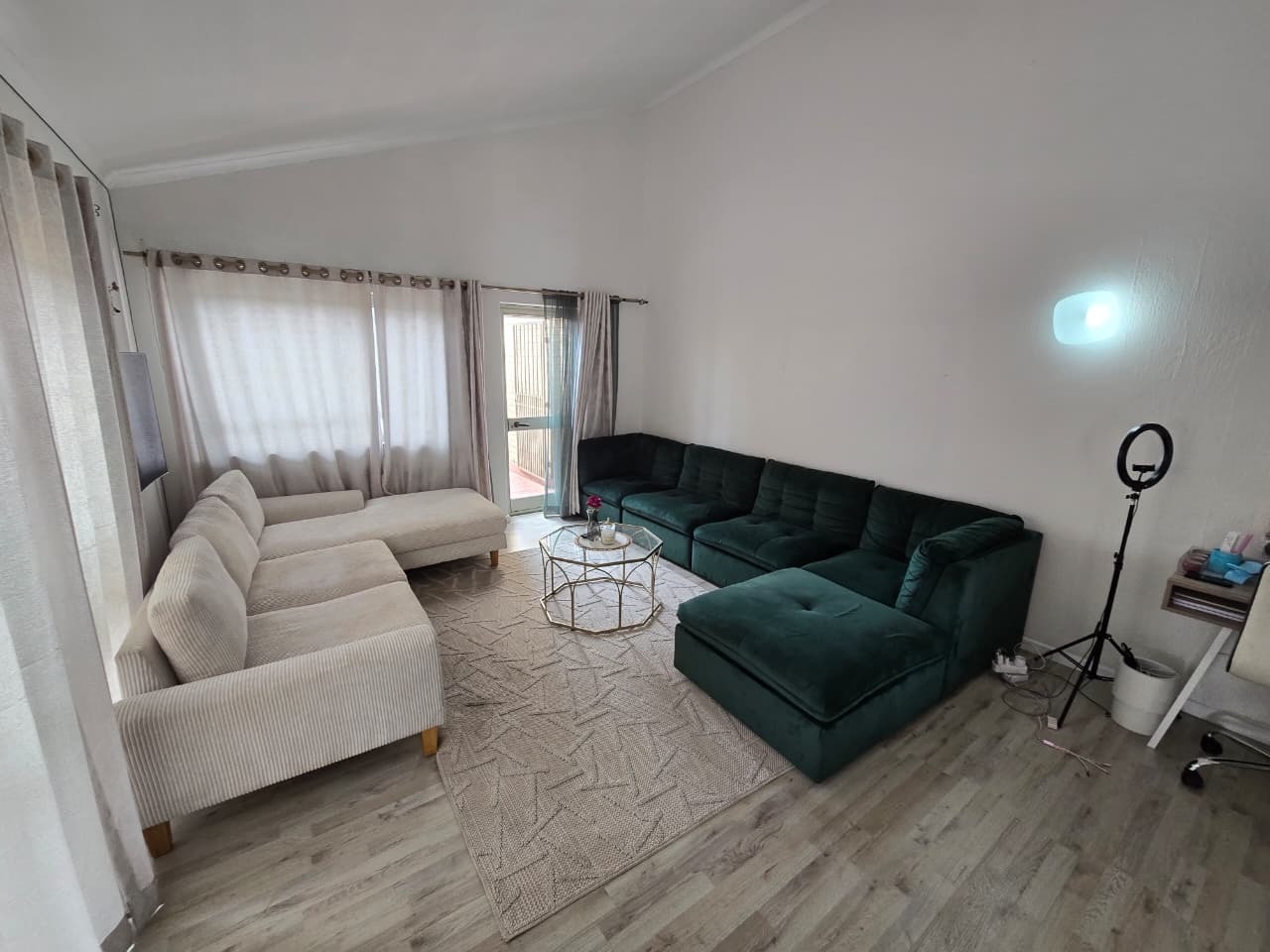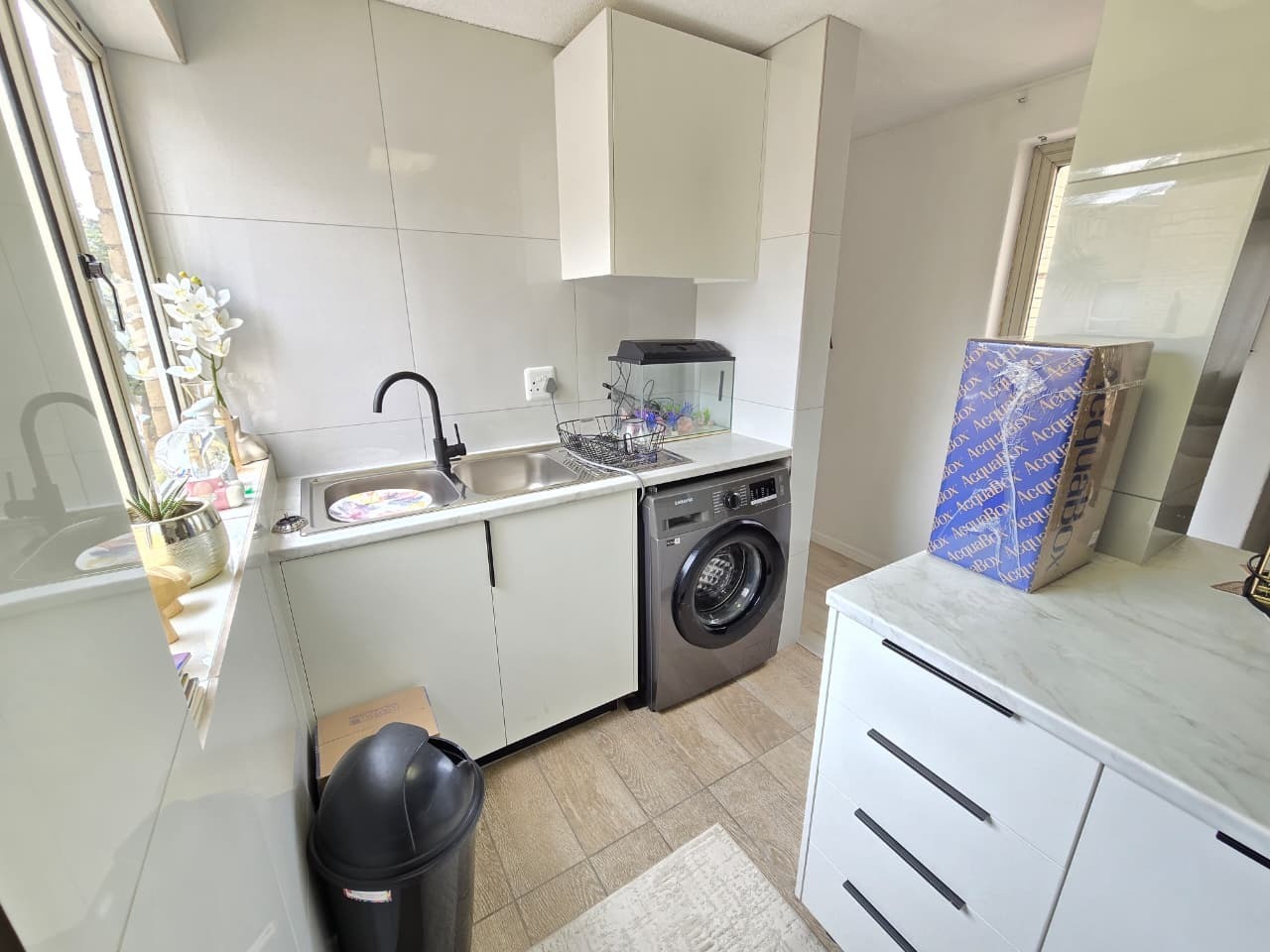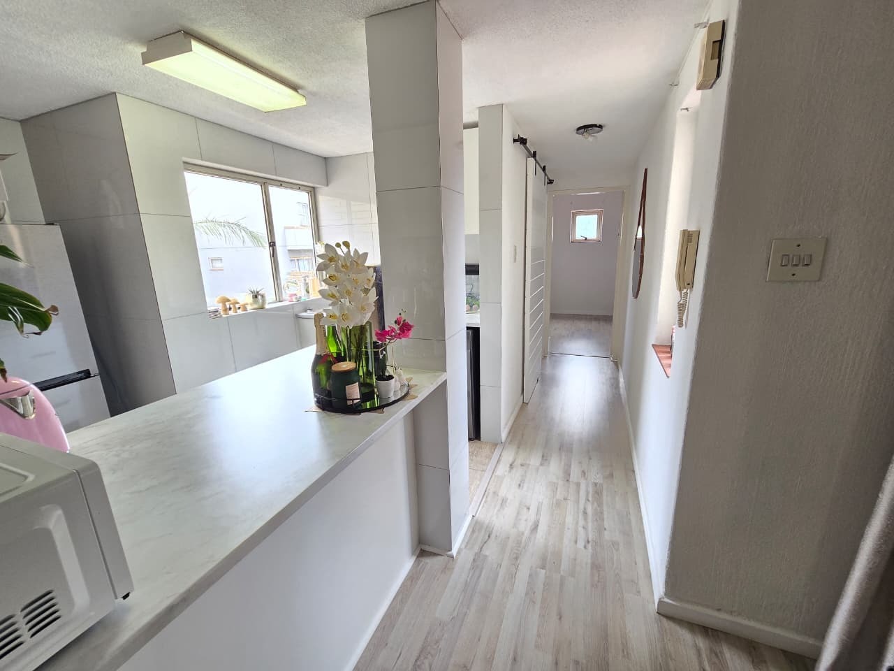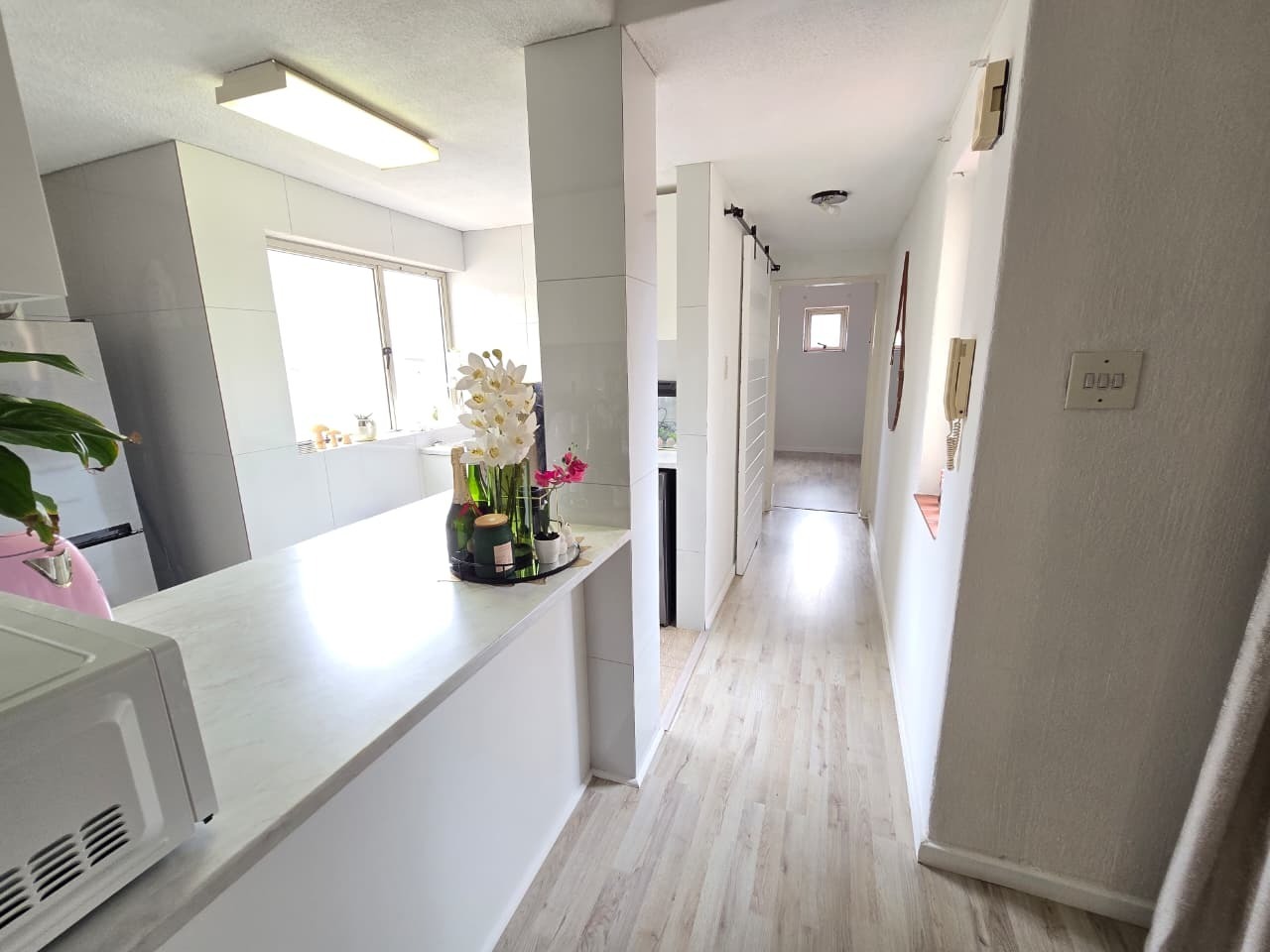 The home welcomes you with light-filled interiors and a clean, contemporary aesthetic, enhanced by neutral tones and modern finishes throughout. The open-plan living area creates a seamless flow between the lounge and kitchen, making the space feel both spacious and inviting. The lounge comfortably accommodates both relaxation and entertaining, with direct access to a private balcony, allowing natural light to flood the space while offering a peaceful outdoor extension of the home.