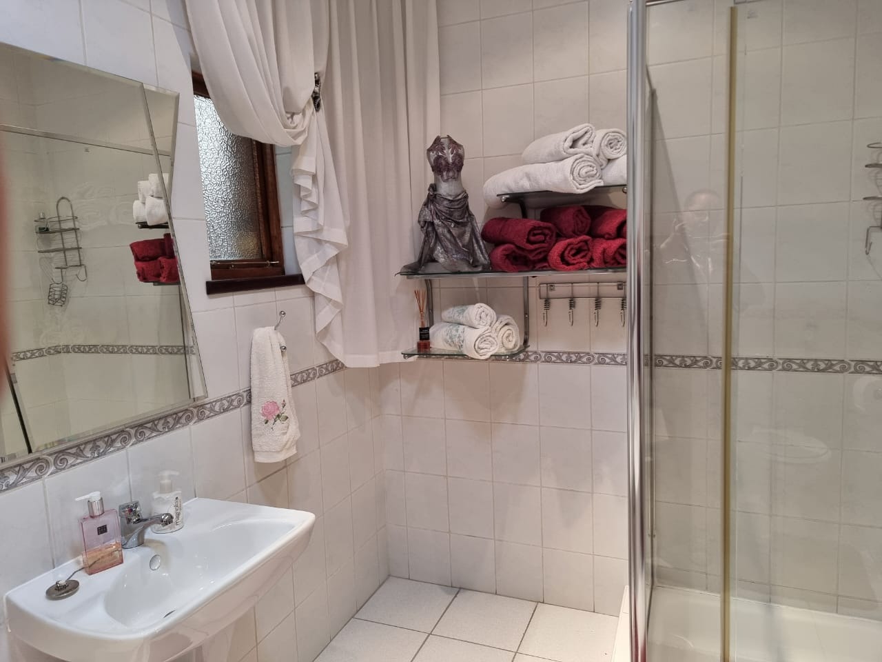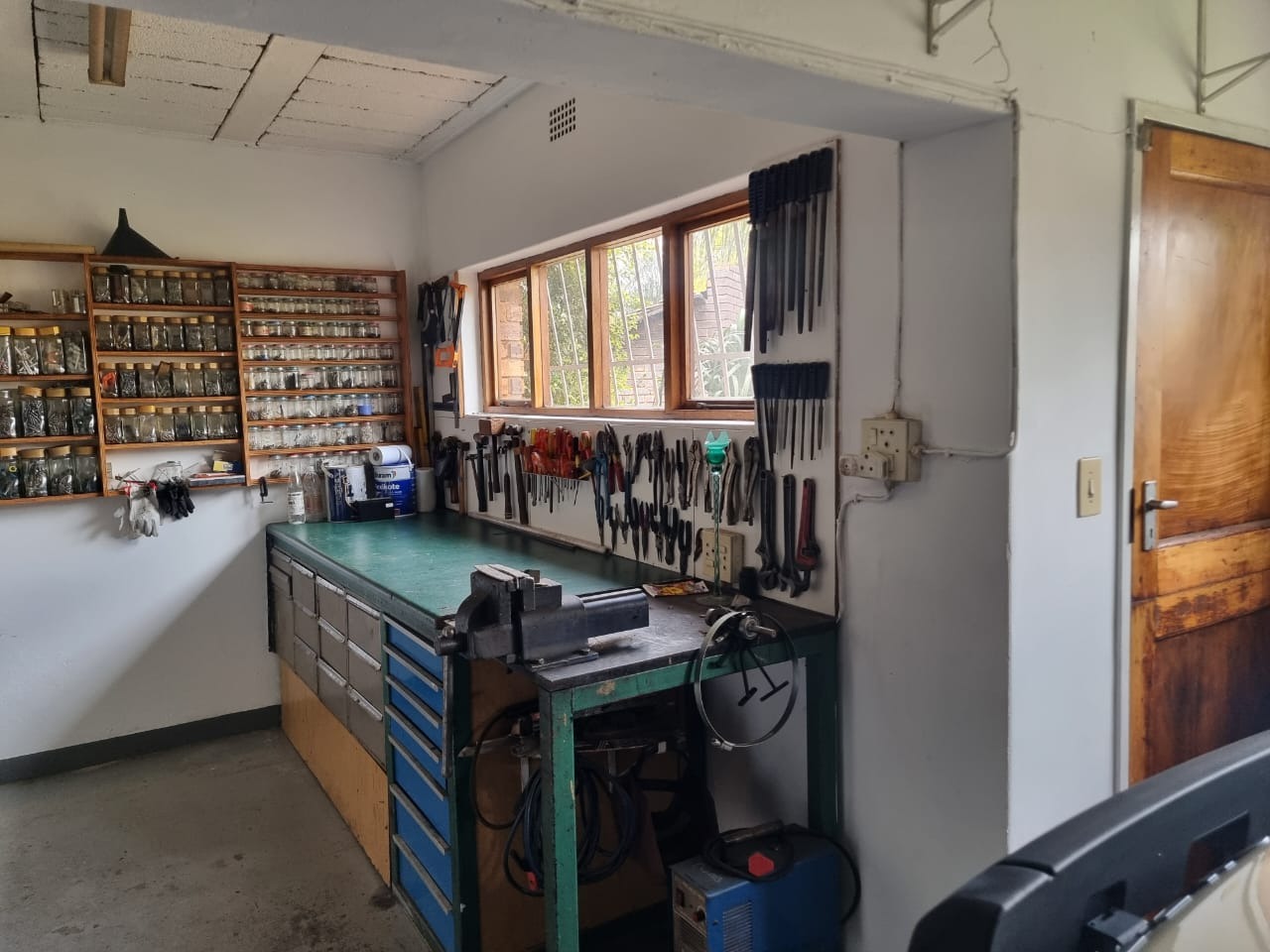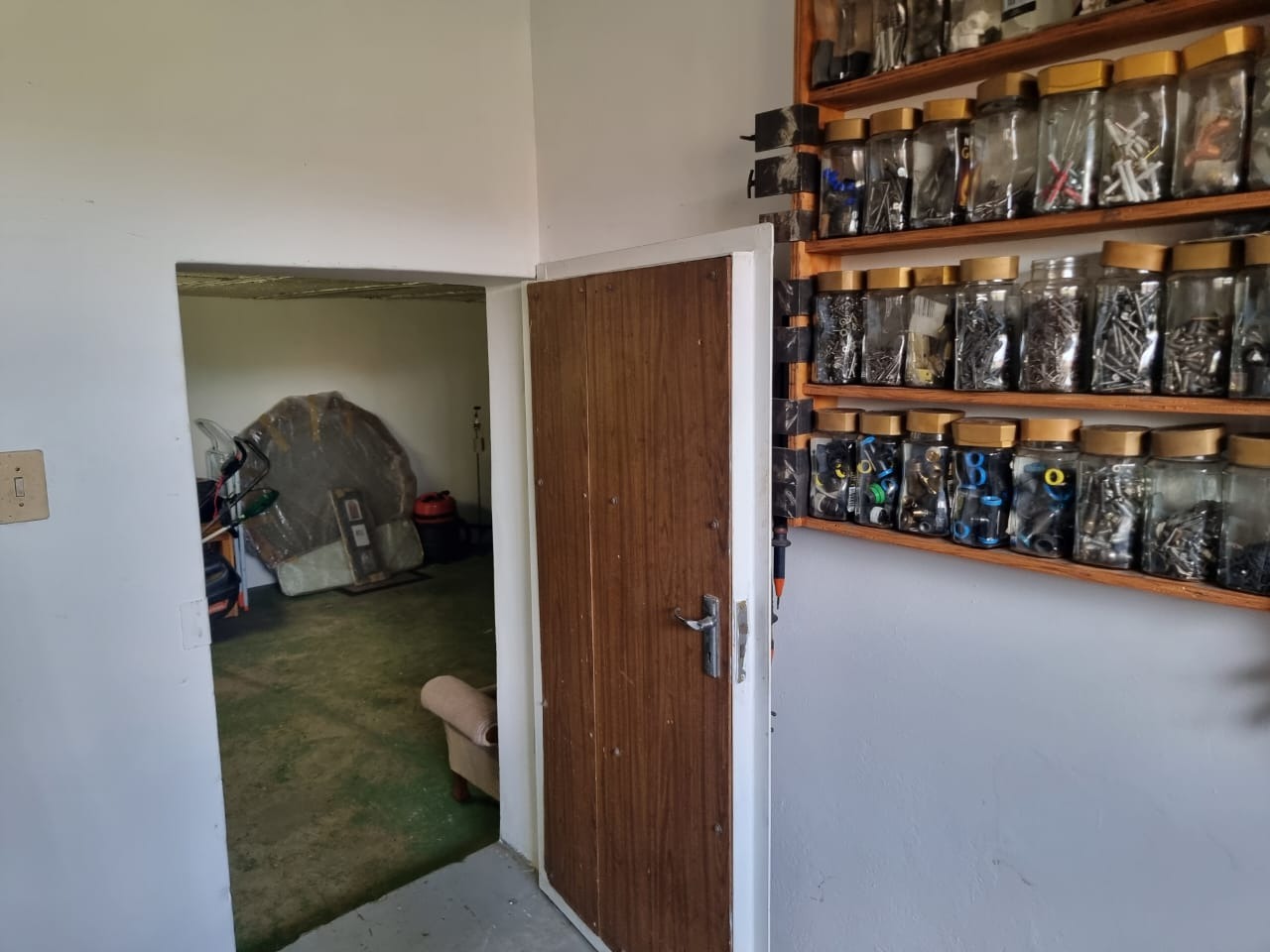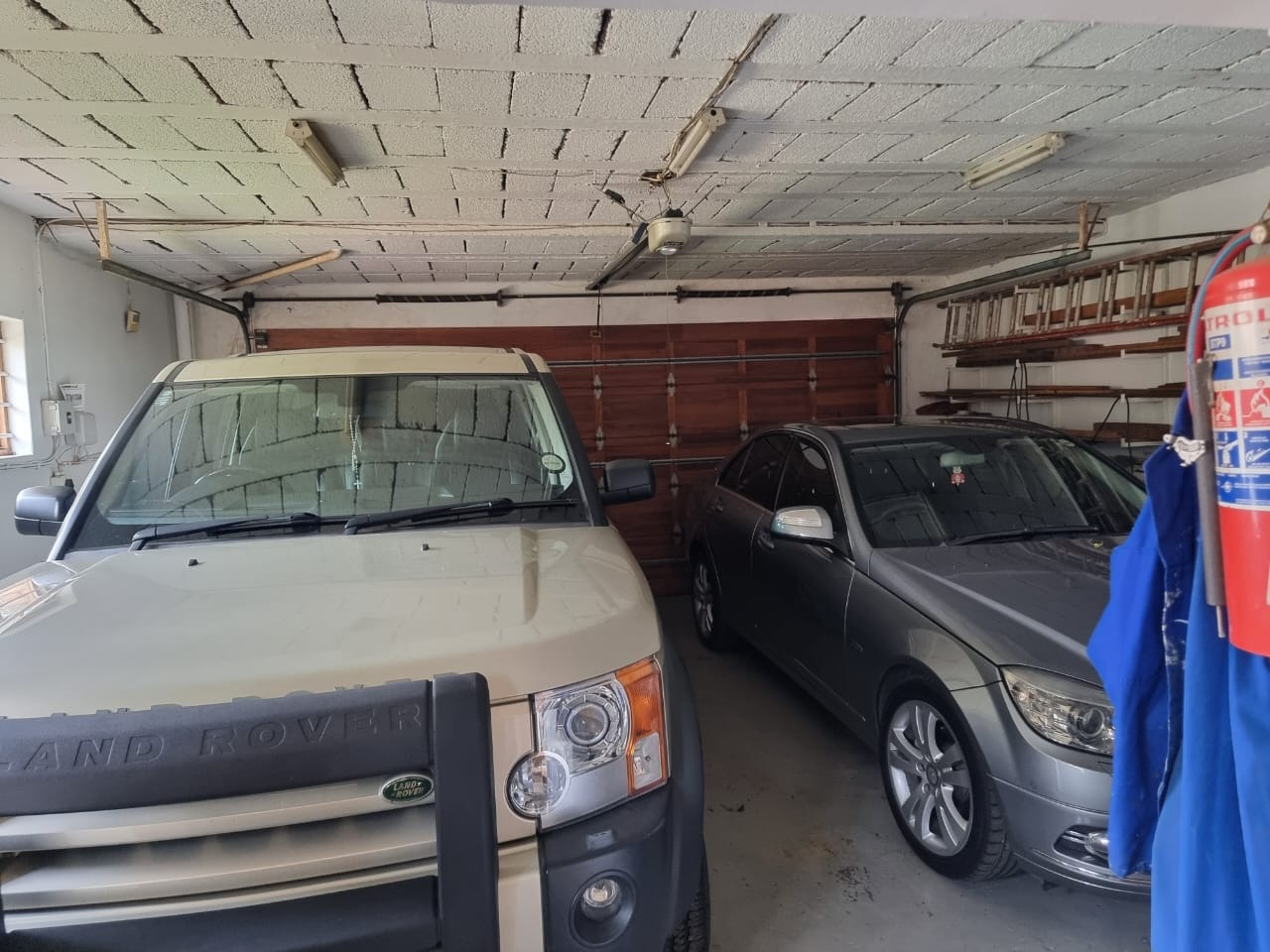 Practical features abound, including four garages, with the double garage on the house offering a workshop area and a cleverly concealed basement storage space. Automated garage doors allow direct, weather-safe access into the home. A domestic quarter with a bath, basin, and toilet adds further versatility.