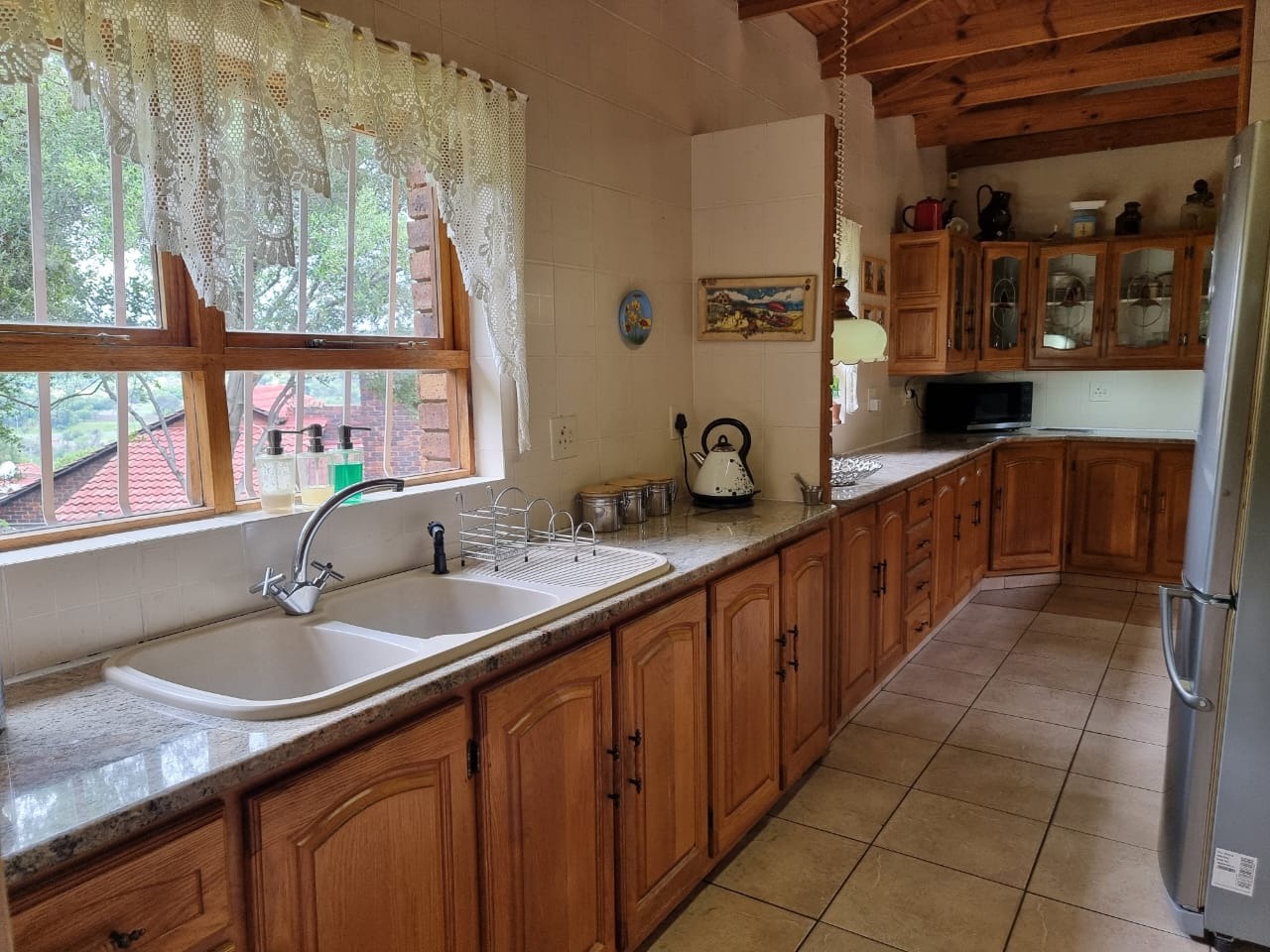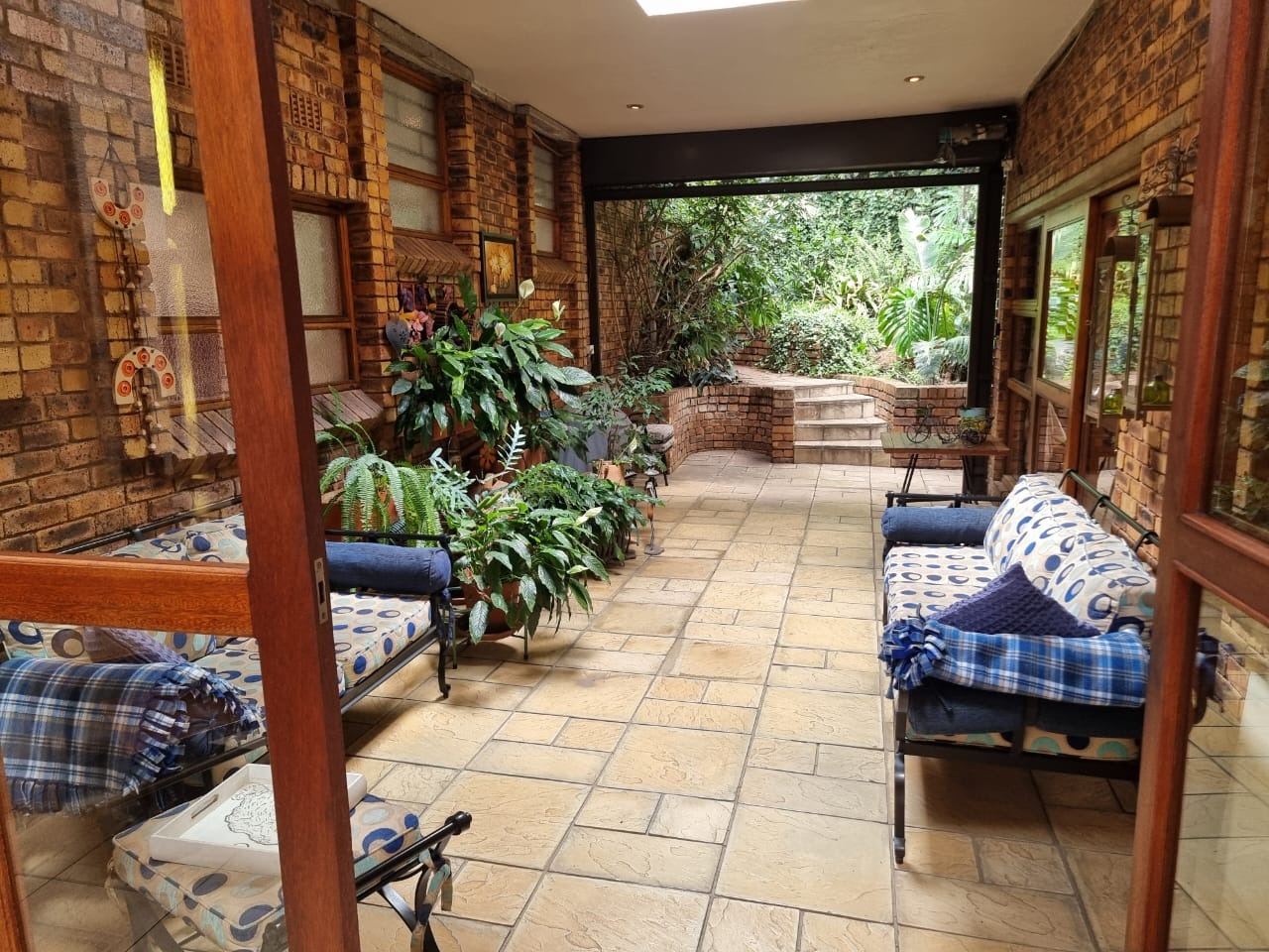 At the heart of the home is a spacious kitchen with an integrated dining area, opening seamlessly onto a covered outdoor entertainment space—ideal for family gatherings and relaxed entertaining. The lush, established garden surrounds the home, offering privacy, tranquility, and a true sense of permanence.
