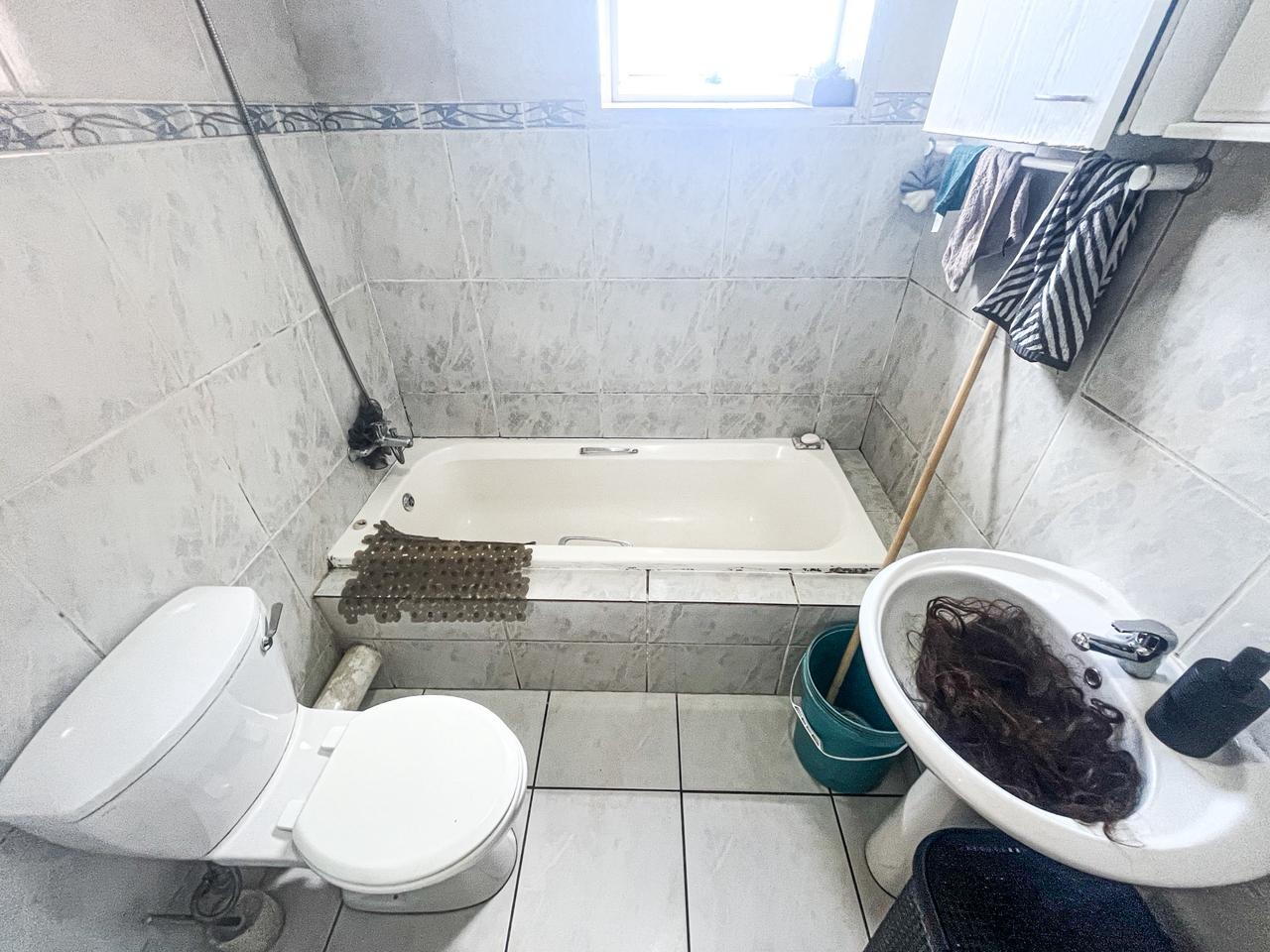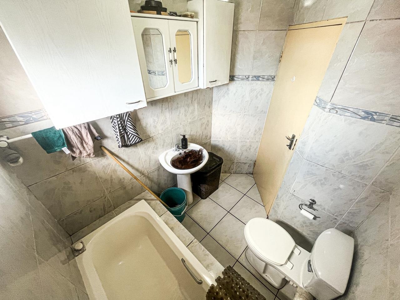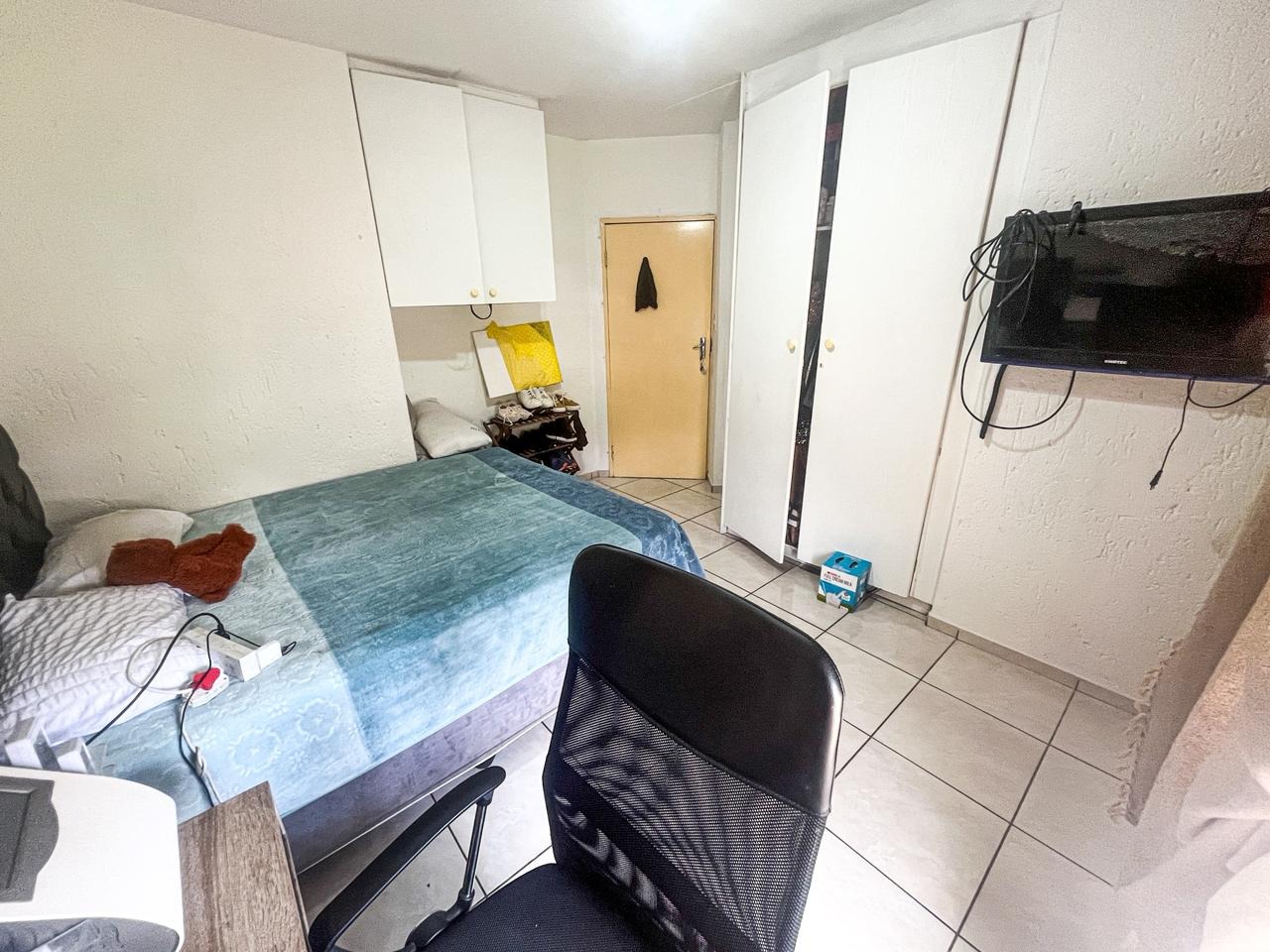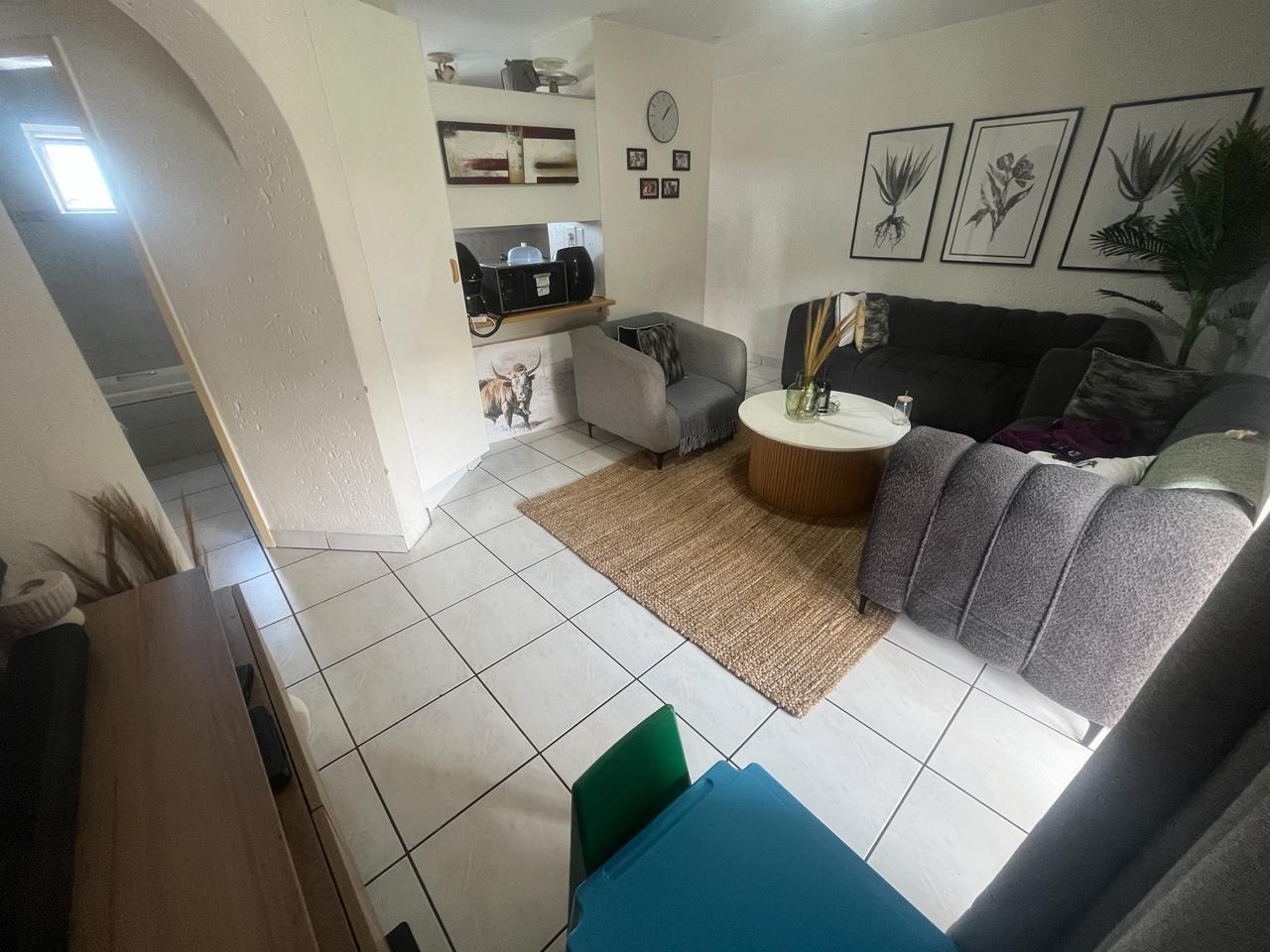 Step into this inviting two bedroom, one bathroom apartment located within a secure complex in Winchester Hills, Johannesburg. The functional U-shaped kitchen features white cabinetry, light wood-look countertops, a built-in gas hob and oven, and a double sink, offering practical space for daily meal preparation. Adjacent to this, the lounge area provides a comfortable setting with tiled flooring and a large window, allowing for ample natural light. An archway seamlessly connects the living spaces, enhancing the open feel.
