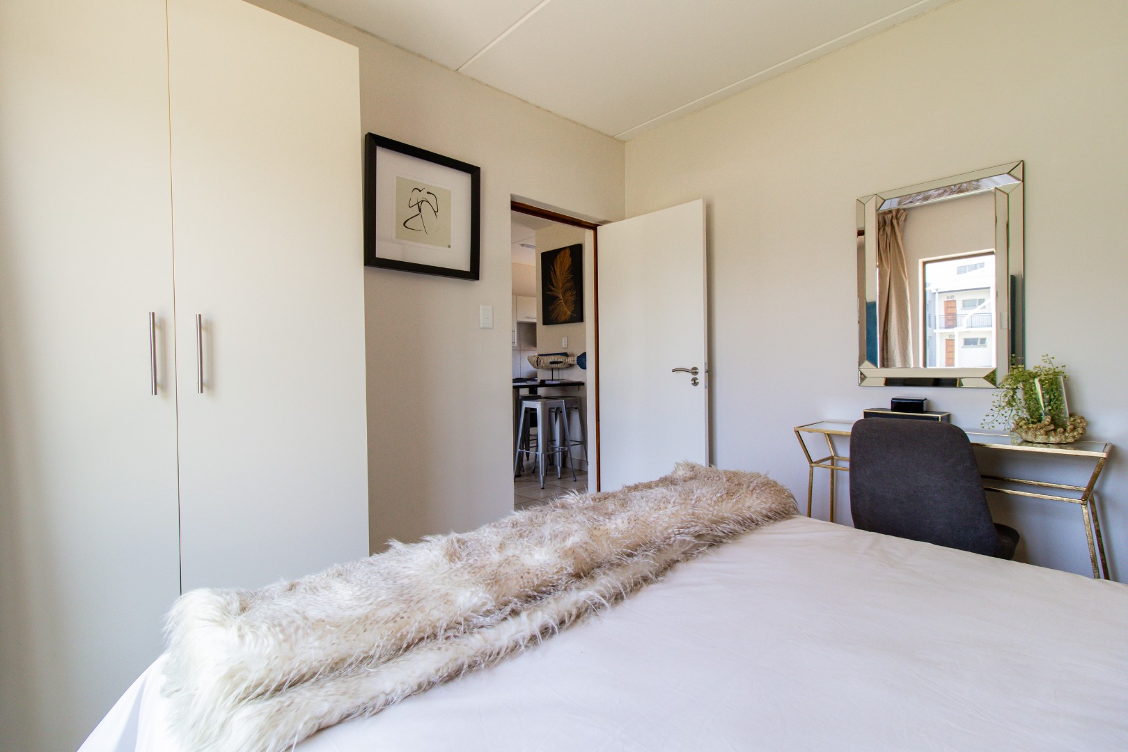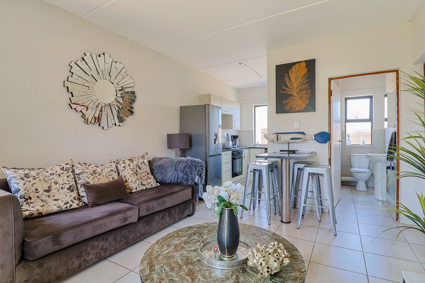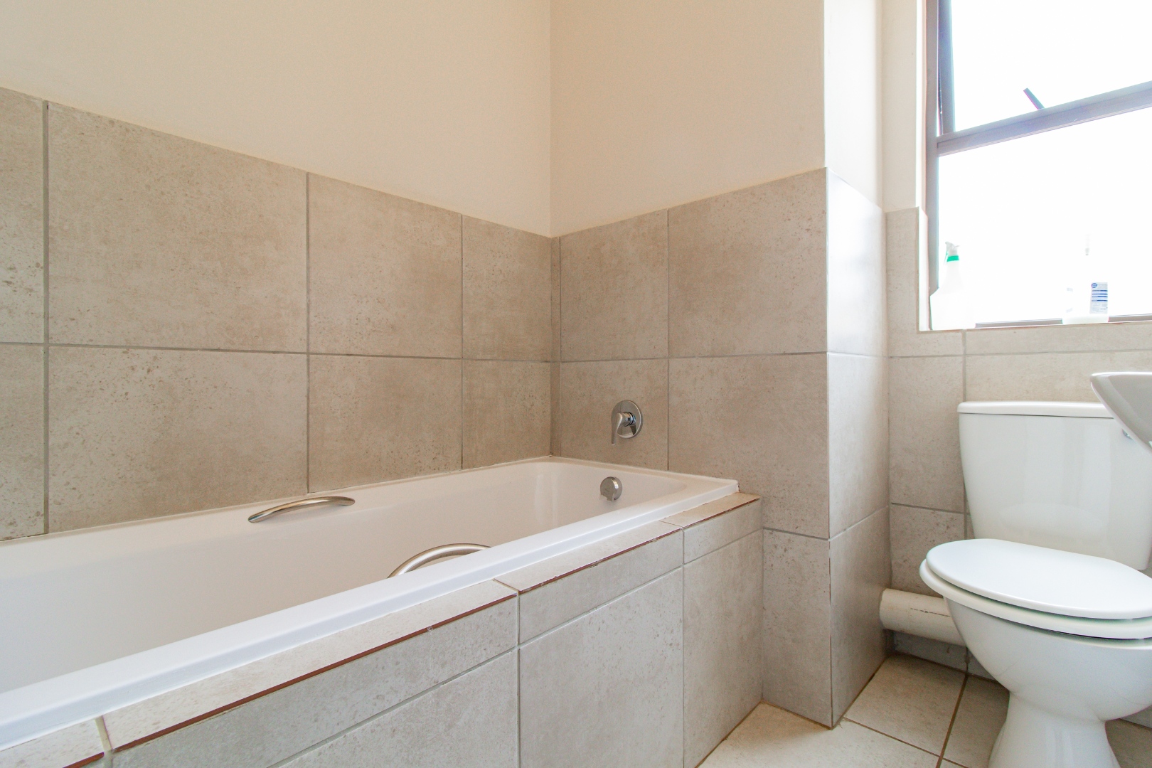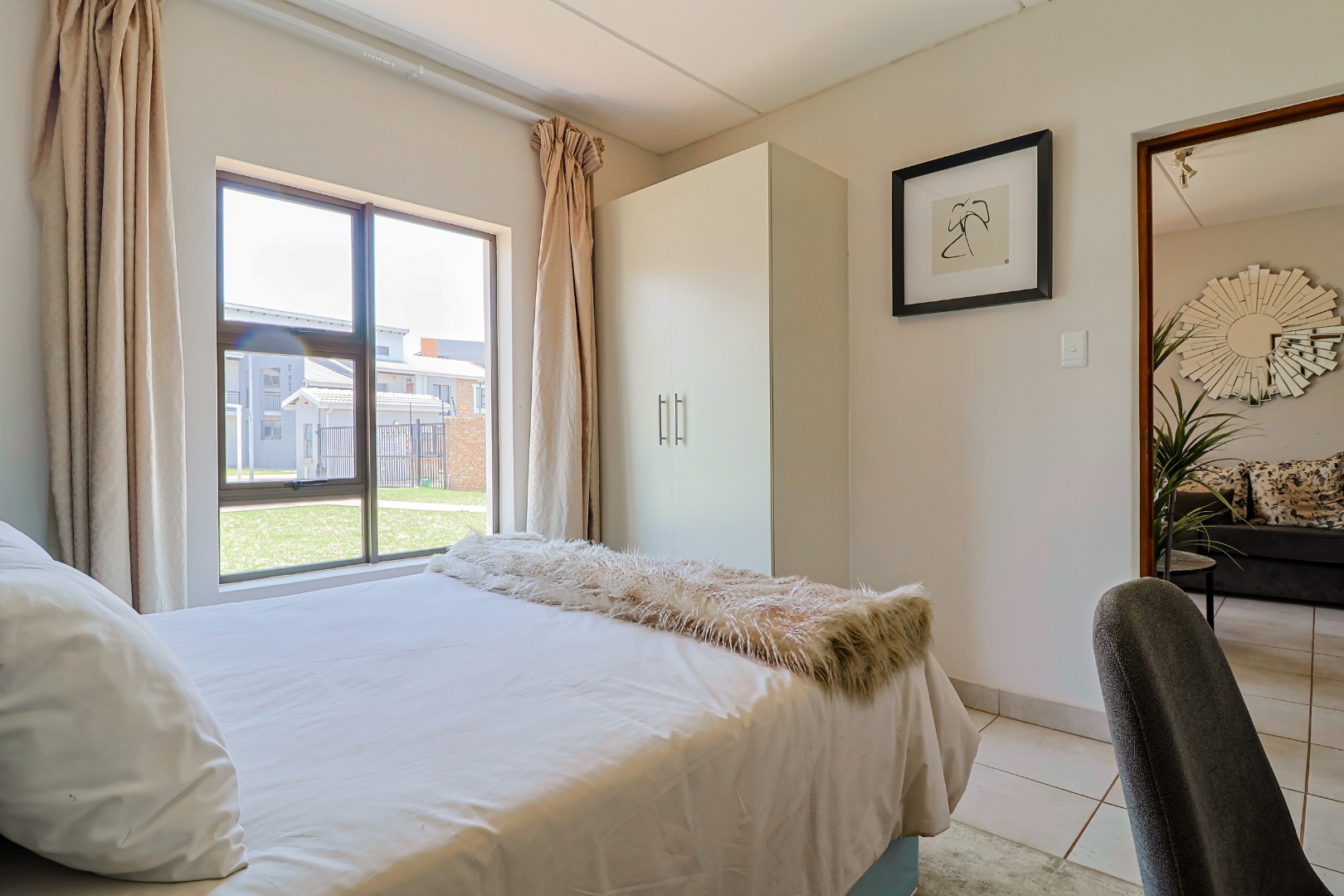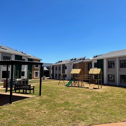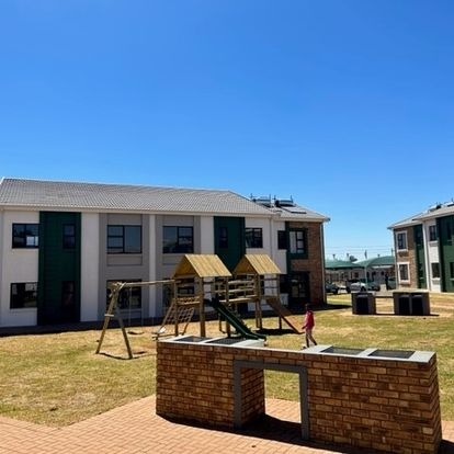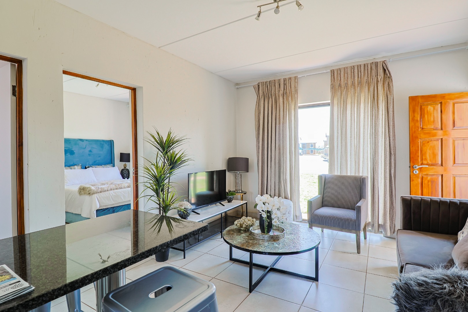 The exterior of the complex showcases a modern architectural design with a mix of brick and painted facades, set within a structured, paved environment. This suburban location in Soweto offers convenient access to local amenities and transport links, making it an ideal choice for those seeking a balanced urban lifestyle.