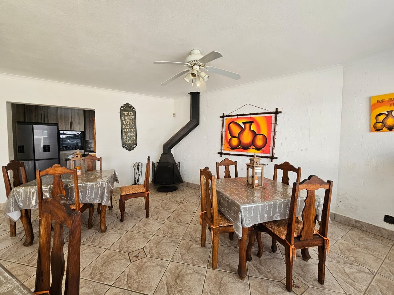Step outside to a spacious covered balcony, perfect for outdoor entertaining and enjoying scenic views. The property also features a swimming pool, supertube and takeaway/kiosk in the complex, ideal for leisure and recreation. Pets are welcome, making this a truly family-friendly home. Residents benefit from 24-hour security and an access gate, with fibre internet connectivity ensuring modern living standards.