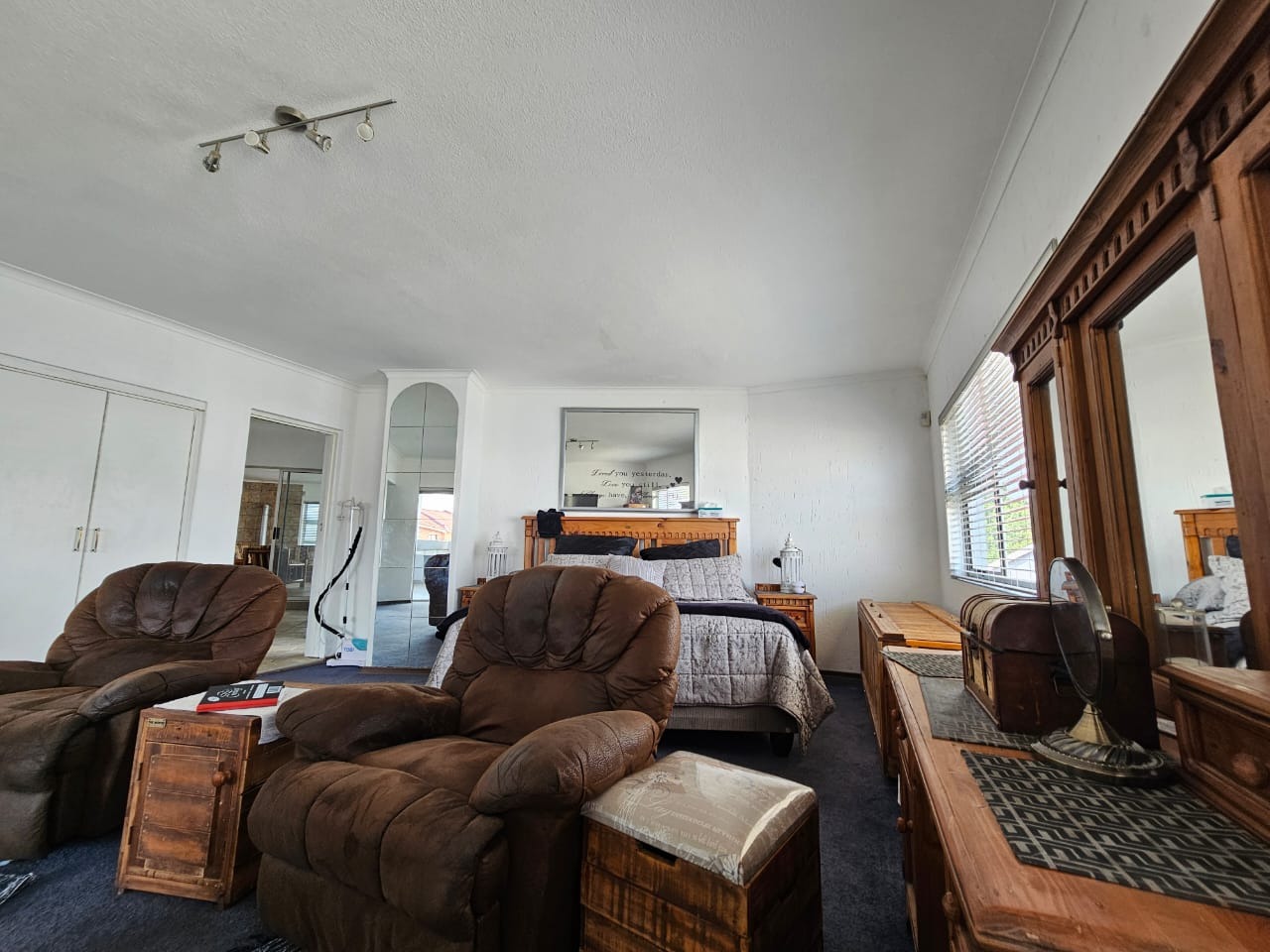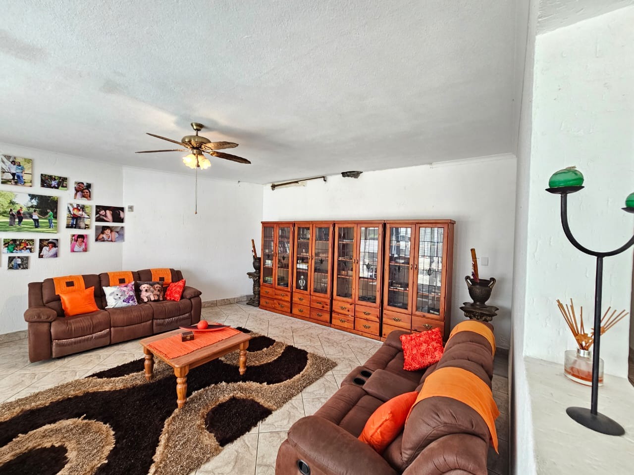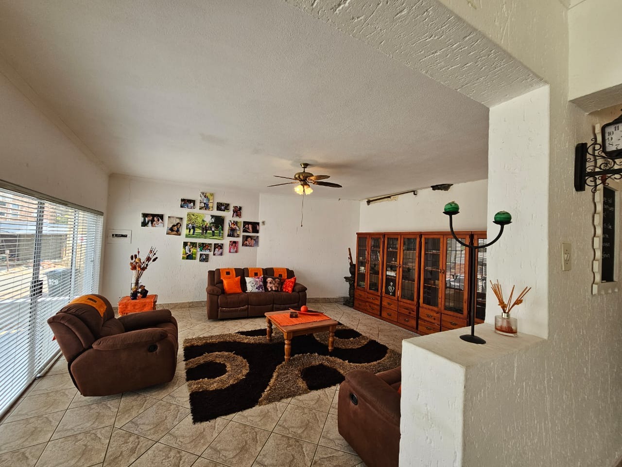 Spanning 429 sqm, the interior features a thoughtfully designed layout with two spacious lounges, a dedicated dining room, and a family/TV room, providing ample space for relaxation and entertainment. The property includes two modern kitchens, each equipped with wood-look cabinetry, durable dark countertops, and tiled flooring. Essential appliances such as a gas stove/oven, built-in oven, and dishwasher are integrated. Accommodation comprises five comfortable bedrooms and four bathrooms, including two ensuites, ensuring privacy and convenience. A study offers a quiet space for work, while a cozy fireplace adds warmth, with two garages and three additional parking spaces, vehicle accommodation is plentiful