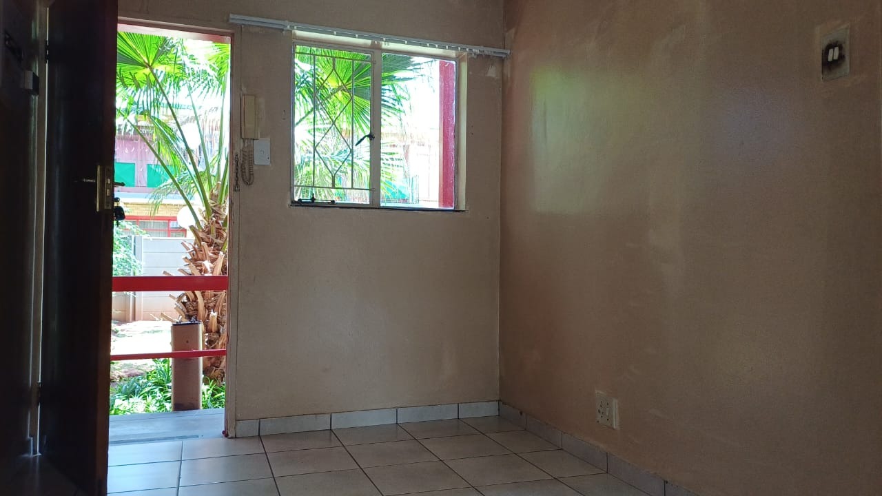 Additional features include a single garage with ample visitor parking, a pet-friendly environment, and access to a spacious communal garden with mature landscaping. Security is well addressed with a concrete perimeter fence, burglar bars on windows, and security gates on doors, ensuring peace of mind.