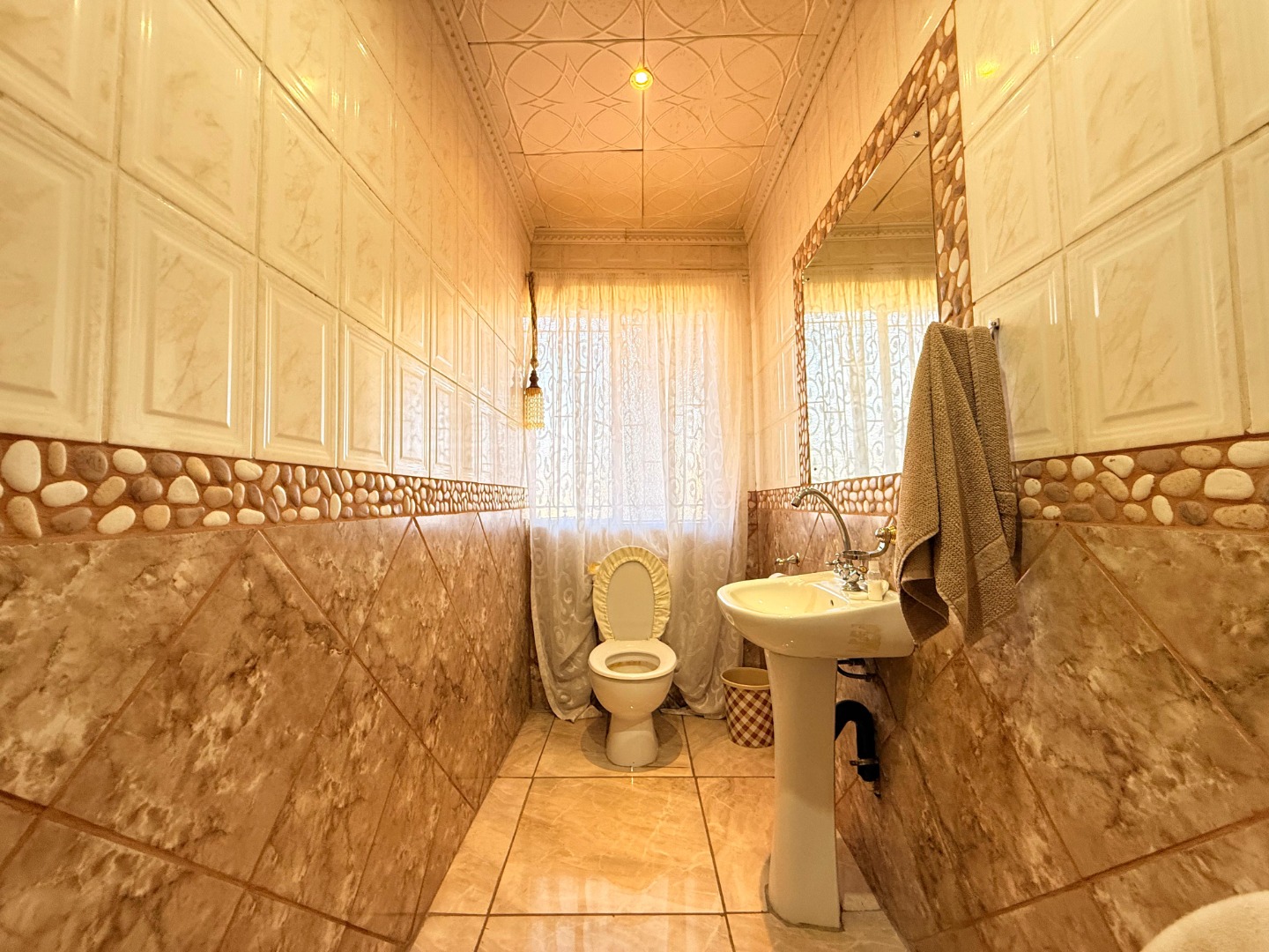 The main house is exceptionally neat, featuring a warm, inviting living room with face-brick finishes and a functional fireplace, which leads gracefully into the main entrance foyer. The living spaces are cozy yet spacious, making it perfect for family living or professional hosting.