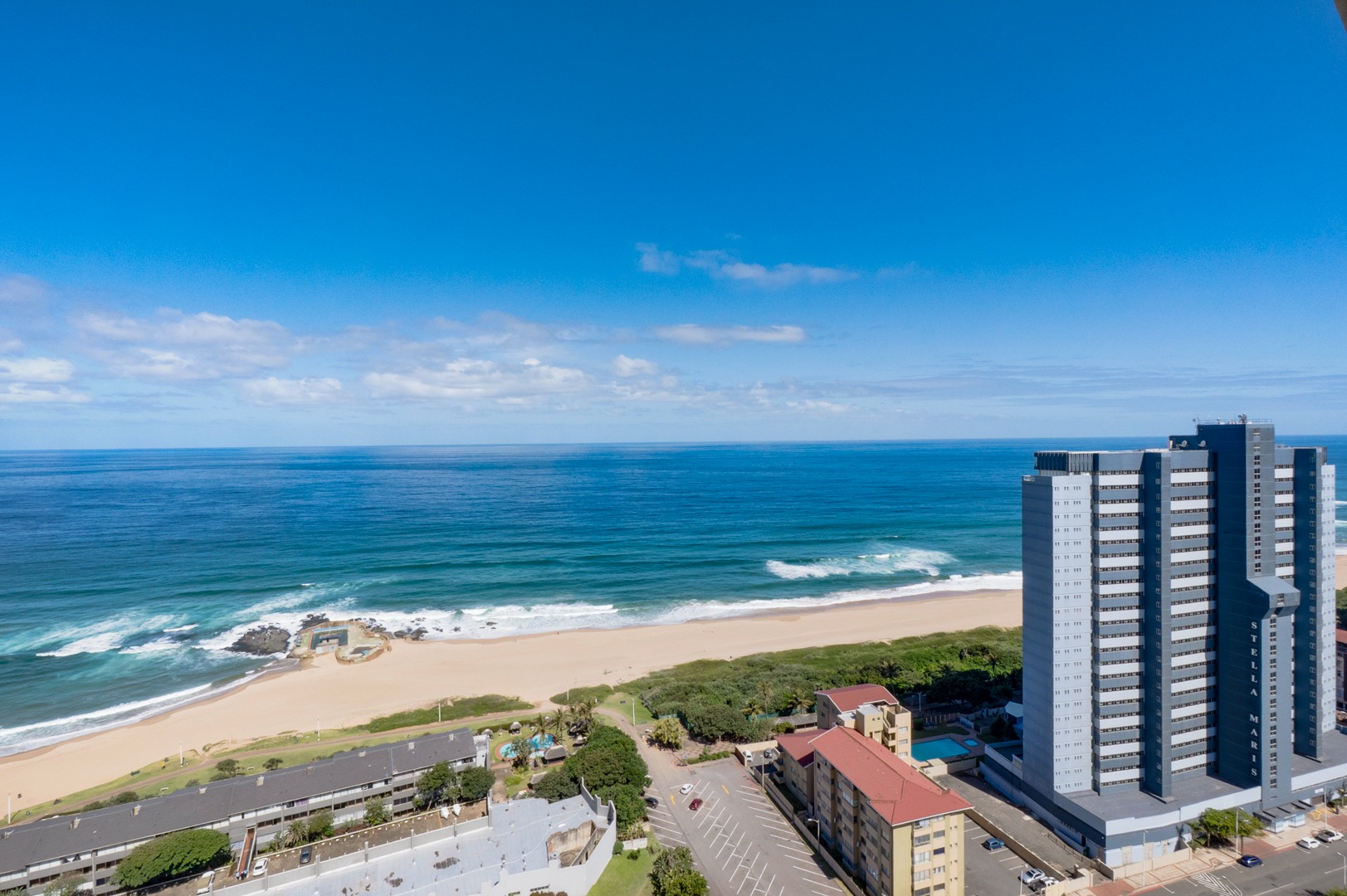 Welcome to High Tide, an elegant high-rise residence perfectly positioned in the heart of Amanzimtoti on Andrew Zondo Road. This beautifully upgraded two-bedroom, two-bathroom apartment offers panoramic sea views from its elevated floor, capturing the essence of coastal luxury.