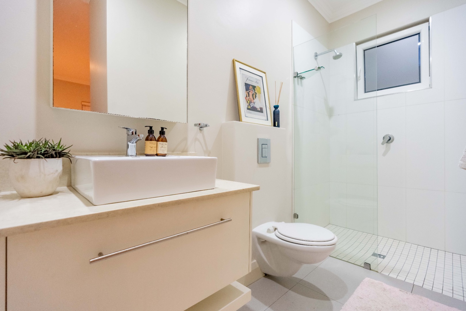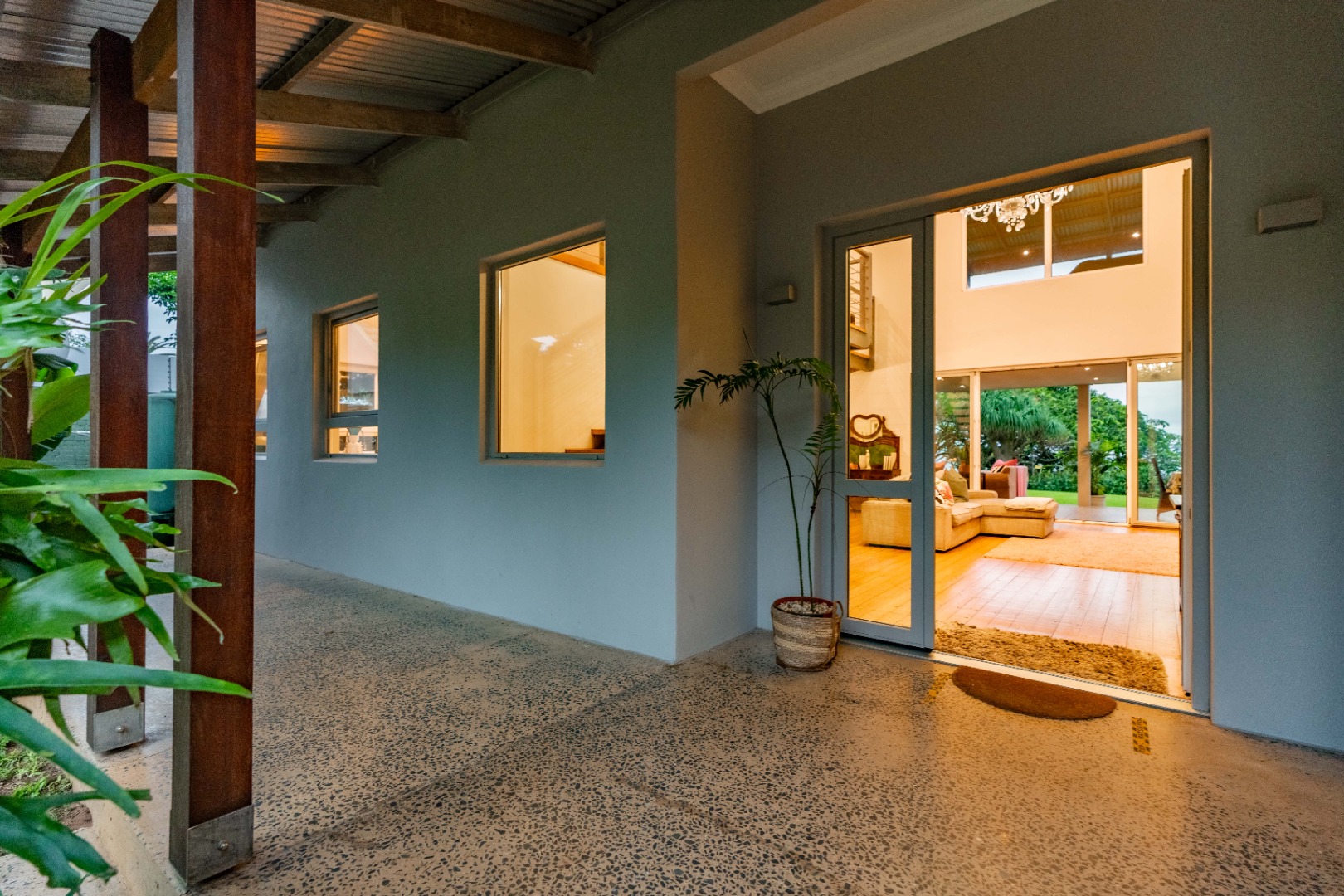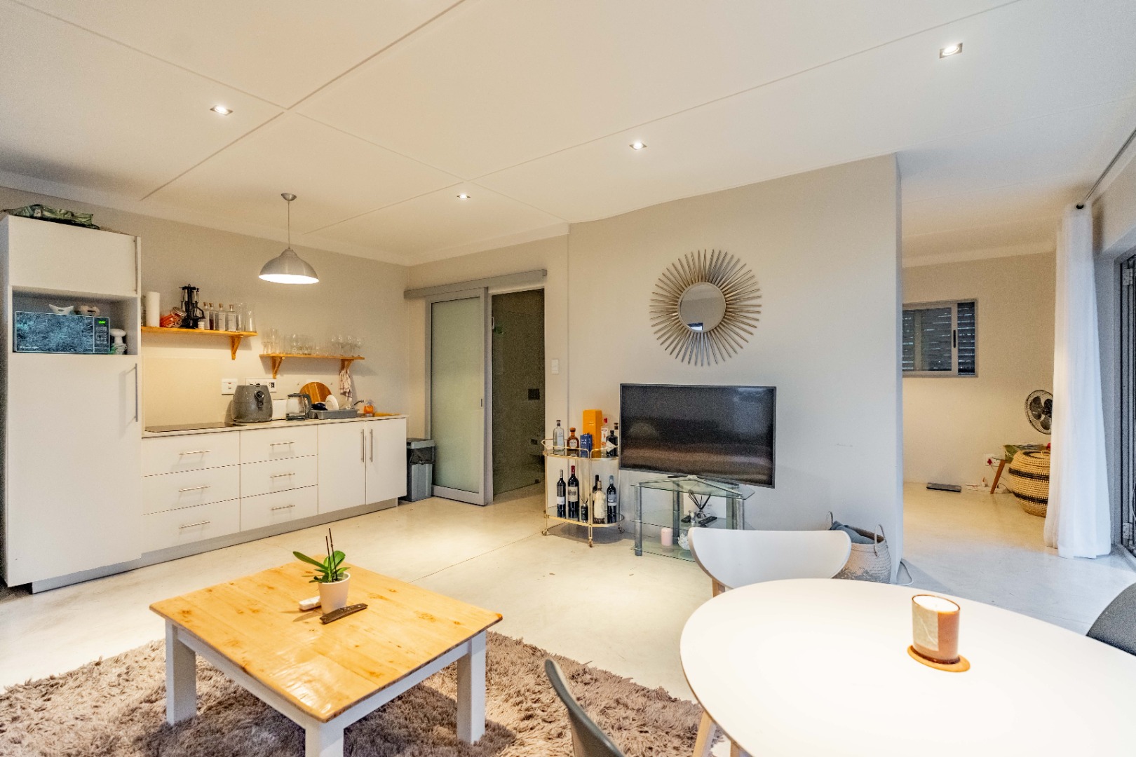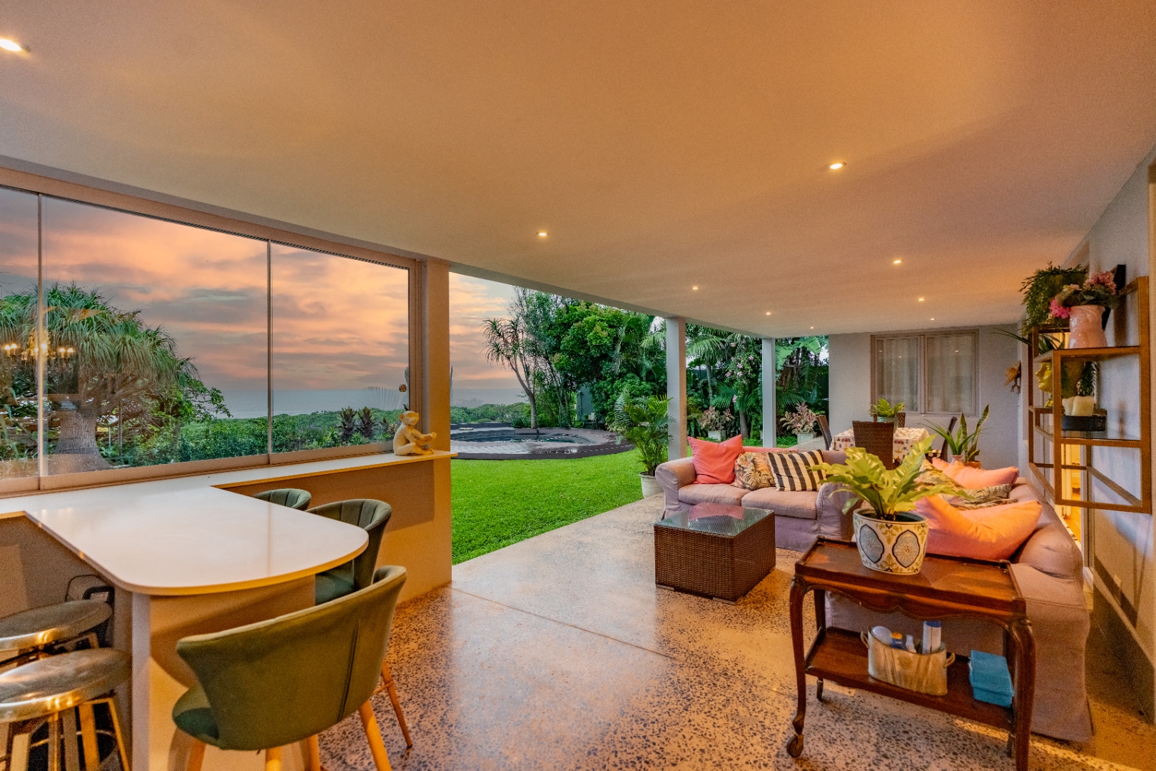 Separate from the main home, a fully self-contained flatlet serves as a private retreat, complete with its own bedroom, en-suite bathroom, and an open-plan lounge, dining, and kitchen area. With a dedicated entrance, this versatile space is ideal for extended family, discerning guests, or as an income-generating opportunity. Stack back doors open out for stunning views of the tropical garden.