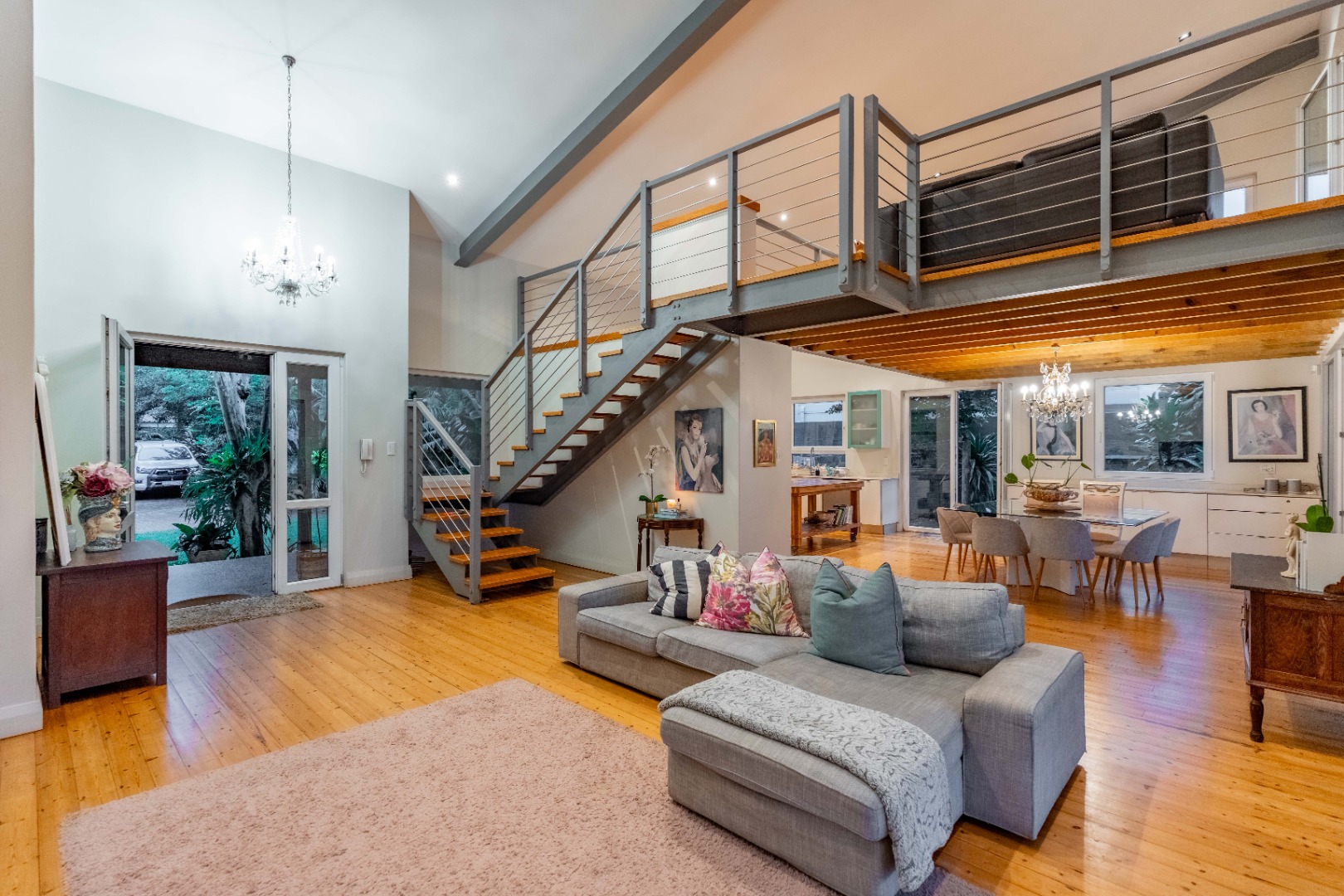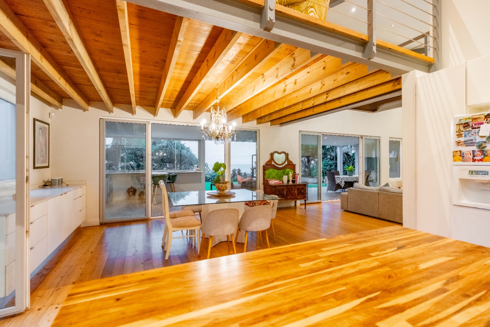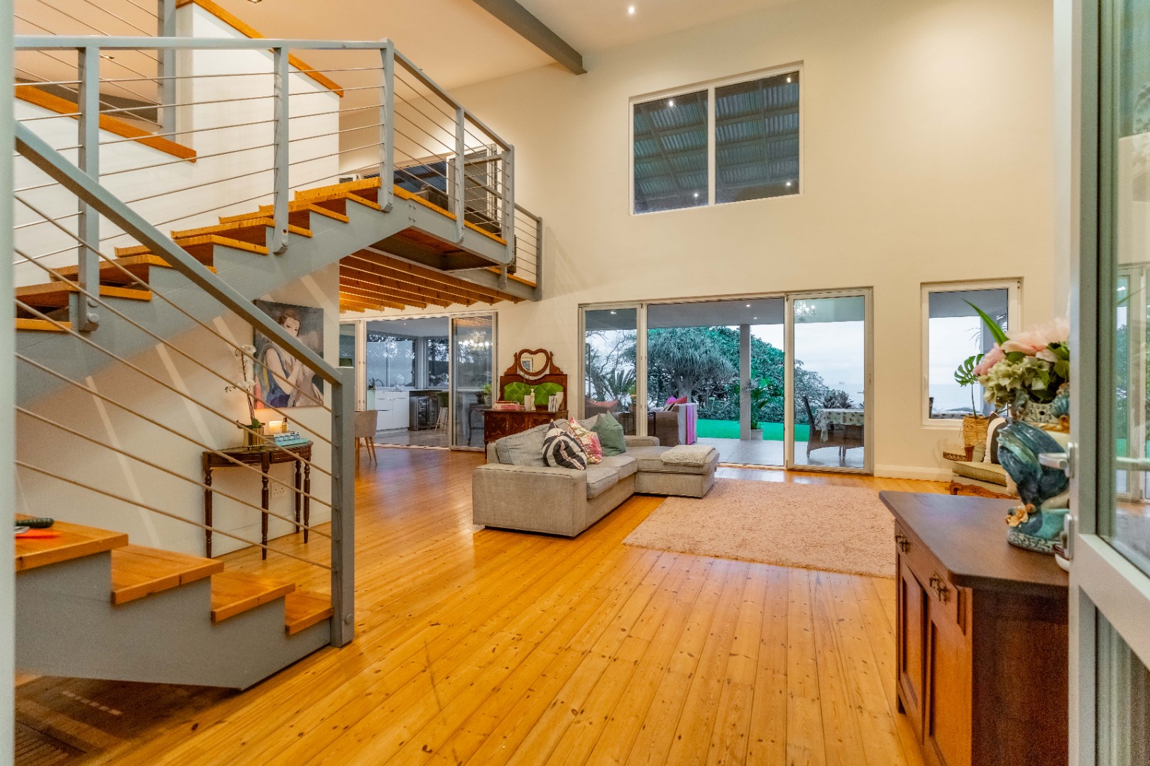 A masterpiece of spatial design, the home unfolds with multiple open-plan living areas that flow harmoniously, offering a series of elegant lounges and dining spaces, all extending onto the beautifully landscaped garden. Lush coastal vegetation borders the level lawn, enhancing the home's serene ambiance with outlook over the sparkling pool. Whether hosting a sophisticated soirée or enjoying a peaceful retreat, the seamless transition between indoor and outdoor spaces creates an atmosphere of refined relaxation.