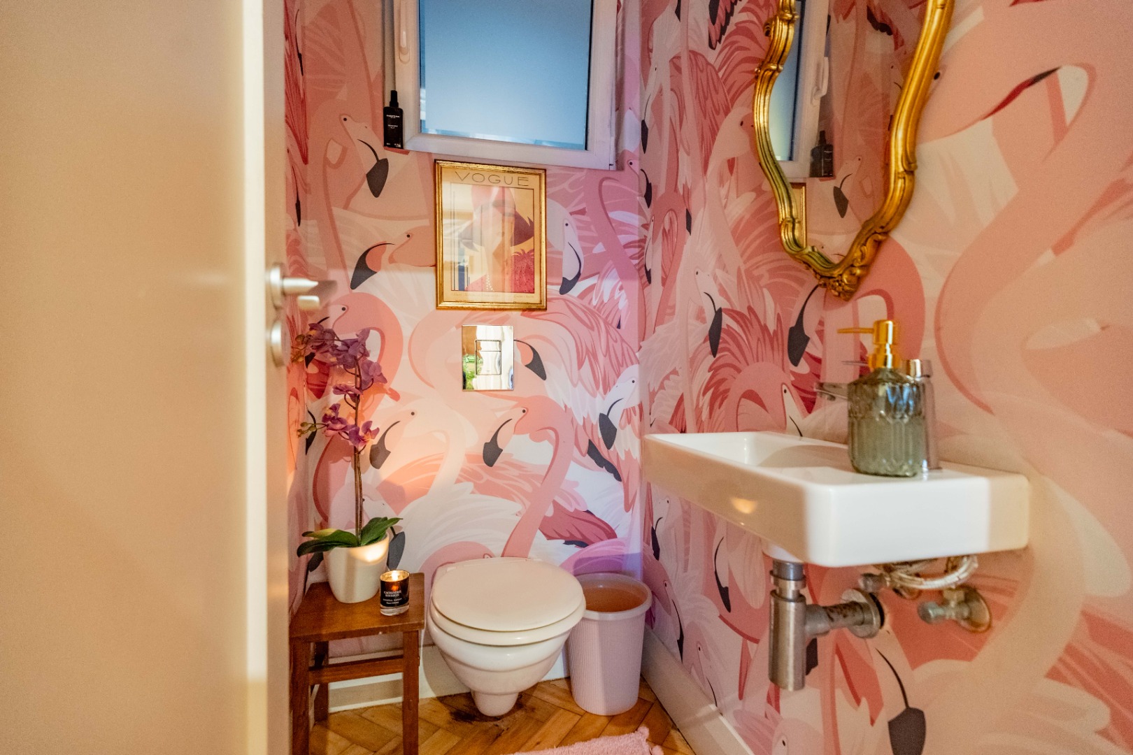 At the heart of the home lies the striking open-plan kitchen—an artful fusion of warmth and modernity. Rich wooden tones add depth and character, complementing sleek, state-of-the-art appliances. Designed for both gourmet creations and casual gatherings, this culinary space integrates effortlessly with the surrounding living areas, ensuring an inviting yet sophisticated atmosphere.