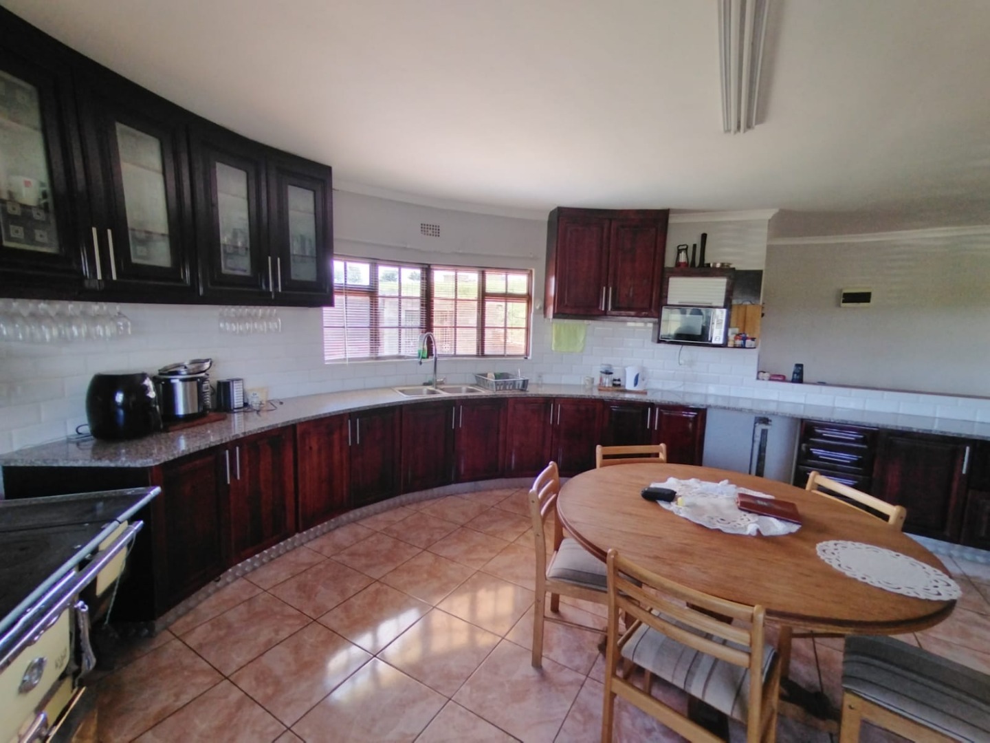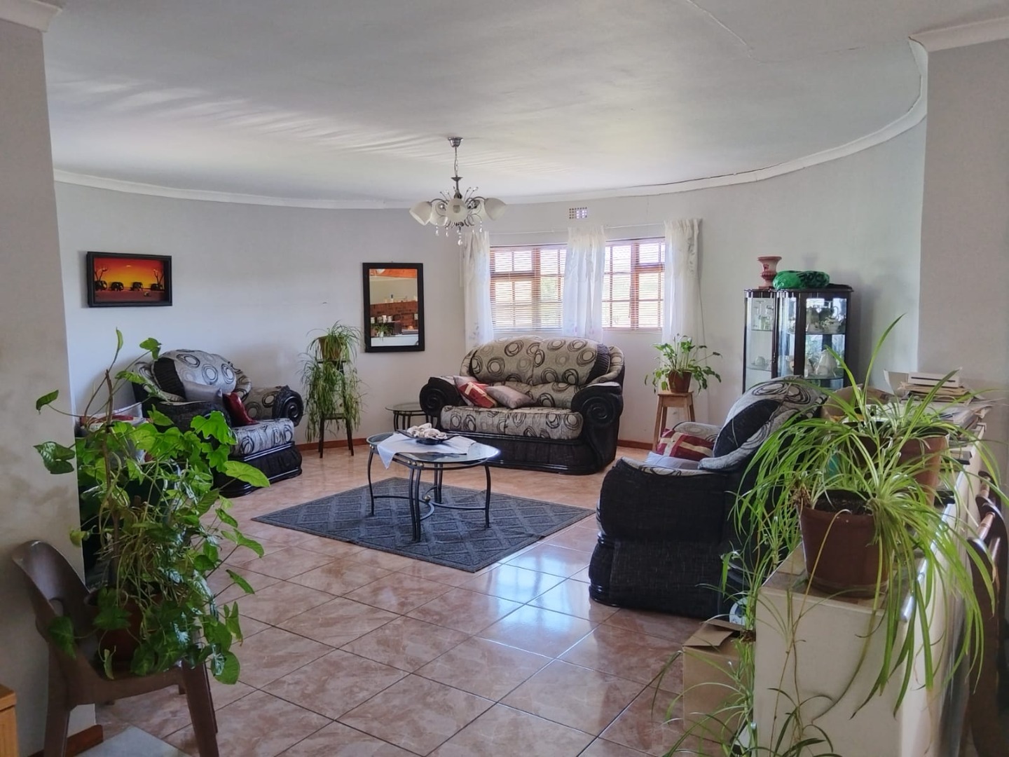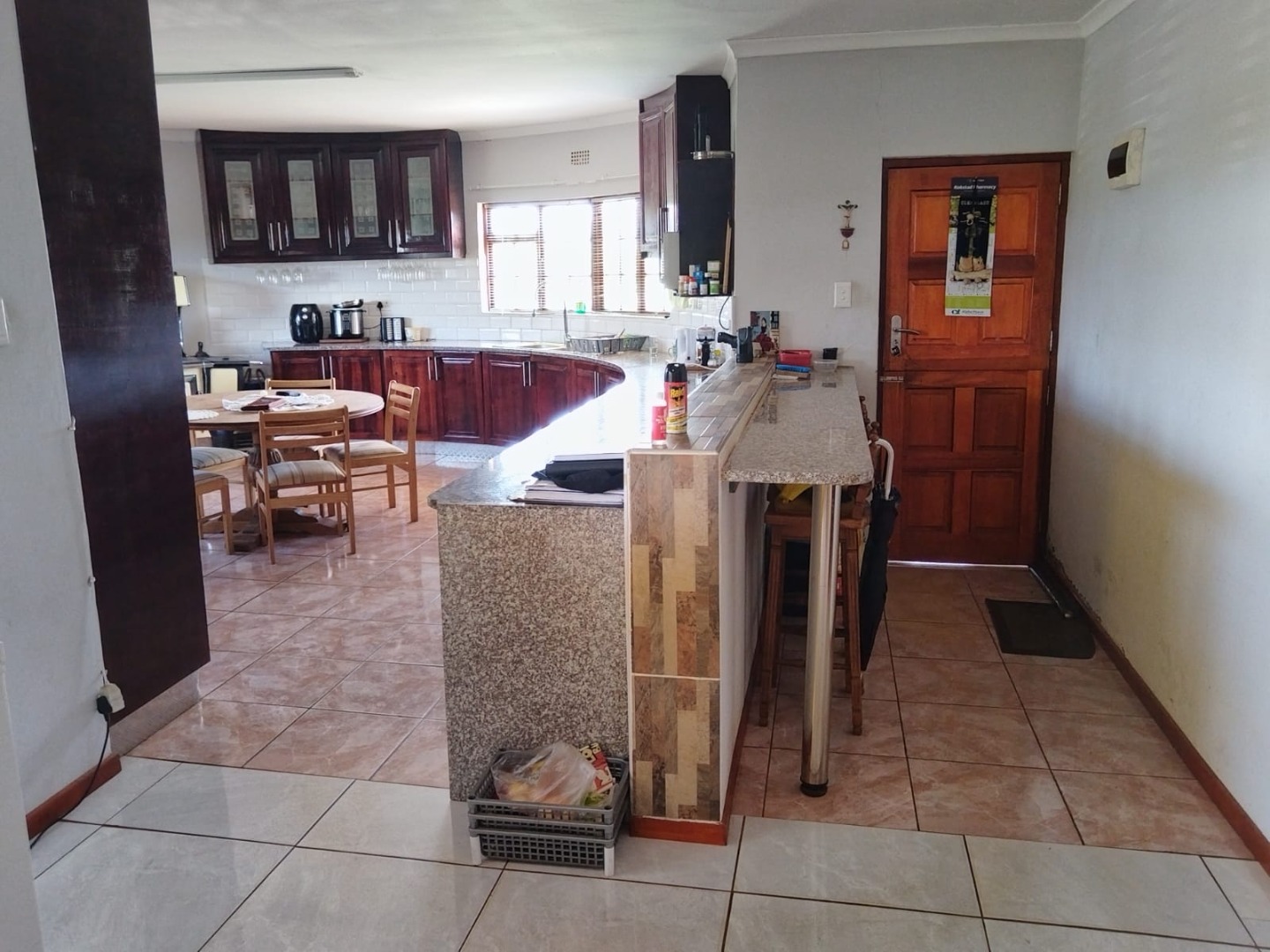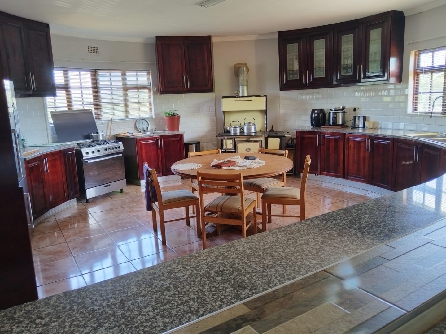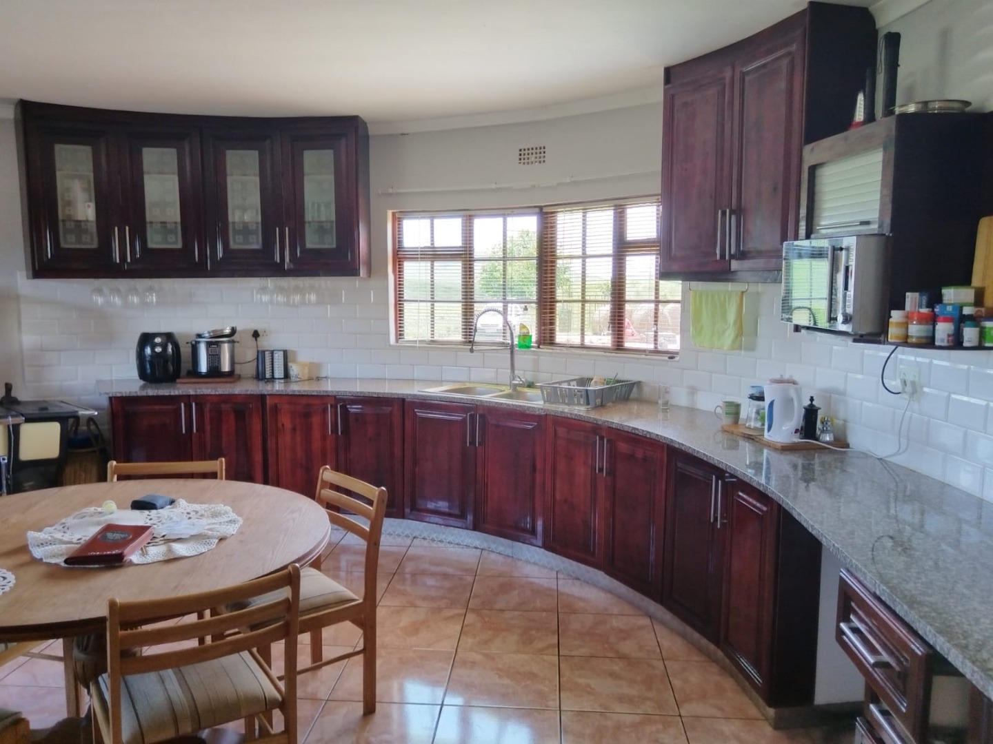The kitchen is fully fitted with granite countertops and generous cupboard space, and flows seamlessly into a large open-plan lounge, sitting area, and dining room. The dwelling presents a unique architectural character and offers comfortable family living with a modern, functional layout.