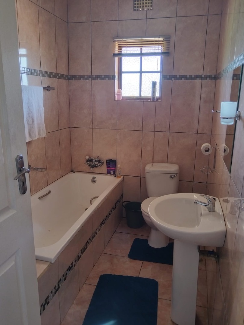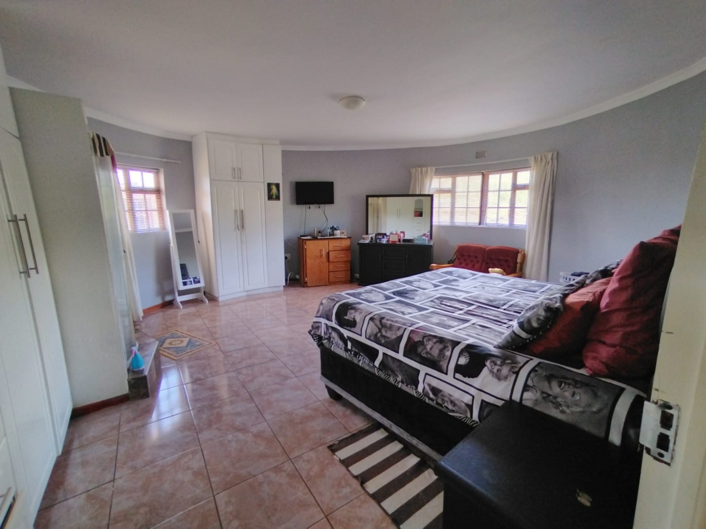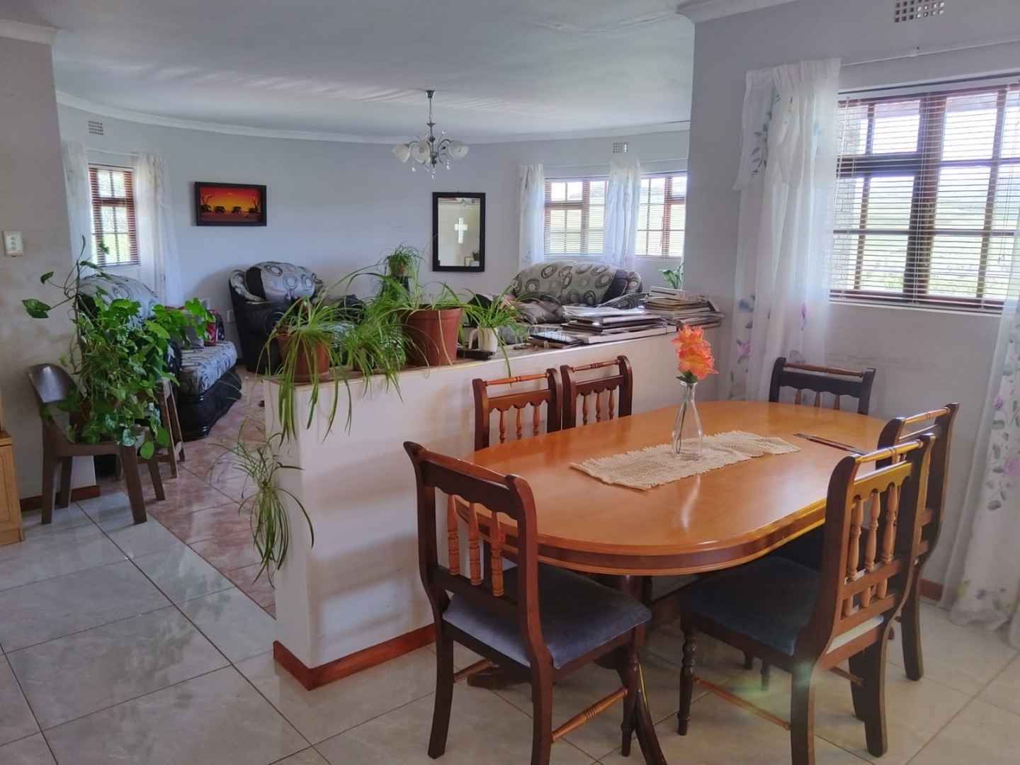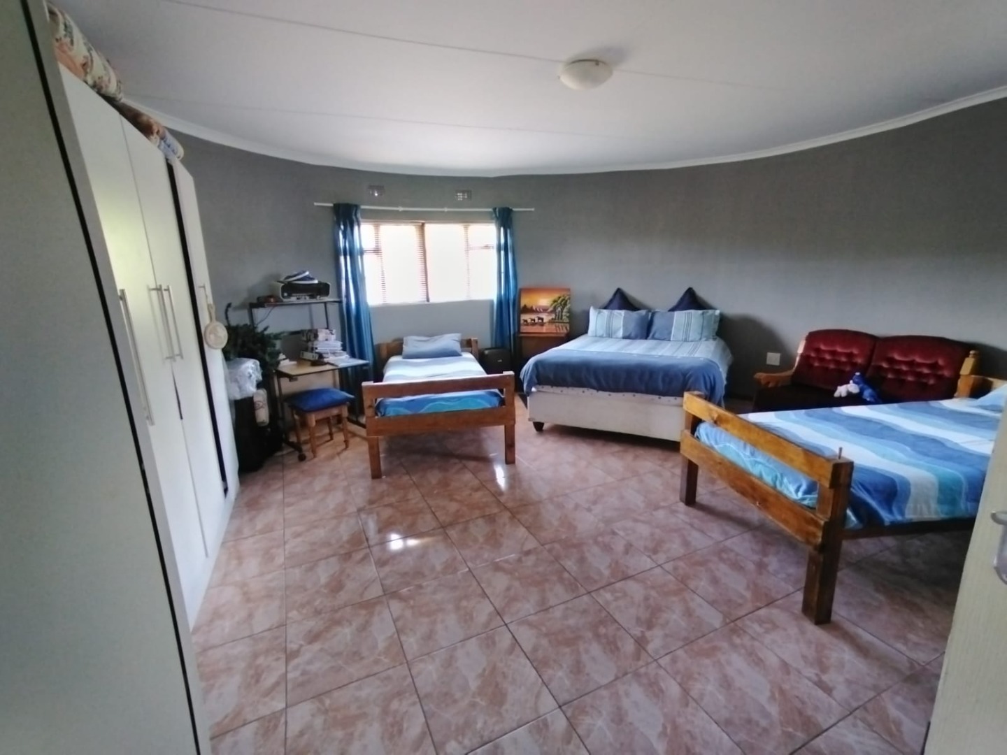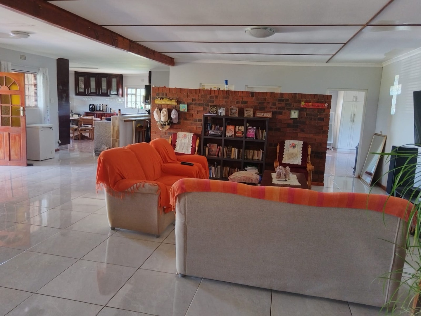 The kitchen is fully fitted with granite countertops and generous cupboard space, and flows seamlessly into a large open-plan lounge, sitting area, and dining room. The dwelling presents a unique architectural character and offers comfortable family living with a modern, functional layout.