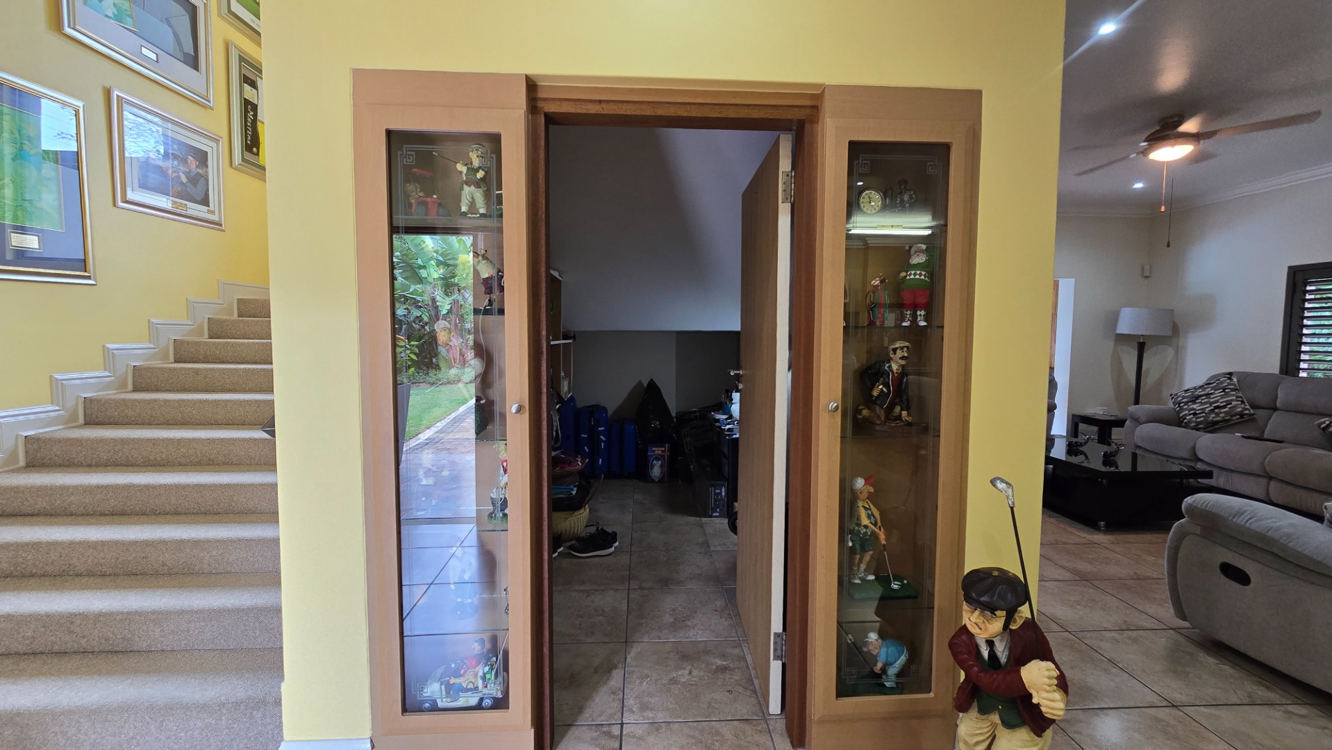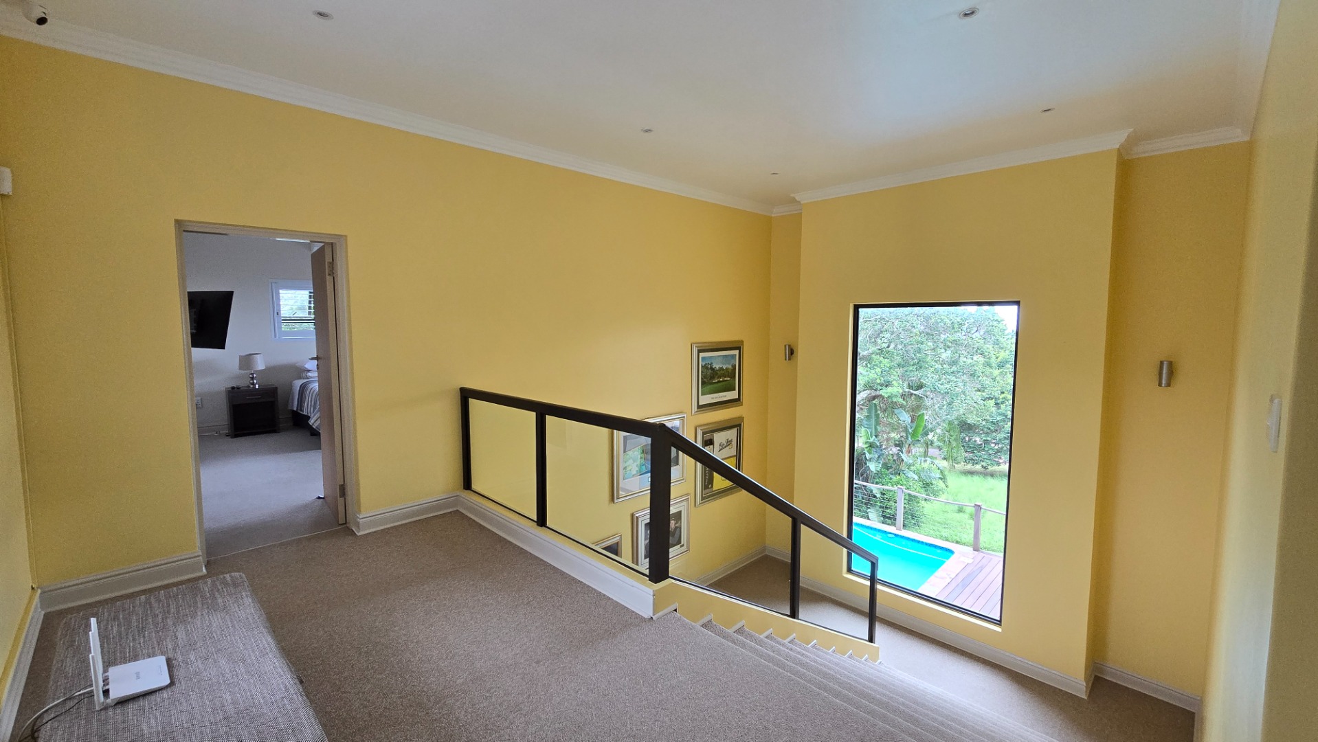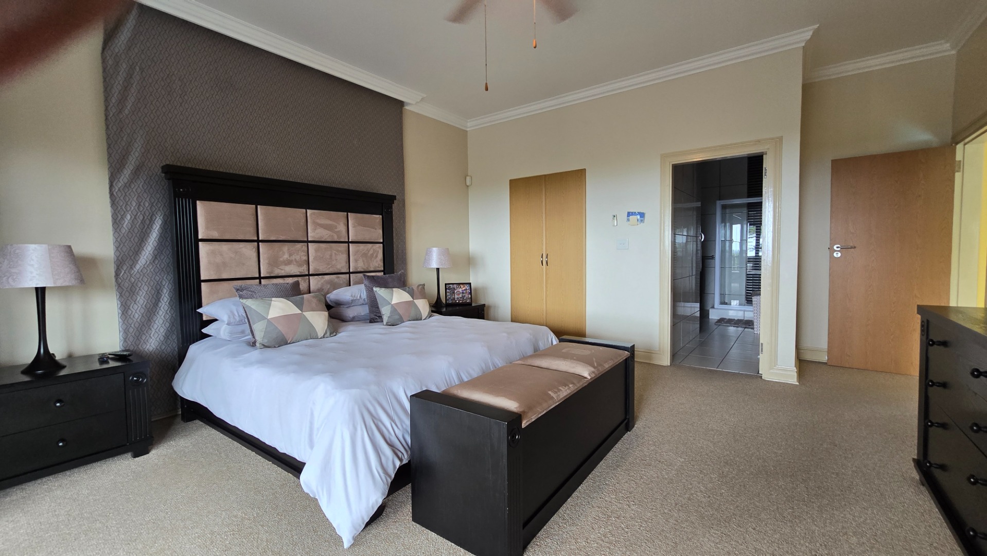 Located within the exclusive Eden Rock Eco Estate in the coastal enclave of Pennington, this distinguished multi-level residence presents an exceptional opportunity to acquire a sophisticated, security-focused home in a tranquil eco-estate setting. Positioned on a 1,035 sqm stand with approximately 640 sqm under roof, the property combines architectural presence with refined coastal living. The exterior is defined by a tiled roof, stone-clad detailing, and established landscaping, while a paved driveway leads to a triple automated garage. Upon entry, a bespoke, wide staircase—architecturally designed and framed by a dramatic full-height window—creates an immediate sense of volume and light, offering a grand yet elegant arrival experience. Discreetly positioned beneath the staircase is a versatile space suitable for use as a wine cellar, cloakroom, or secure storage, reflecting the home’s thoughtful attention to detail.