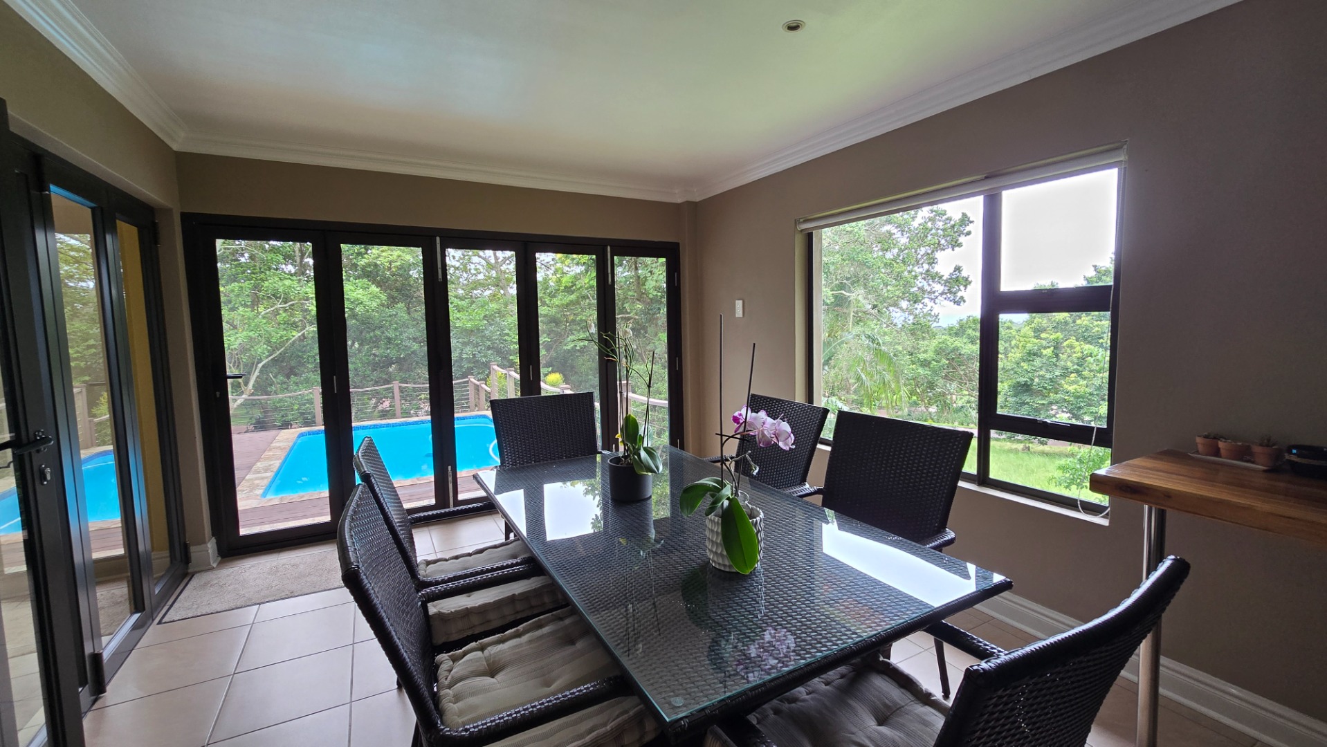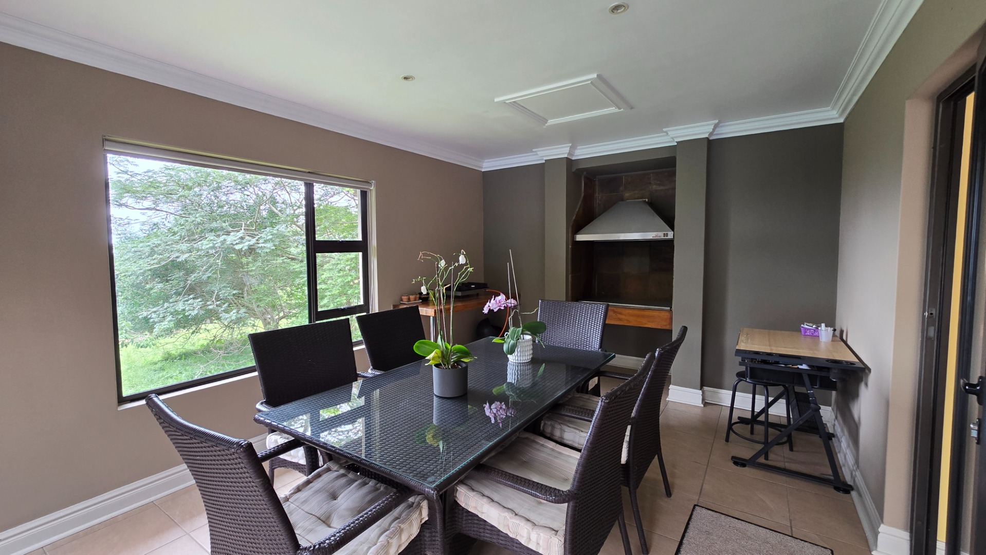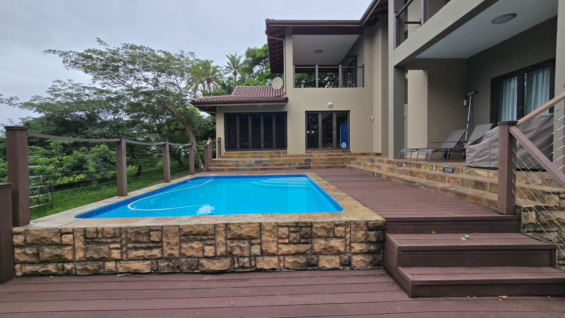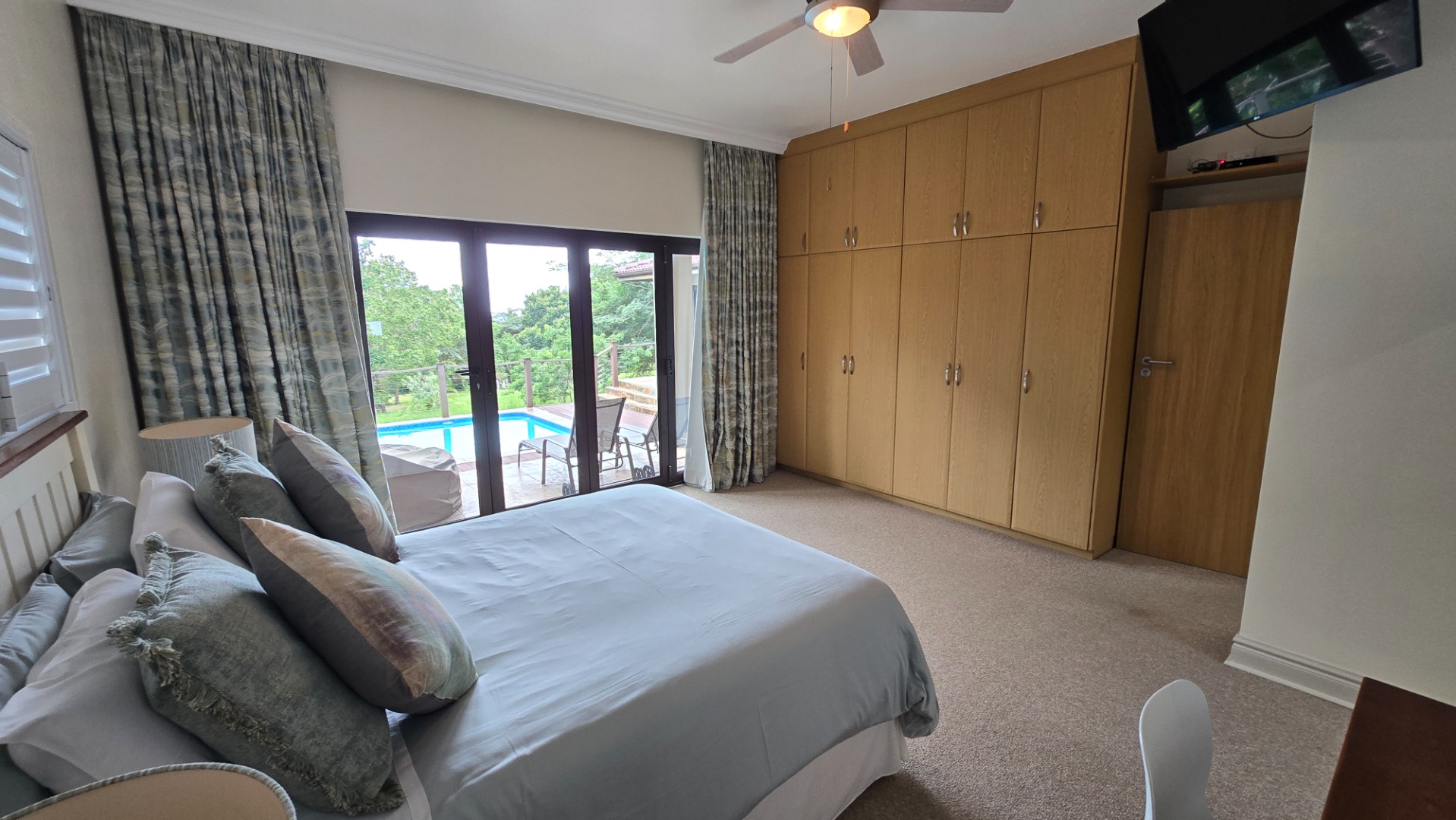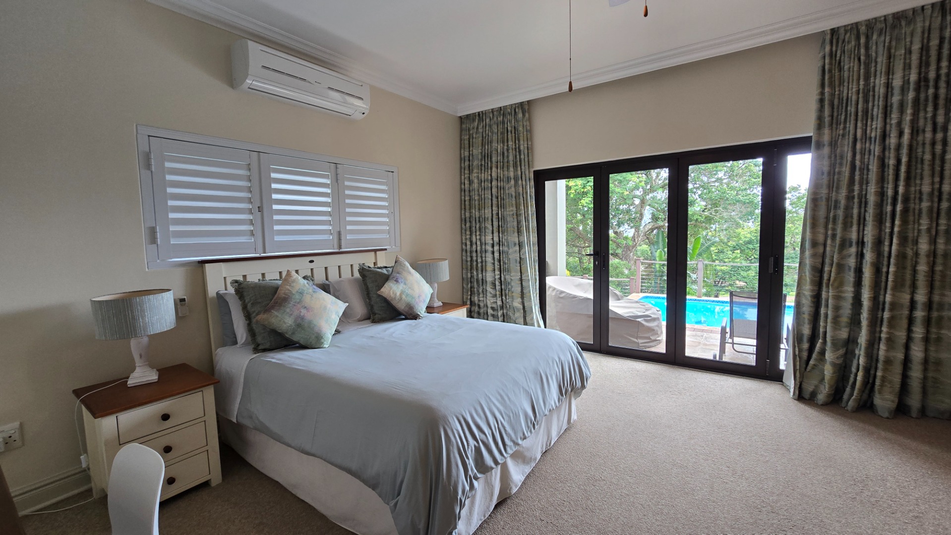 Outdoor leisure and sustainability are key strengths of this residence. A private swimming pool with an expansive timber deck creates a relaxed, resort-style environment, complemented by additional secure storage positioned beneath the deck for outdoor and leisure equipment. The enclosed entertainment and braai room is fitted with Trelliguard Clear Guard windows and features a gas-assisted built-in braai designed to ignite coals with ease, alongside a built-in bar ideal for hosting. The home is exceptionally well-equipped for energy independence, offering solar panels, inverter, and a smart lithium battery system, with all geysers on timers and a generator-ready connection in place. Water security is ensured by two 5,000-litre JoJo tanks, while most windows are secured with louvre-style Trellidor blinds. Set within a 24-hour access-controlled eco-estate with fibre connectivity, the property offers privacy, security, and peace of mind, within close proximity to pristine beaches, championship golf courses, and the natural beauty for which Pennington is increasingly sought after by discerning local and international buyers.