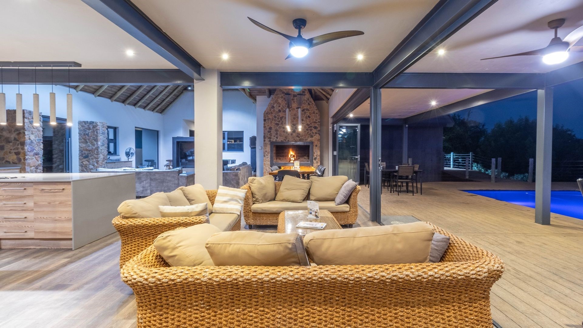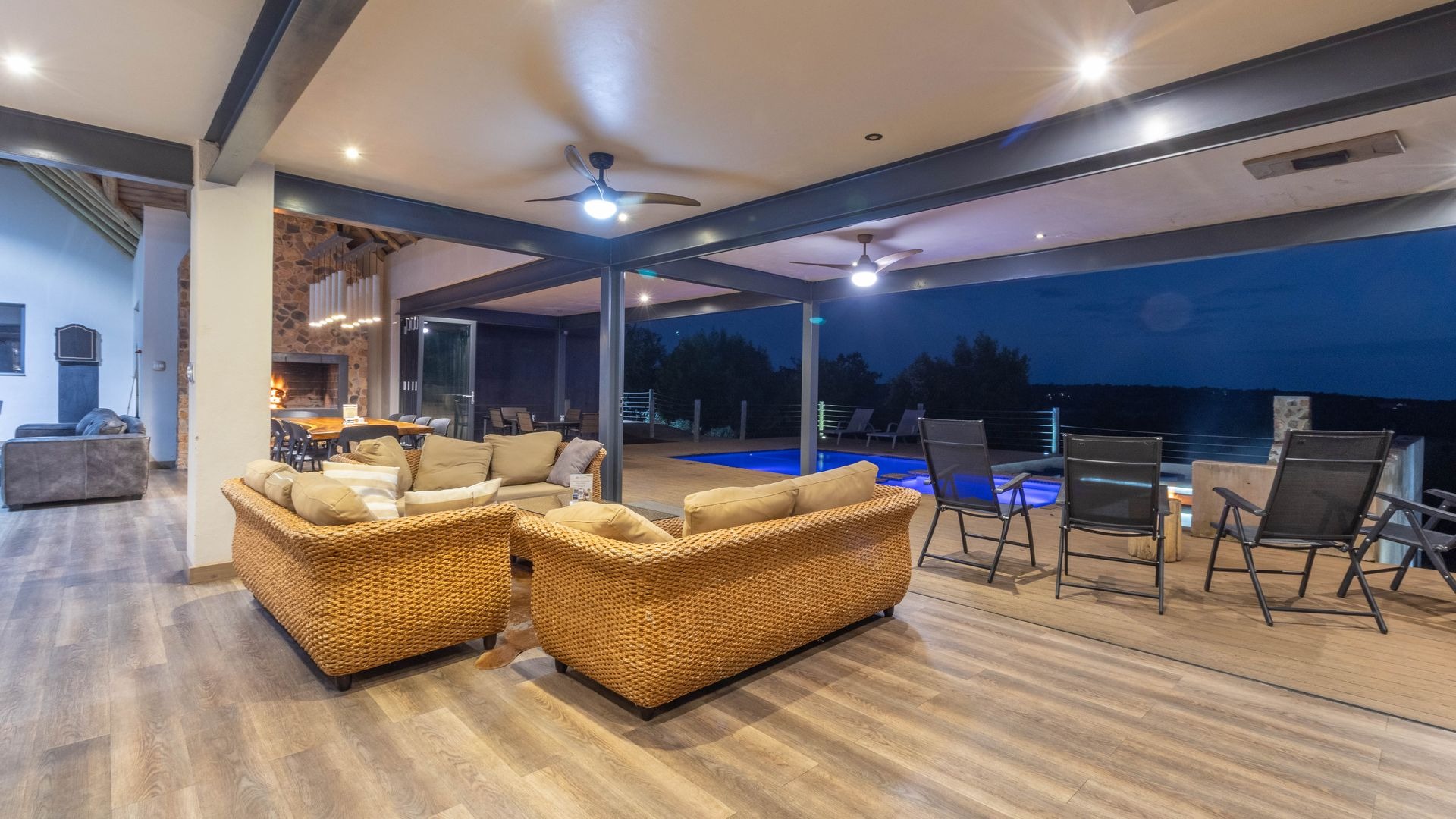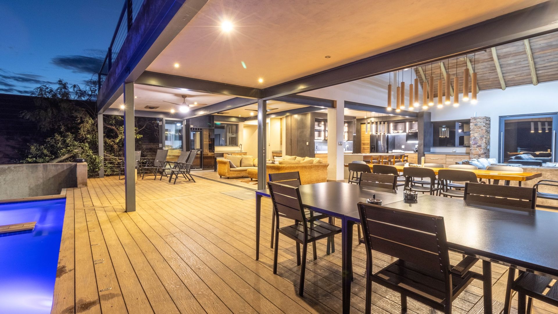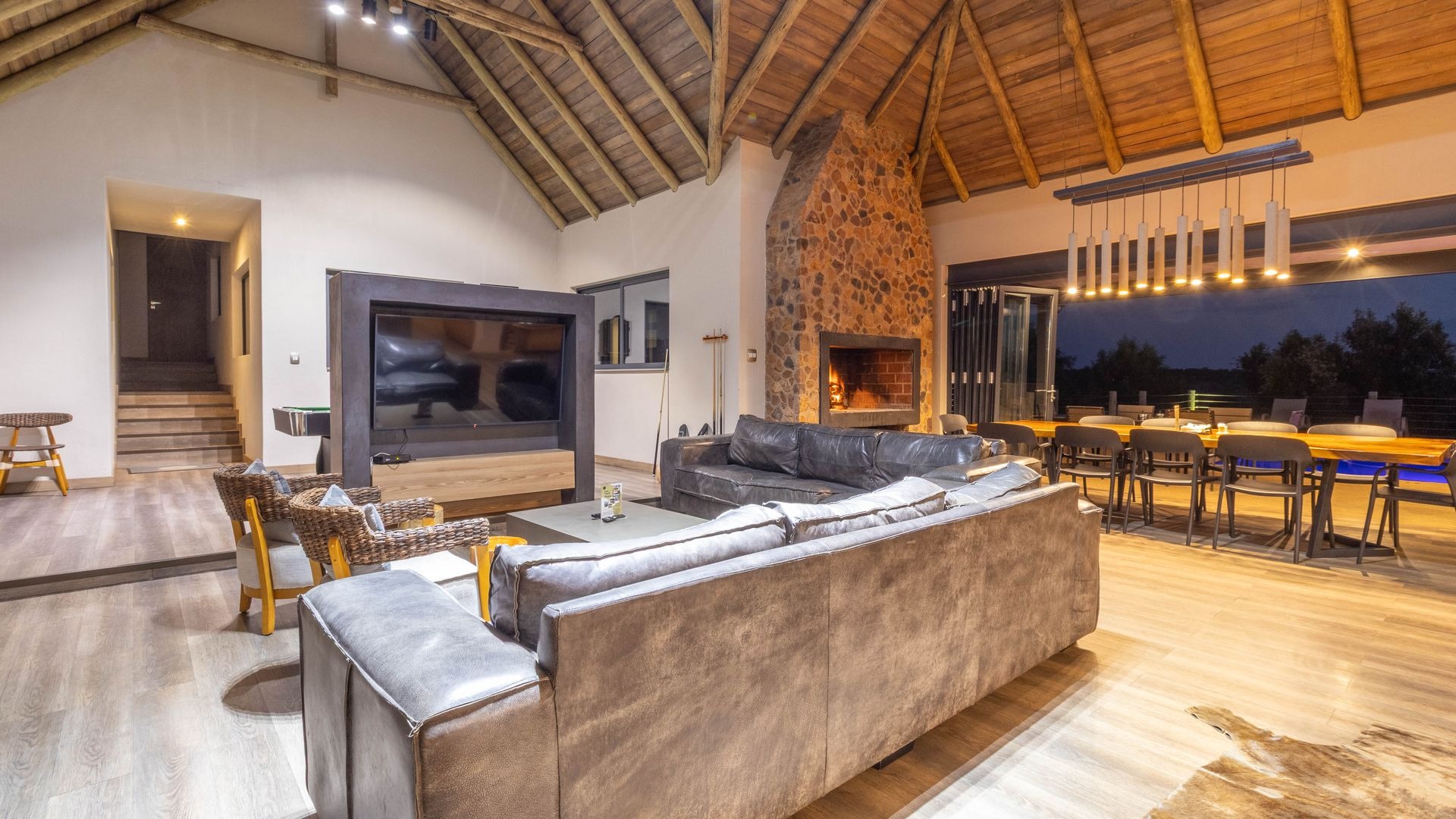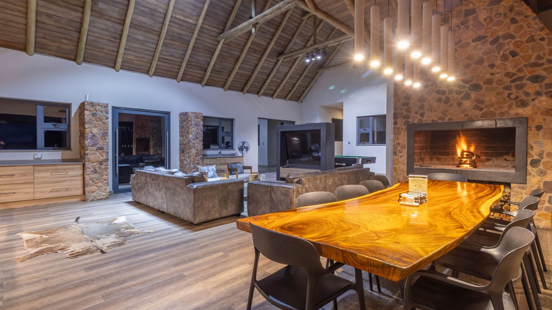 - Multiple entertainment areas, braais, and a pool table