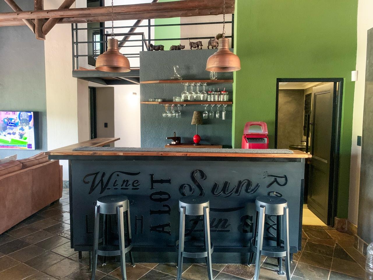 A stylish indoor bar enhances the entertainment appeal, while the outdoor area boasts a swimming pool and an impressive selection of braai facilities, including: