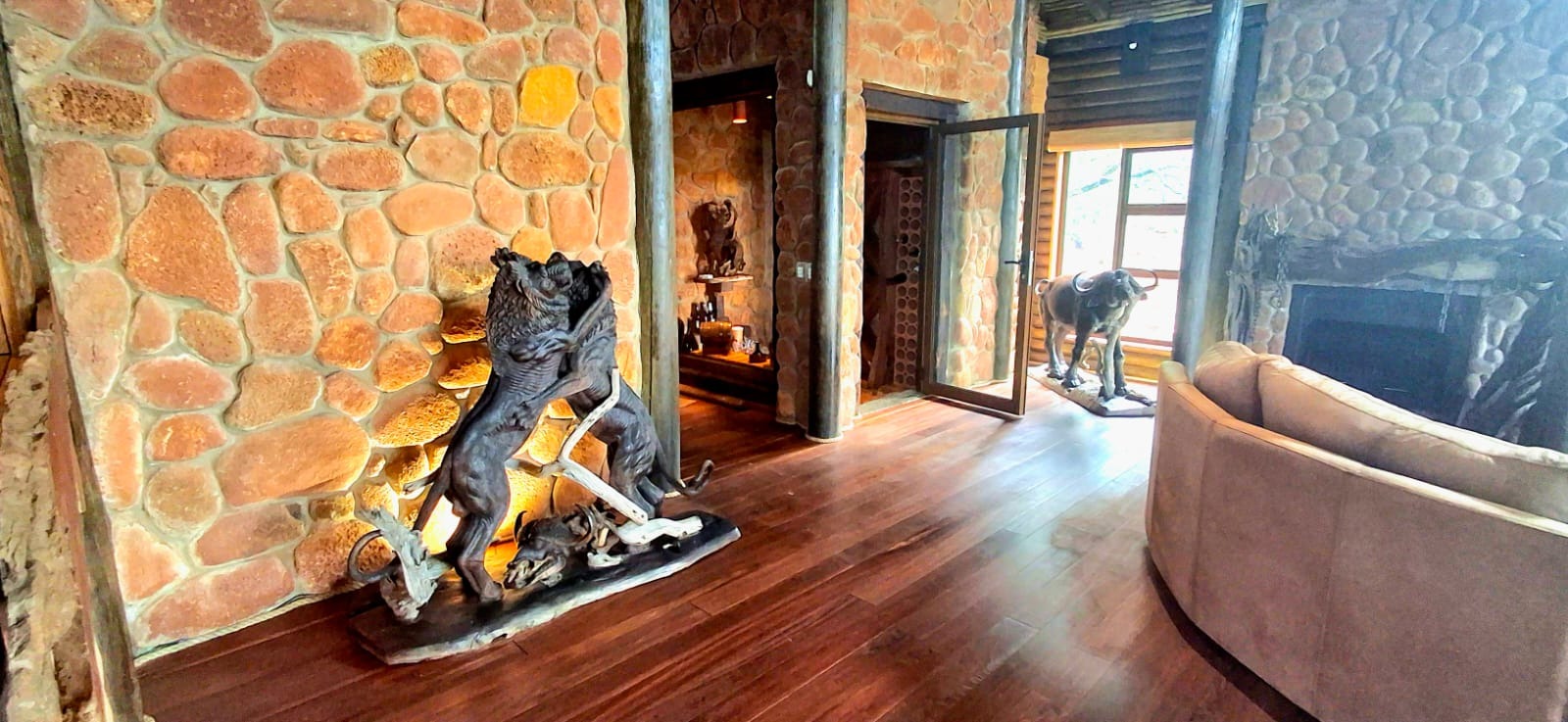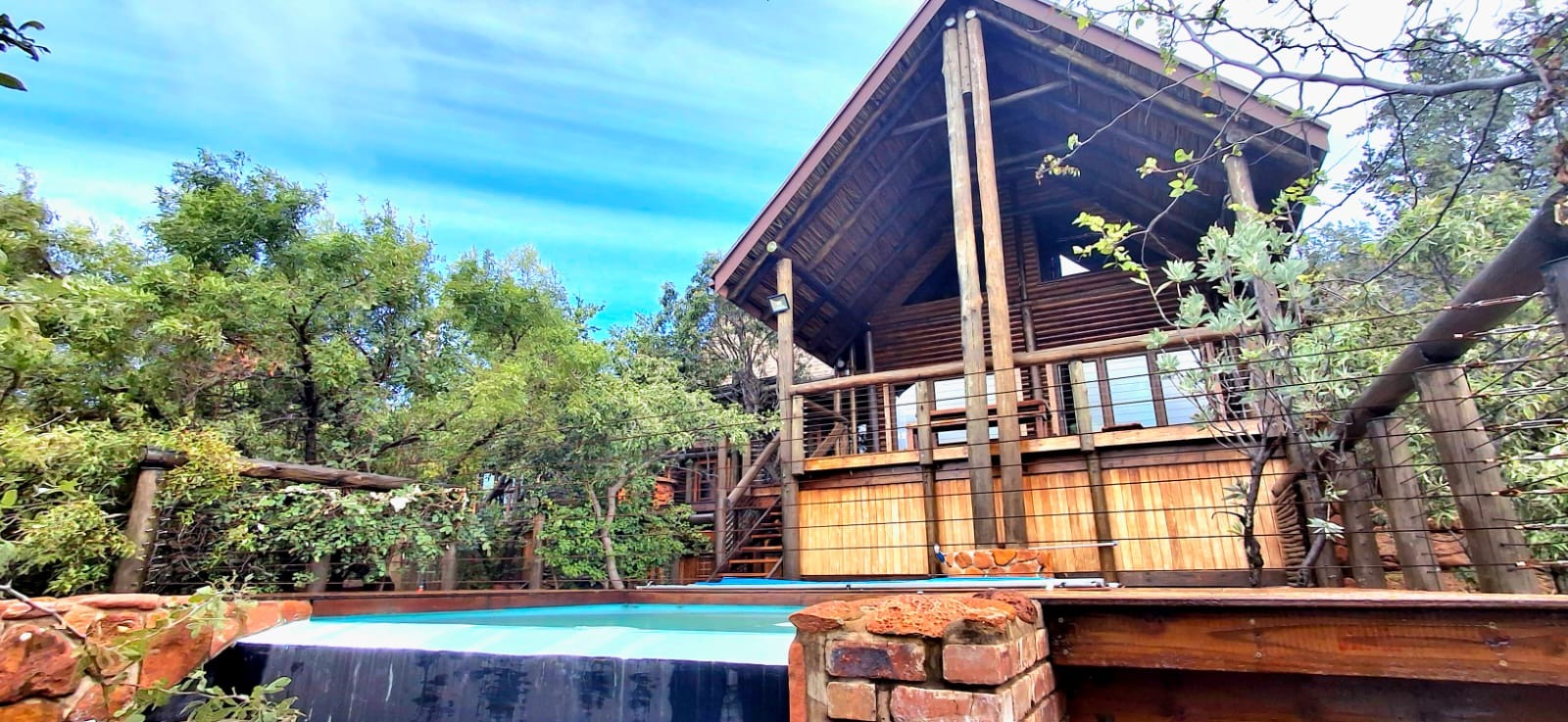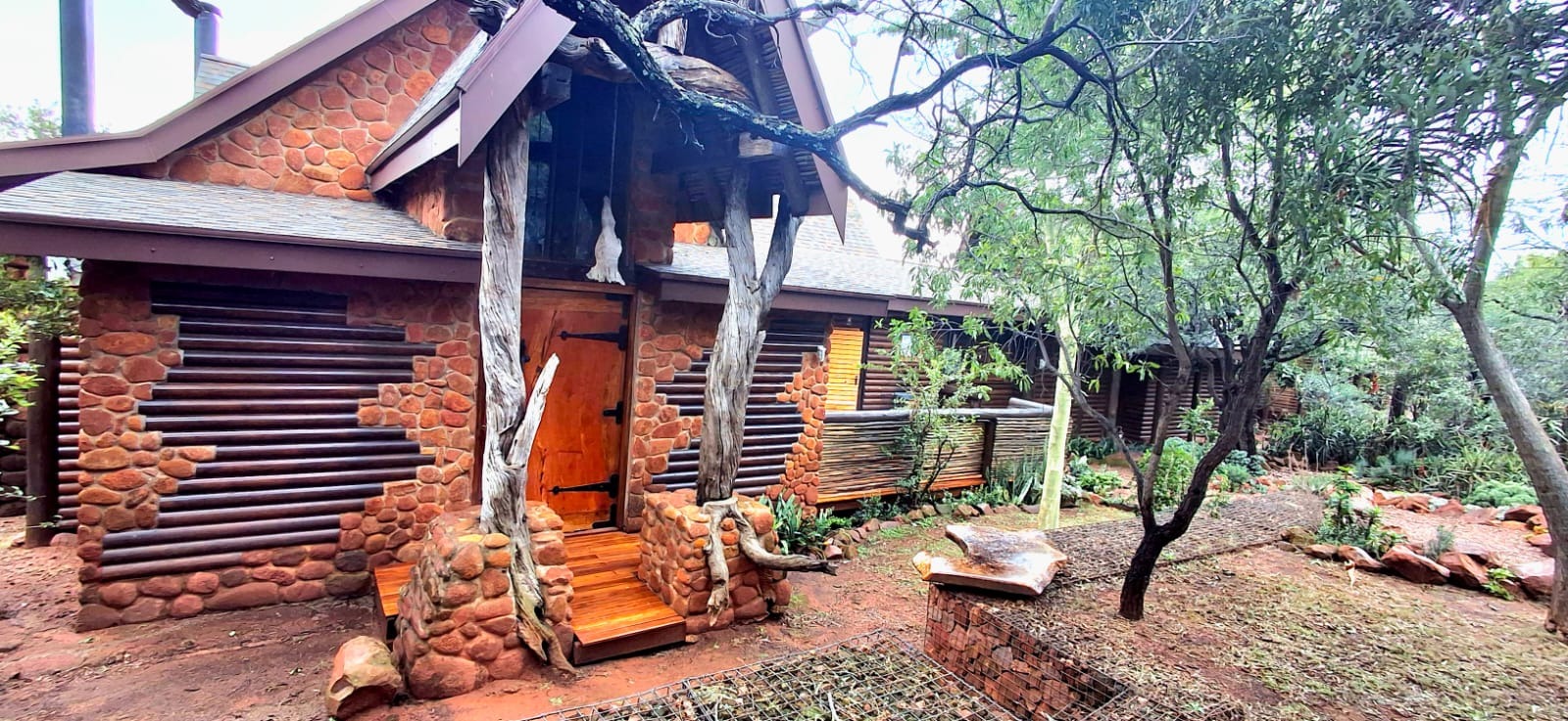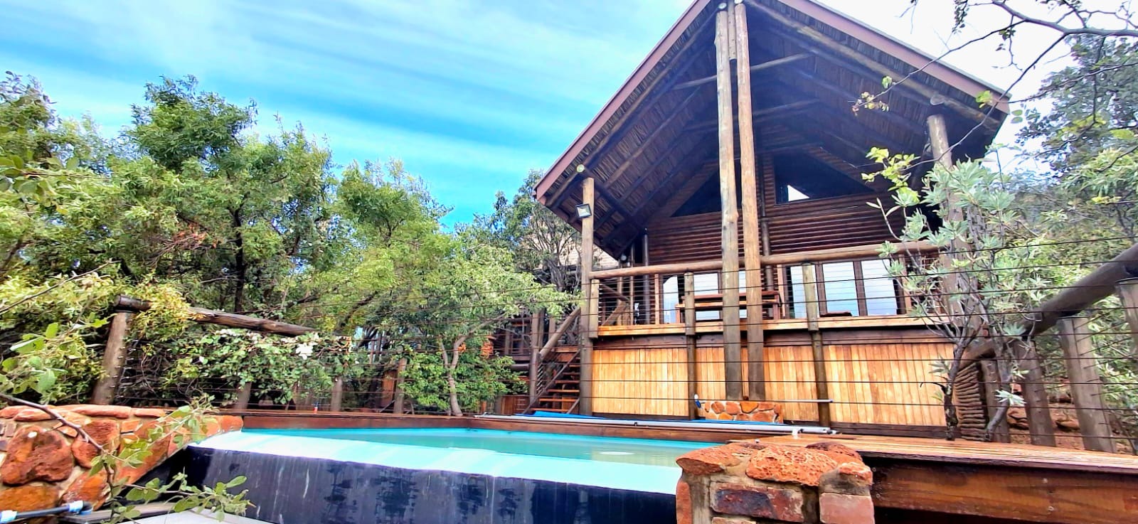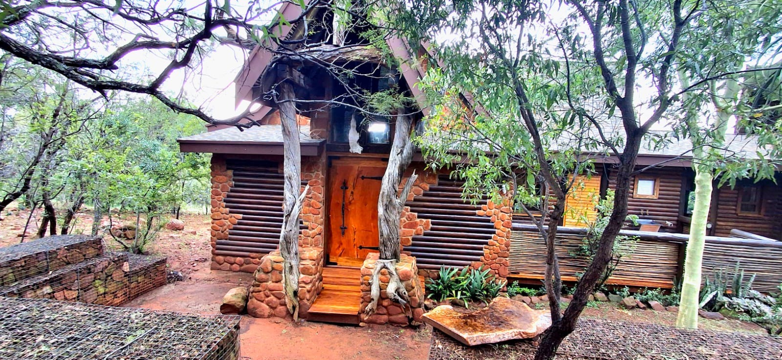 Nestled in the heart of the breathtaking mountains of the Bushveld, this one-of-a-kind handcrafted lodge is a true masterpiece of design, detail, and functionality. Every inch of this property has been meticulously planned and expertly executed — from the robust gabion walls that blend strength with natural beauty, to integrated security systems and comprehensive fire-fighting measures that ensure peace of mind in every season.