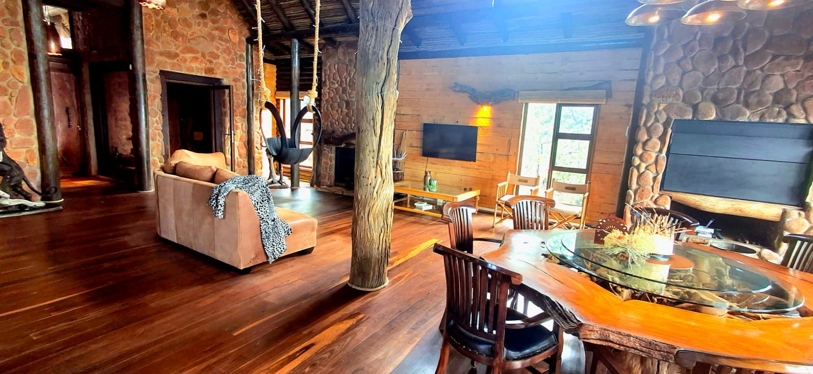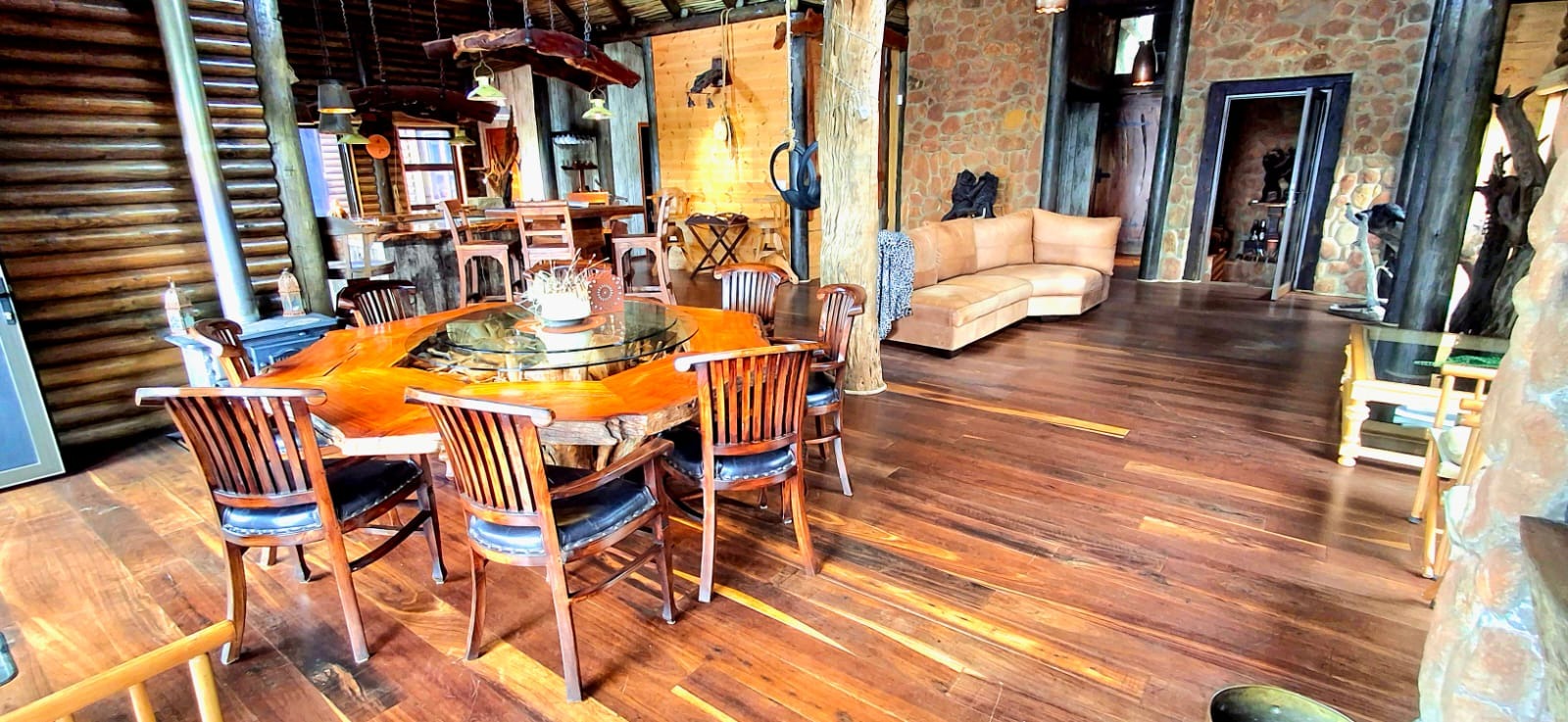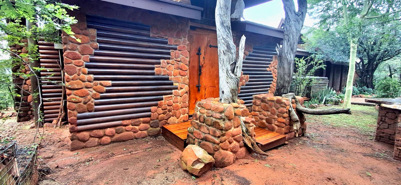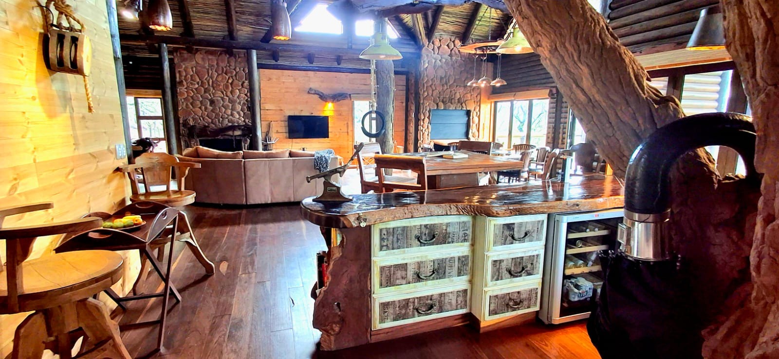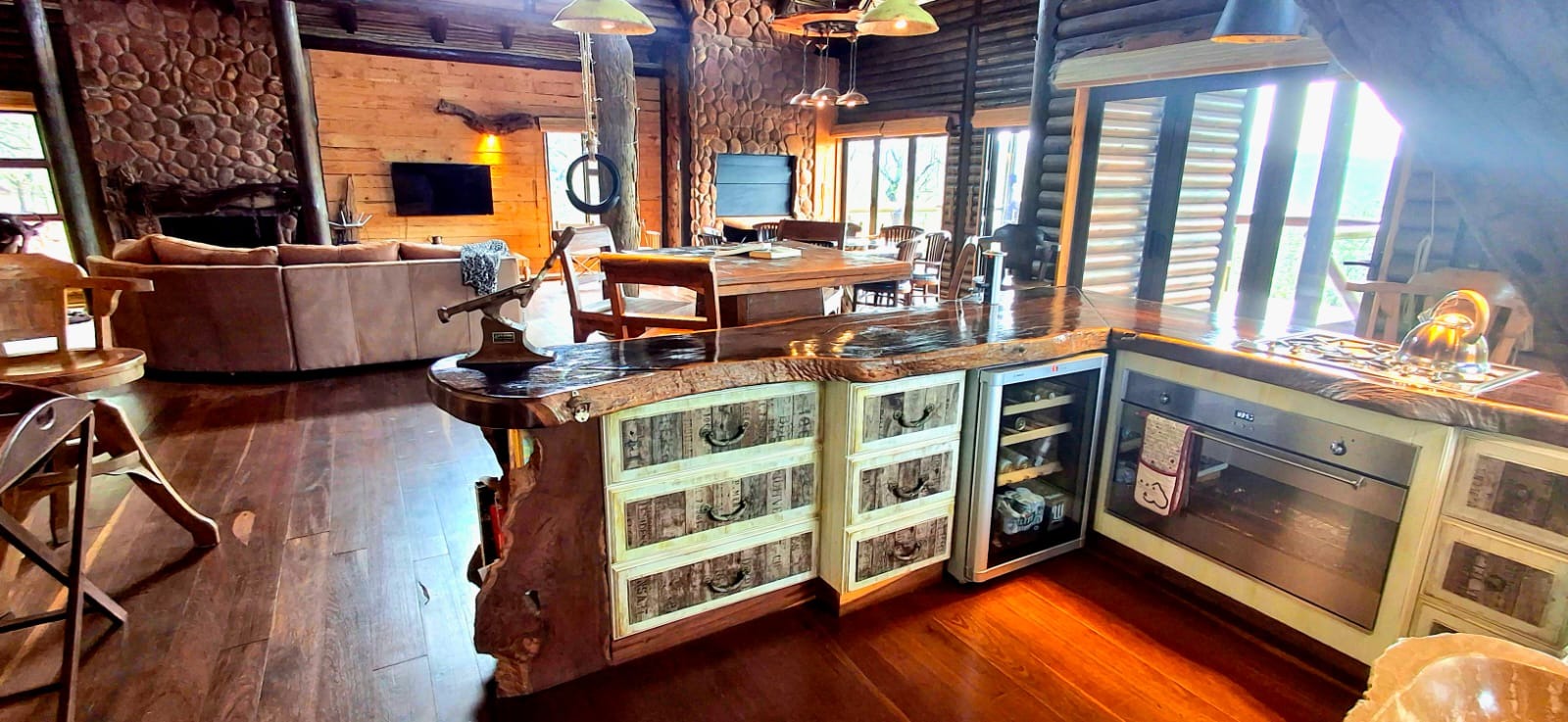Nestled in the heart of the breathtaking mountains of the Bushveld, this one-of-a-kind handcrafted lodge is a true masterpiece of design, detail, and functionality. Every inch of this property has been meticulously planned and expertly executed — from the robust gabion walls that blend strength with natural beauty, to integrated security systems and comprehensive fire-fighting measures that ensure peace of mind in every season.
