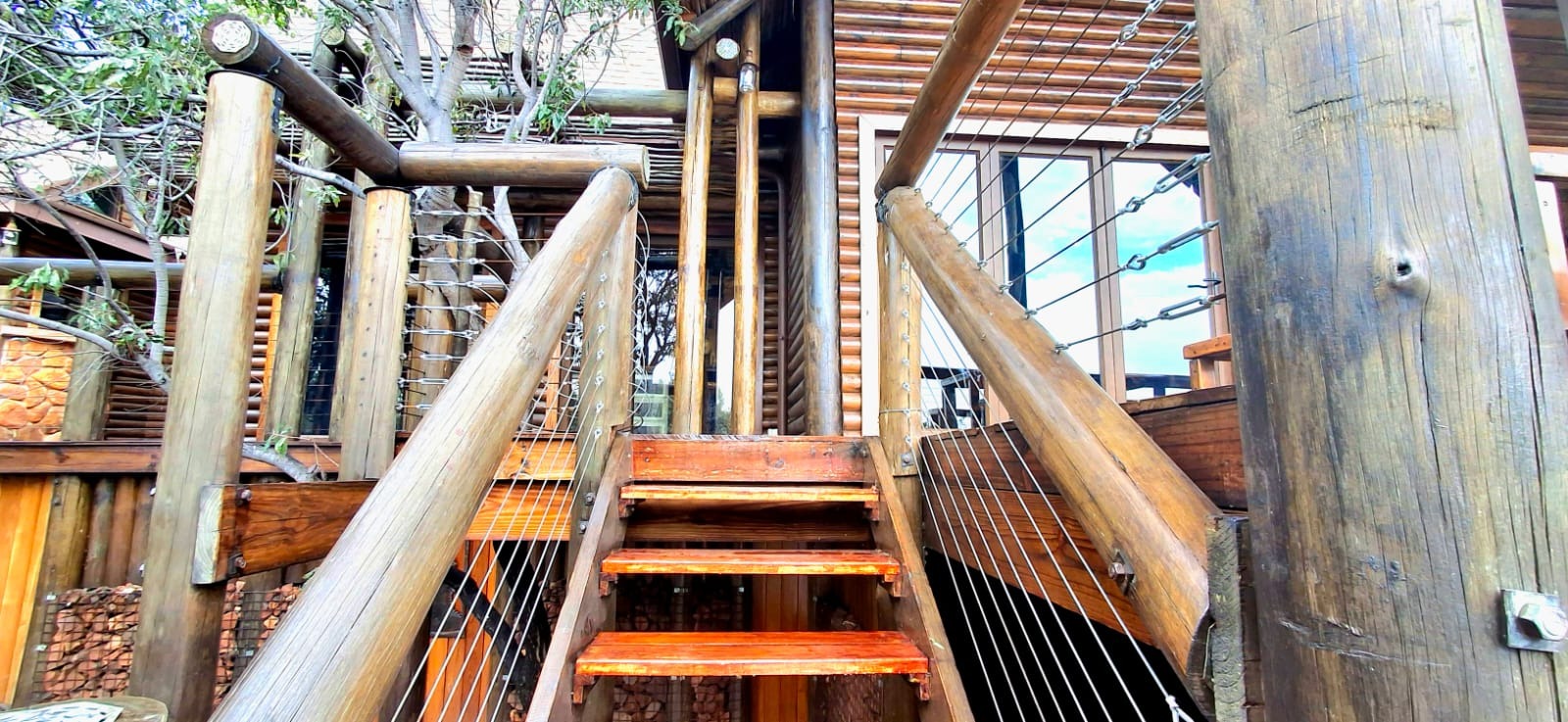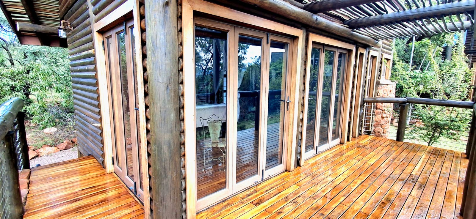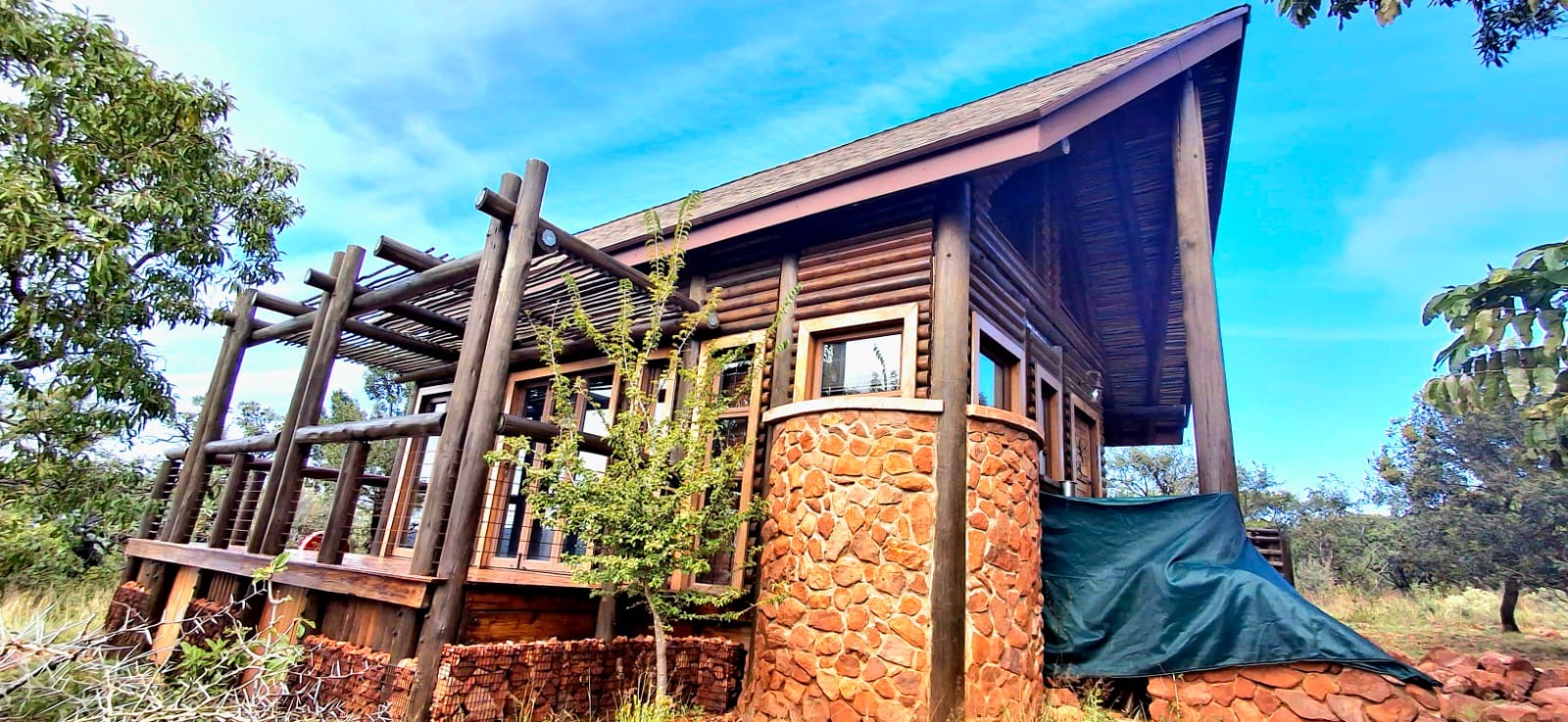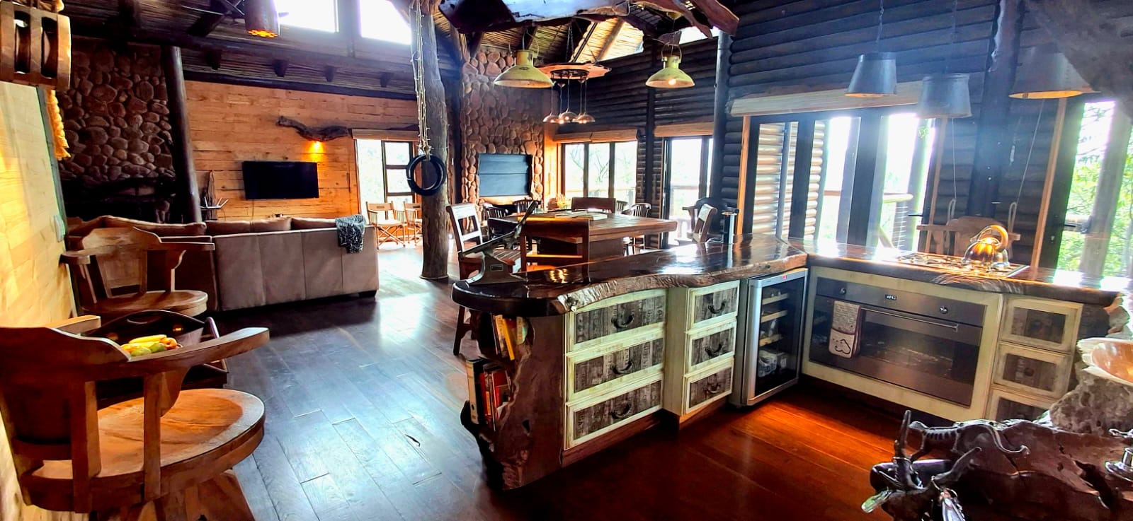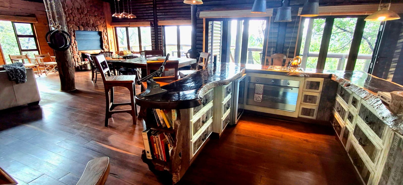 Nestled in the heart of the breathtaking mountains of the Bushveld, this one-of-a-kind handcrafted lodge is a true masterpiece of design, detail, and functionality. Every inch of this property has been meticulously planned and expertly executed — from the robust gabion walls that blend strength with natural beauty, to integrated security systems and comprehensive fire-fighting measures that ensure peace of mind in every season.