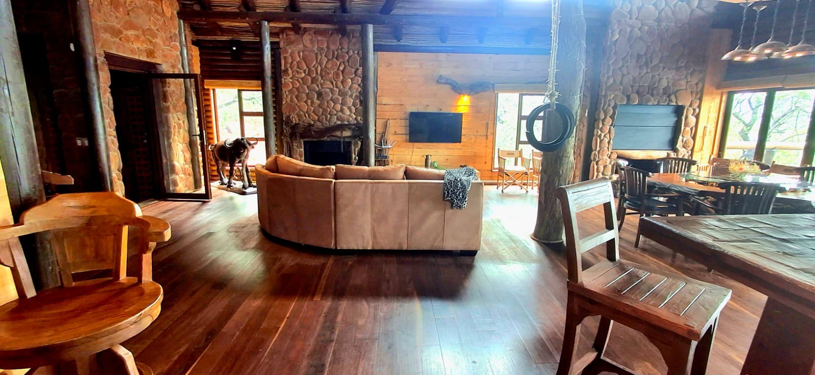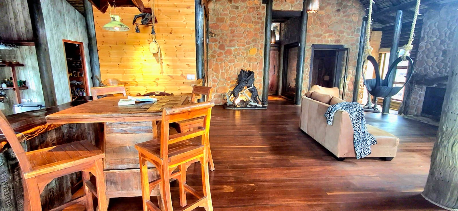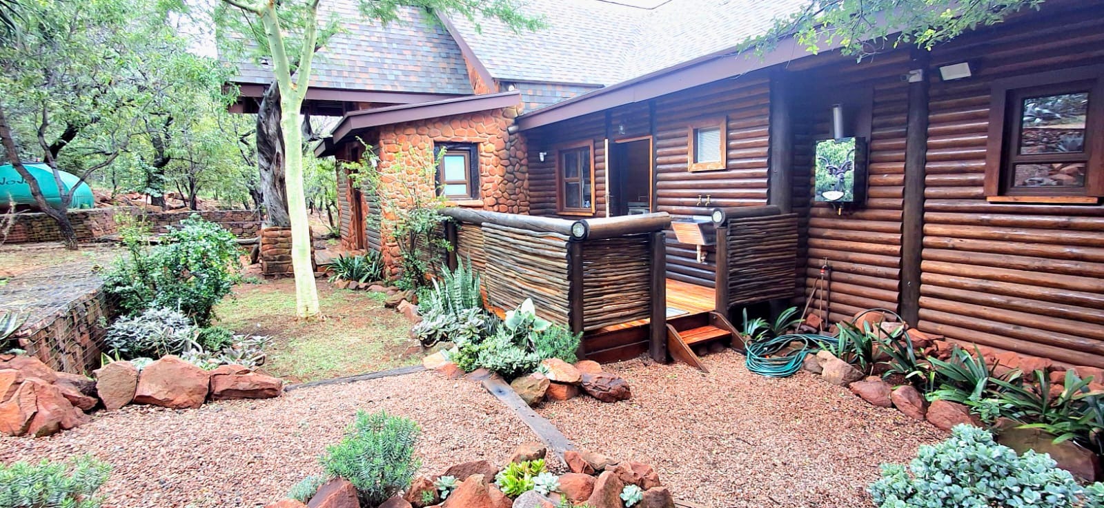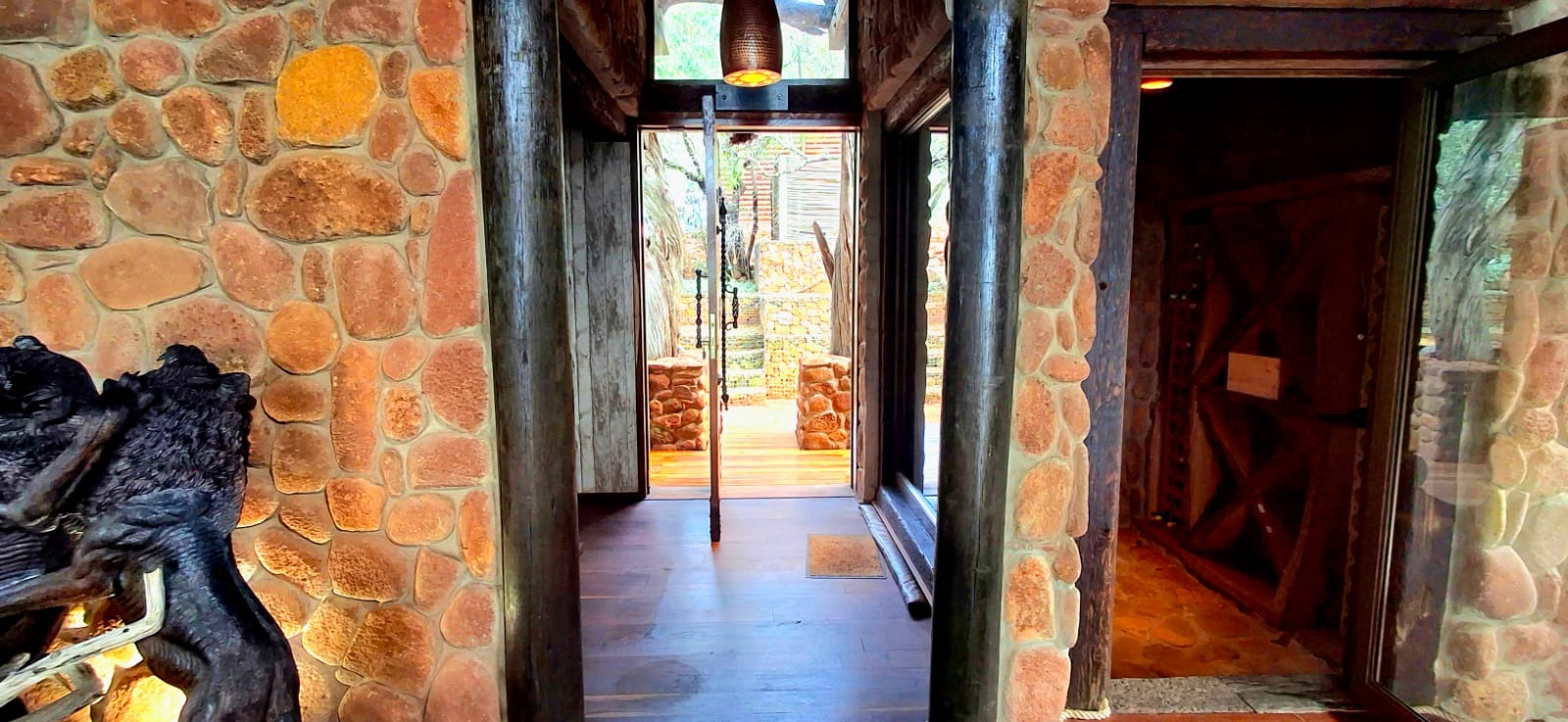 Nestled in the heart of the breathtaking mountains of the Bushveld, this one-of-a-kind handcrafted lodge is a true masterpiece of design, detail, and functionality. Every inch of this property has been meticulously planned and expertly executed — from the robust gabion walls that blend strength with natural beauty, to integrated security systems and comprehensive fire-fighting measures that ensure peace of mind in every season.
