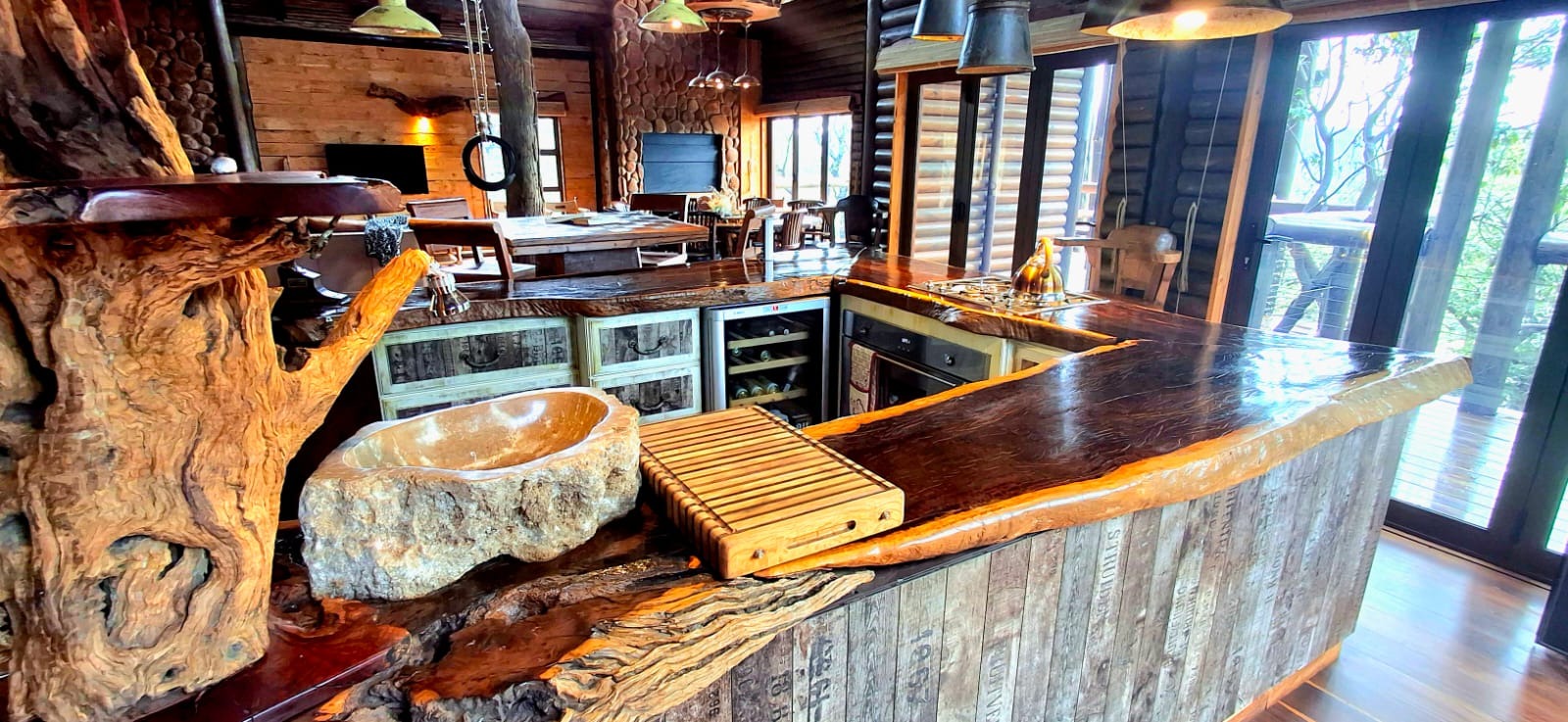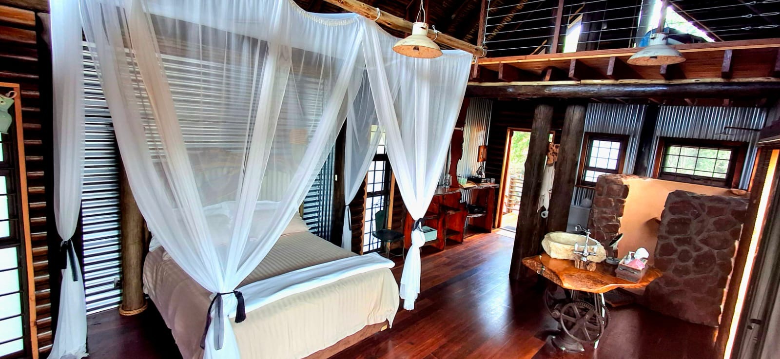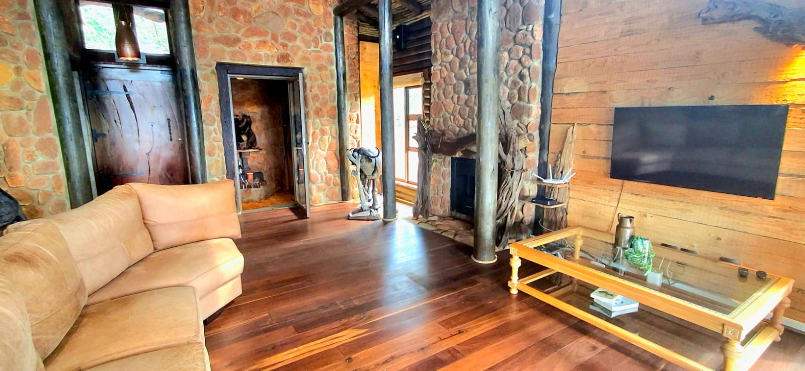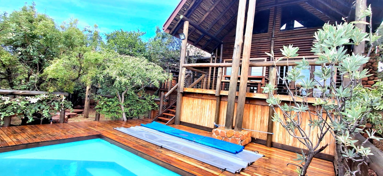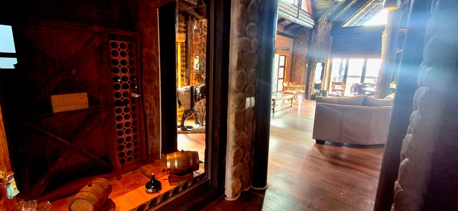 Nestled in the heart of the breathtaking mountains of the Bushveld, this one-of-a-kind handcrafted lodge is a true masterpiece of design, detail, and functionality. Every inch of this property has been meticulously planned and expertly executed — from the robust gabion walls that blend strength with natural beauty, to integrated security systems and comprehensive fire-fighting measures that ensure peace of mind in every season.