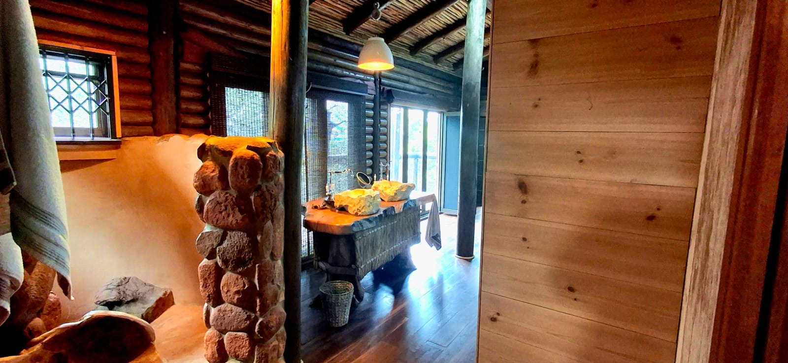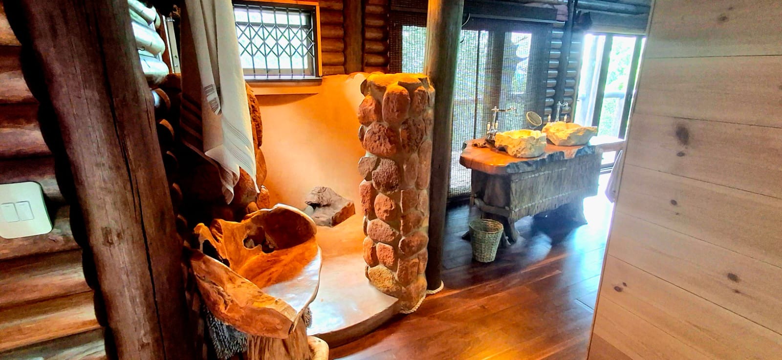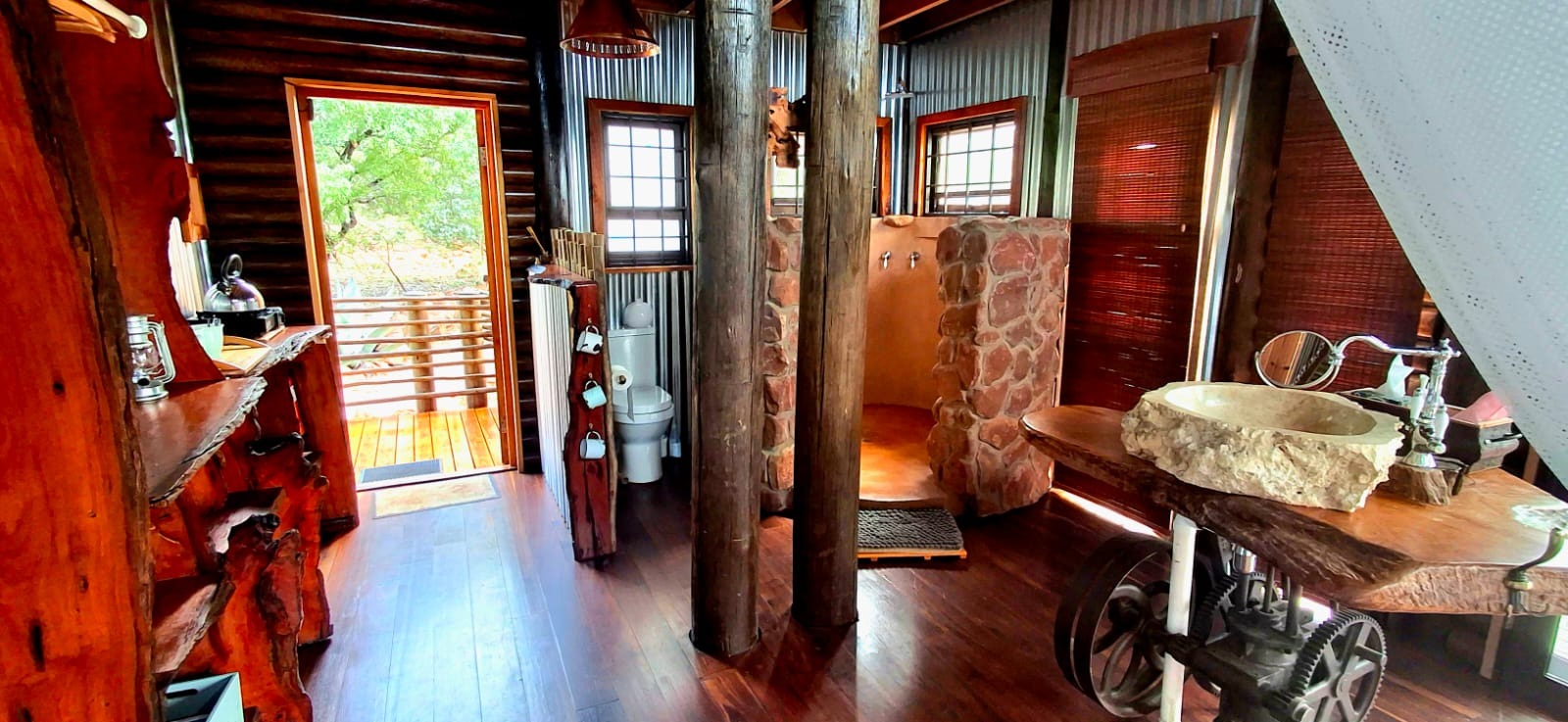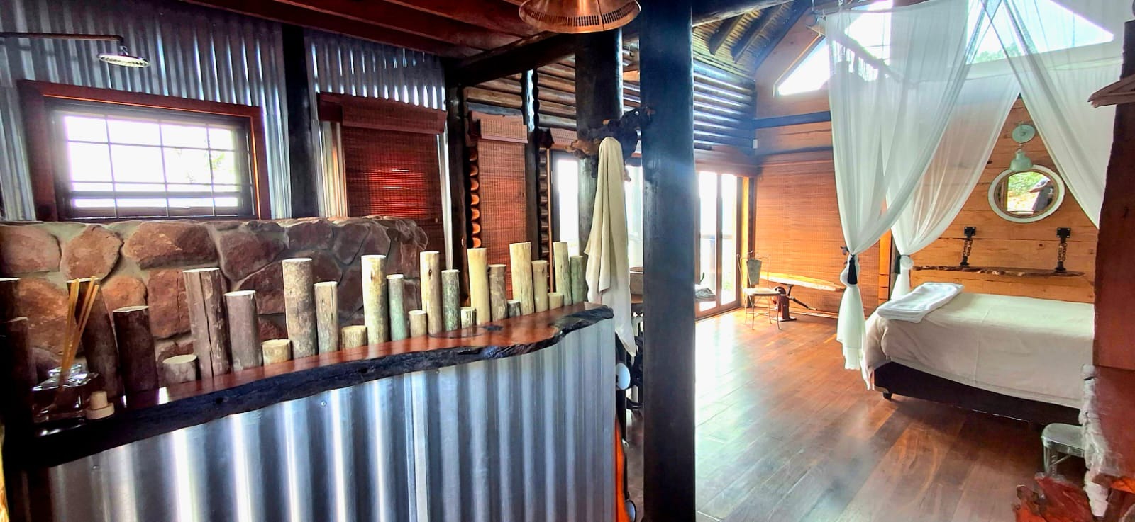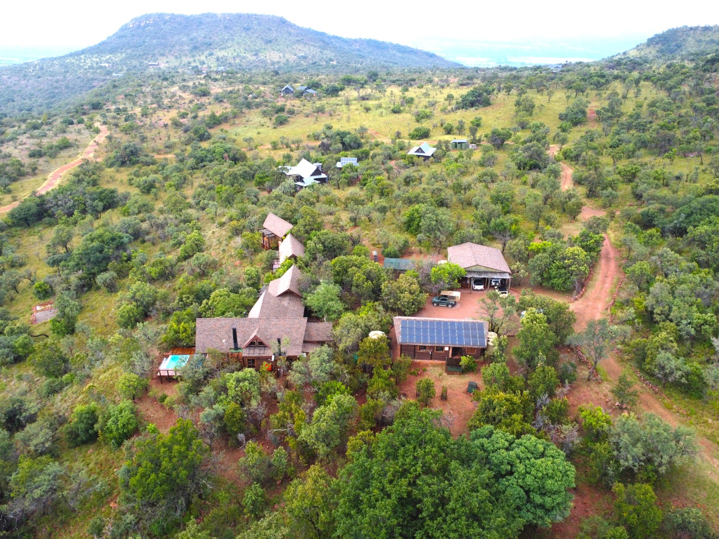 Nestled in the heart of the breathtaking mountains of the Bushveld, this one-of-a-kind handcrafted lodge is a true masterpiece of design, detail, and functionality. Every inch of this property has been meticulously planned and expertly executed — from the robust gabion walls that blend strength with natural beauty, to integrated security systems and comprehensive fire-fighting measures that ensure peace of mind in every season.