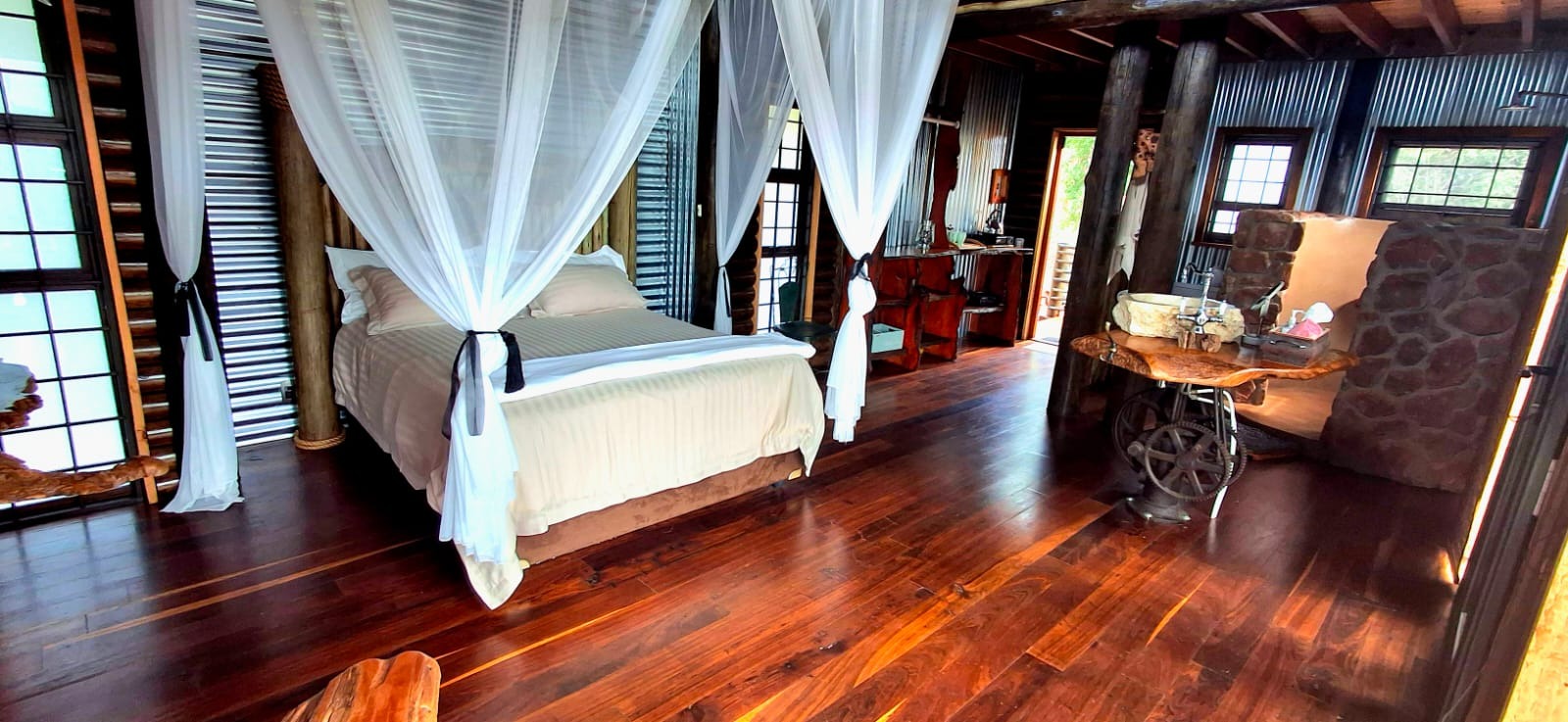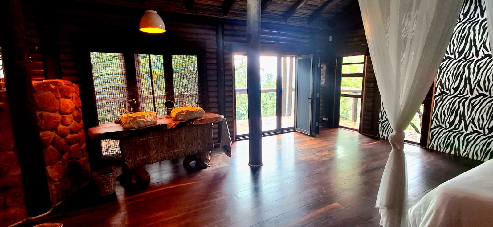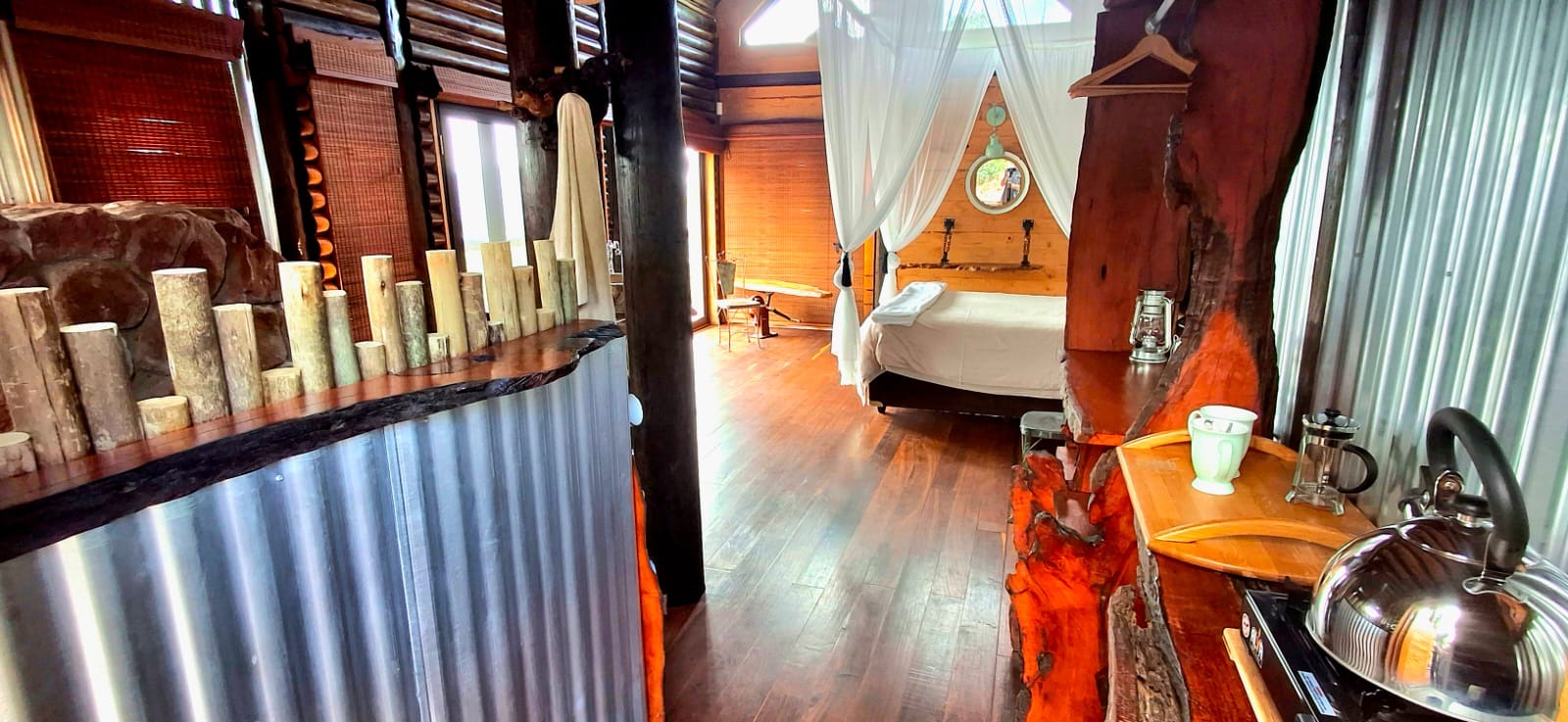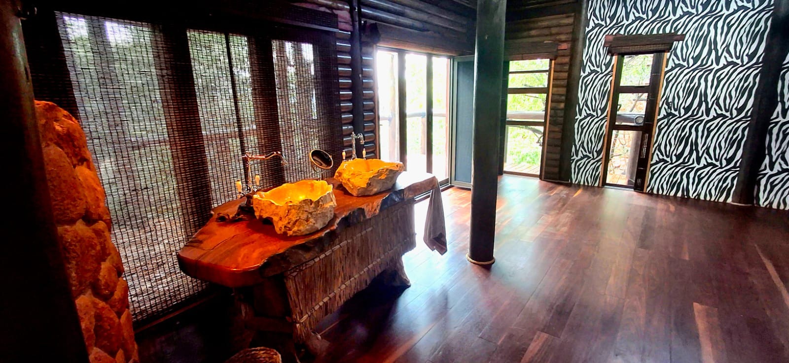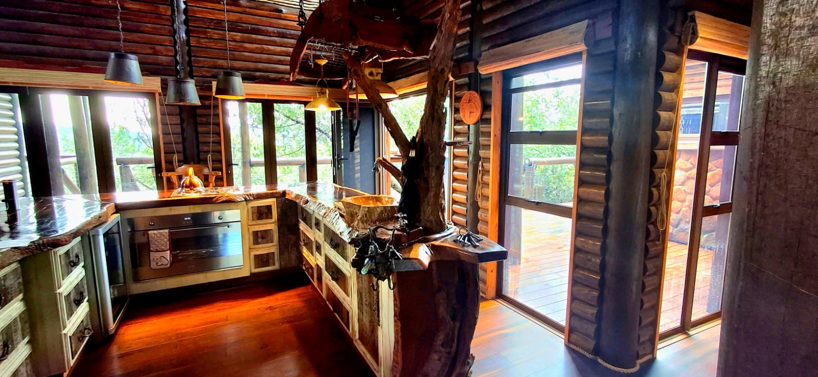 Nestled in the heart of the breathtaking mountains of the Bushveld, this one-of-a-kind handcrafted lodge is a true masterpiece of design, detail, and functionality. Every inch of this property has been meticulously planned and expertly executed — from the robust gabion walls that blend strength with natural beauty, to integrated security systems and comprehensive fire-fighting measures that ensure peace of mind in every season.