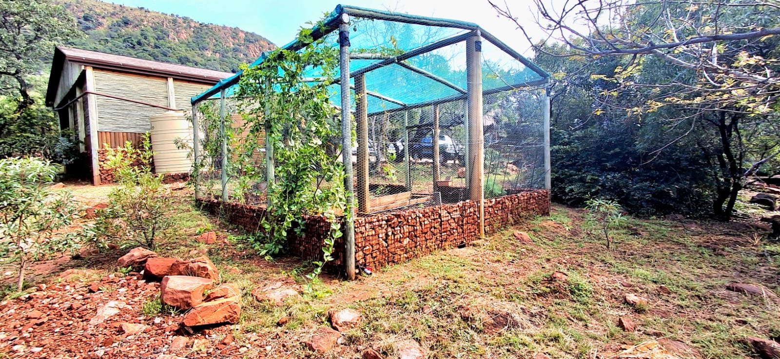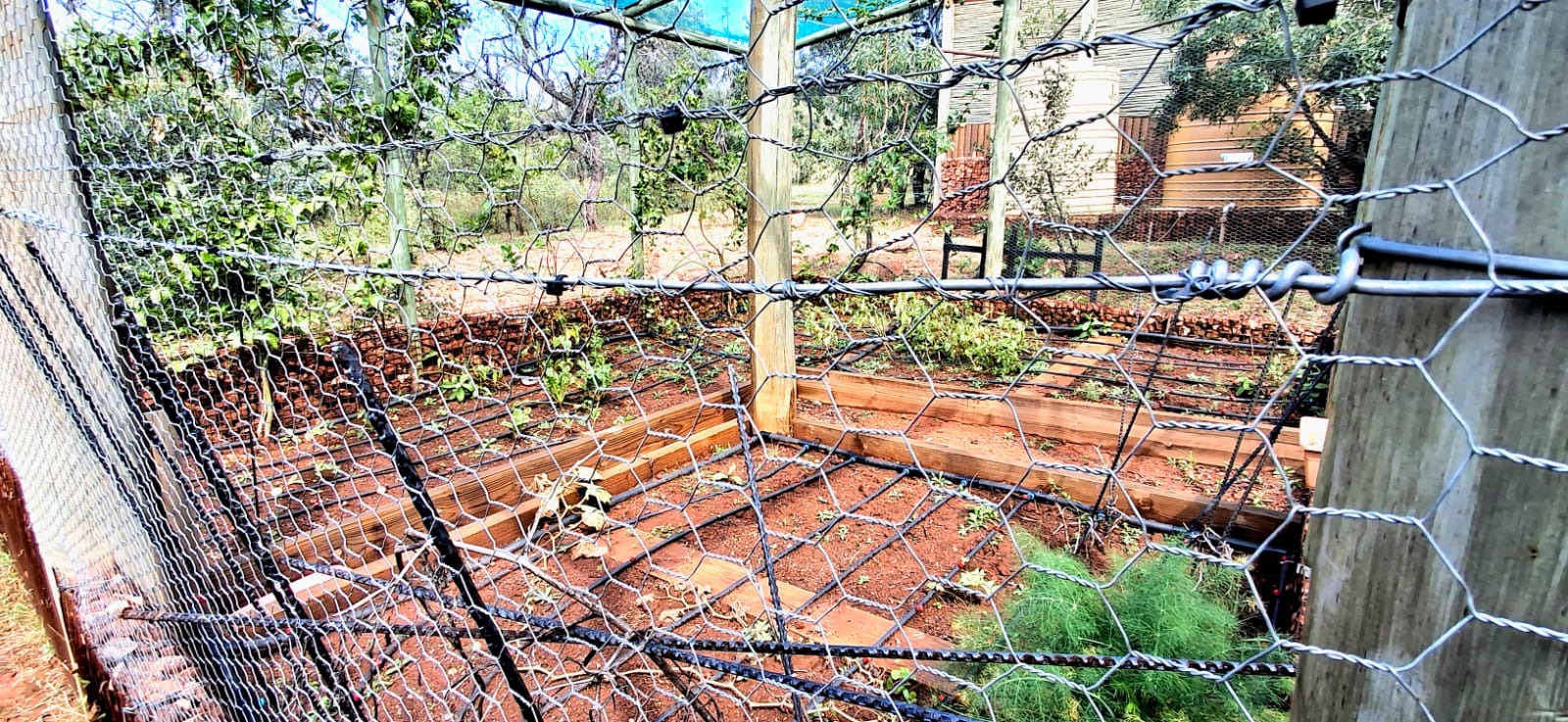 - Several water tanks supplying the home and irrigation system.