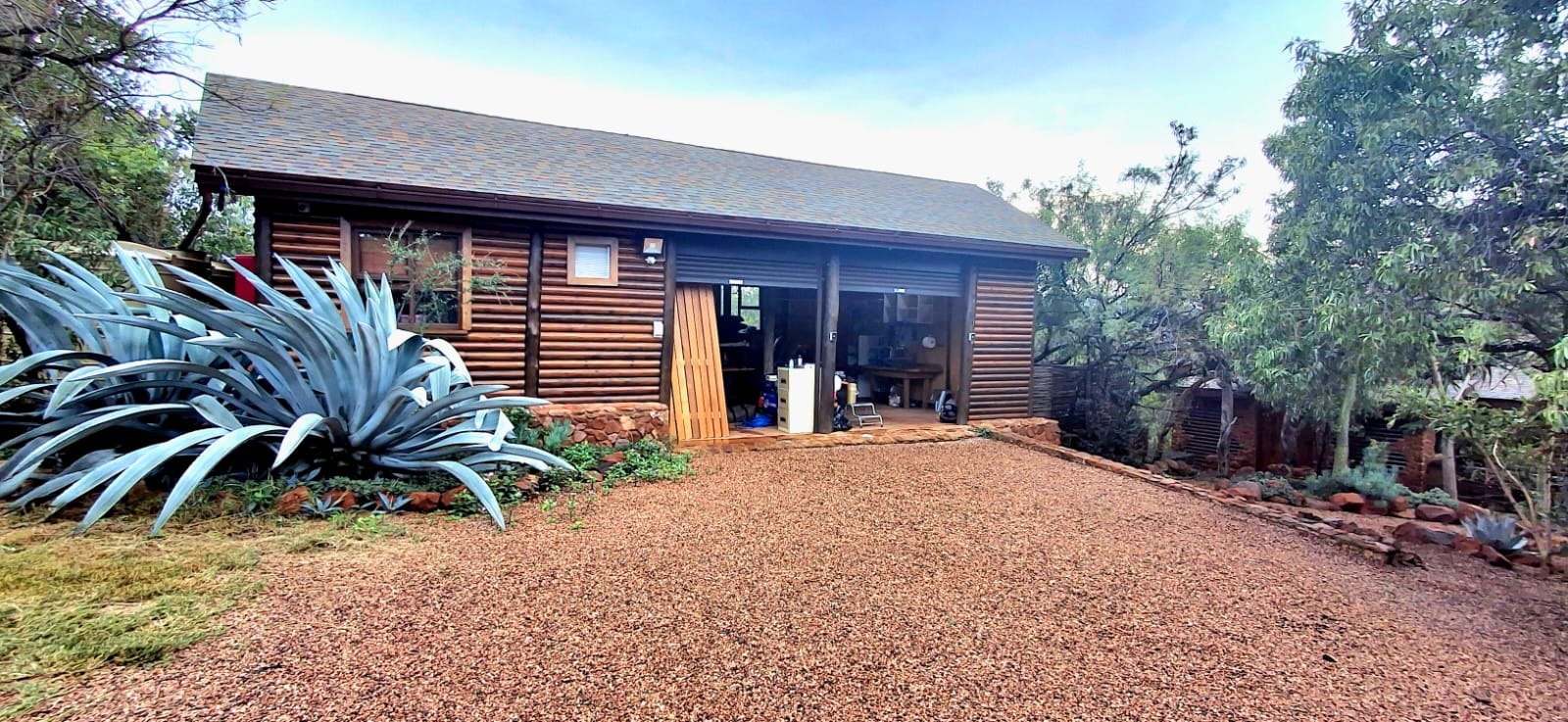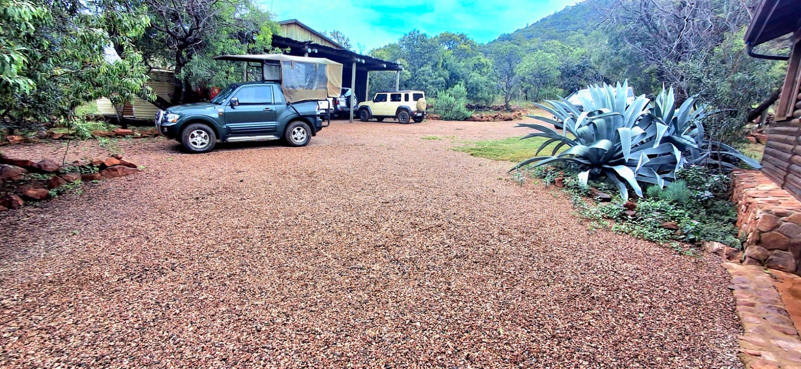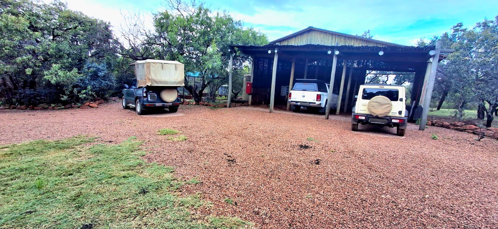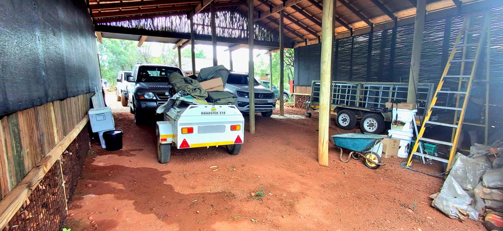 - A large covered carport accommodating up to six large vehicles.