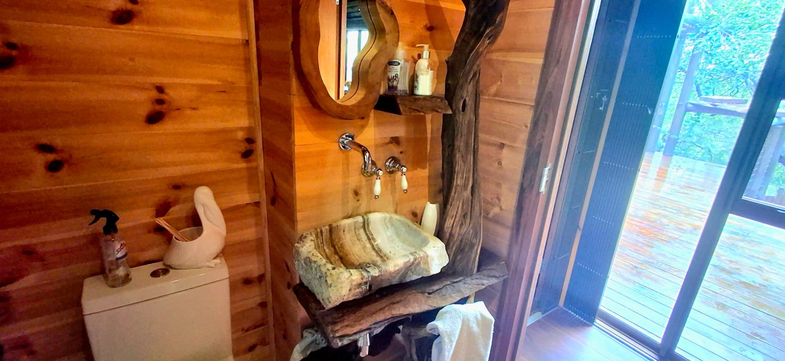 - Open shower, toilet, and basin.