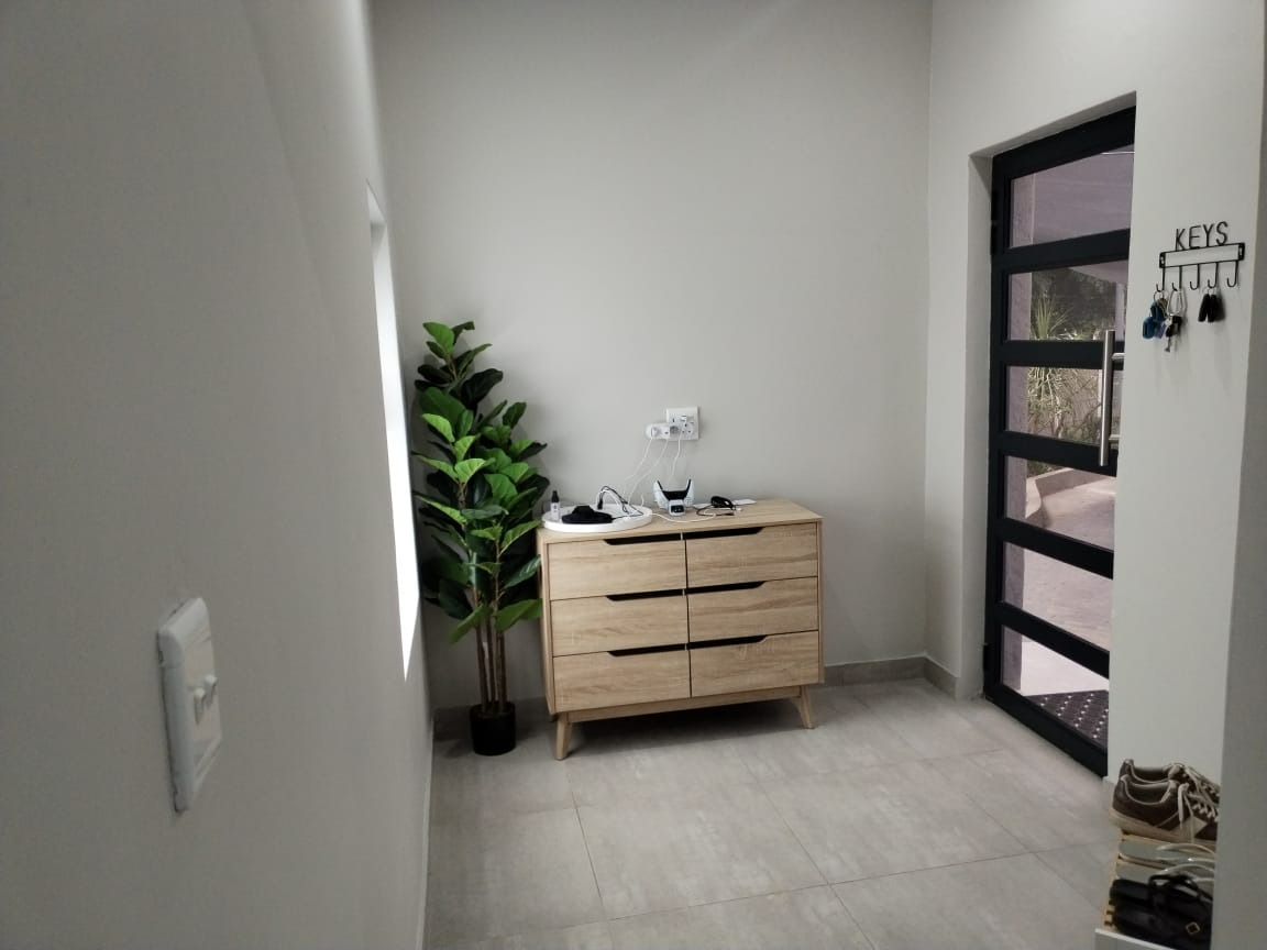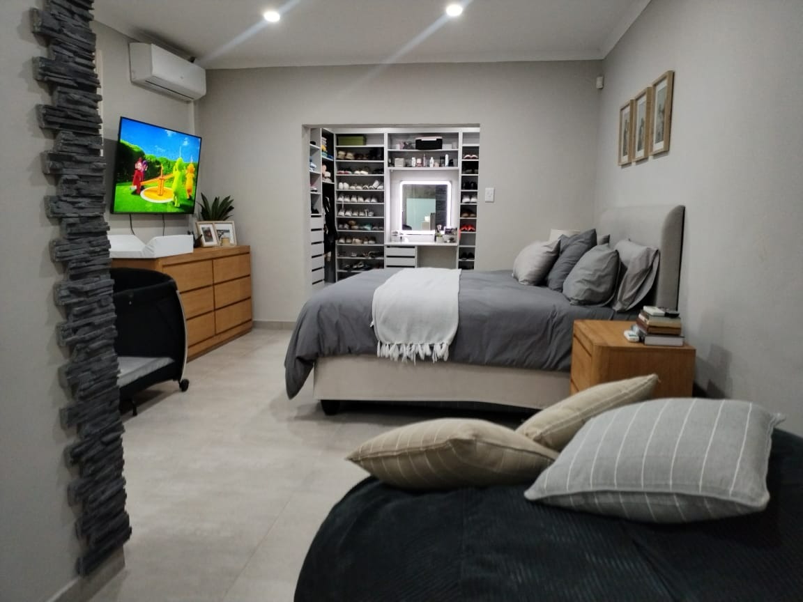 This home is equipped with advanced security and sustainability features for peace of mind and efficiency. Solar panels and a battery inverter significantly reduce energy consumption and provide backup power. Comprehensive security measures include an alarm system, electric fencing, 24-hour security, and CCTV surveillance. Fibre connectivity ensures high-speed internet, while an irrigation system maintains the beautiful garden with ease. Additional amenities include a laundry room, storage, a gym, and a Wendy house.