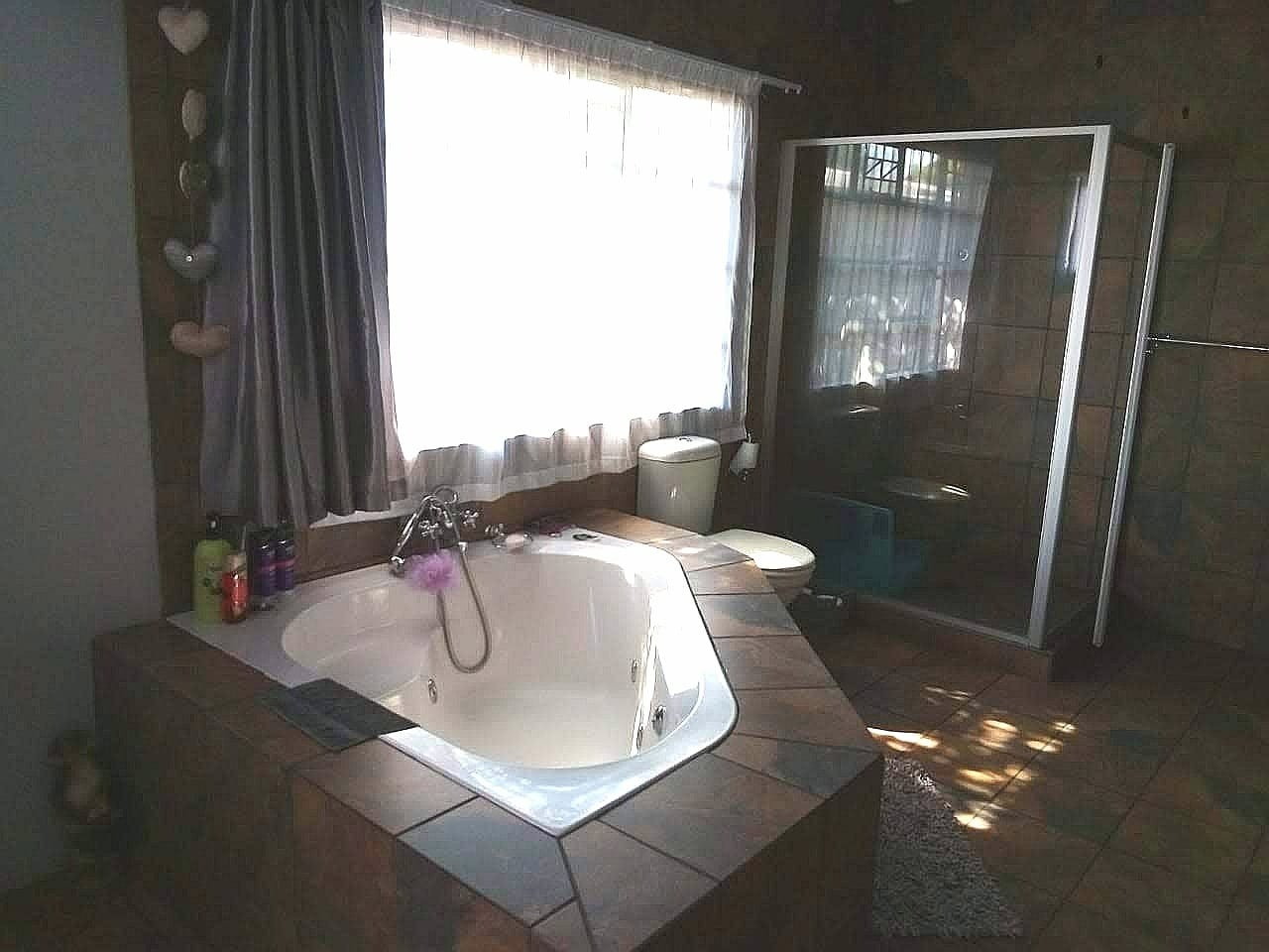 The outdoor area is designed for enjoyment, featuring a refreshing swimming pool, a lapa, and a built-in braai, perfect for outdoor gatherings. The established garden benefits from an irrigation system and a borehole, ensuring lush greenery. Additional conveniences include outside toilets and paving throughout the property, with pets allowed. For modern living, the home is equipped with solar panels, a battery inverter, and water tanks, enhancing energy and water resilience. Burglar bars and fibre connectivity complete this appealing offering.