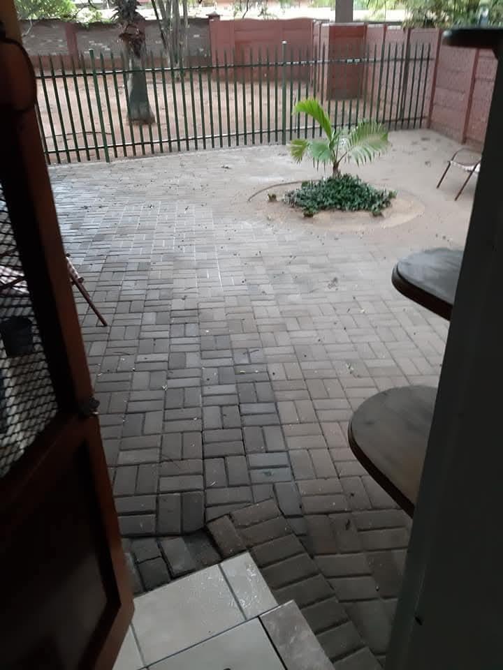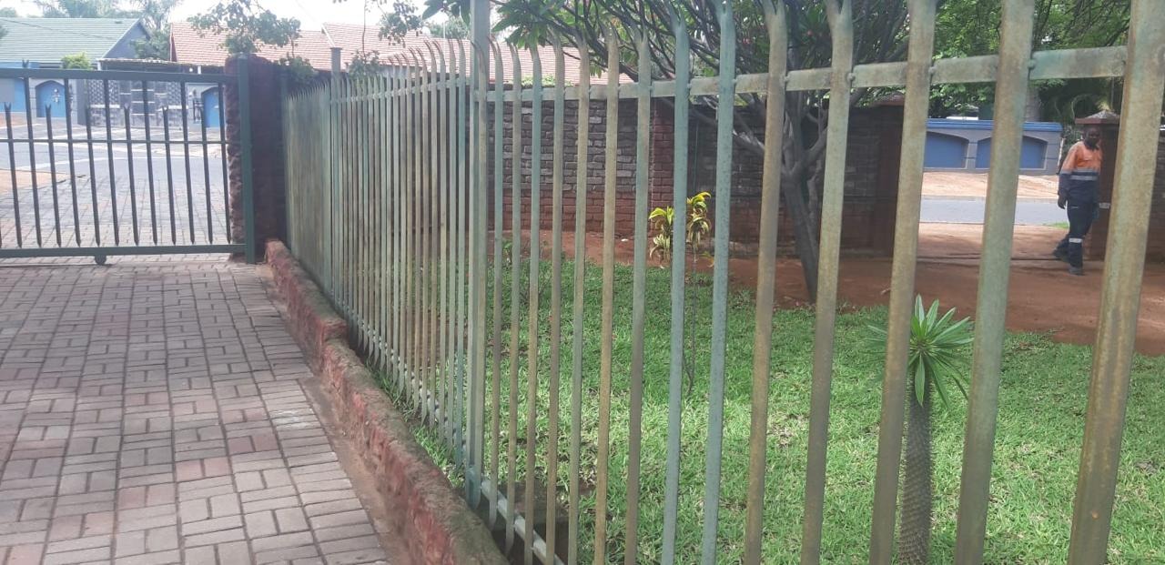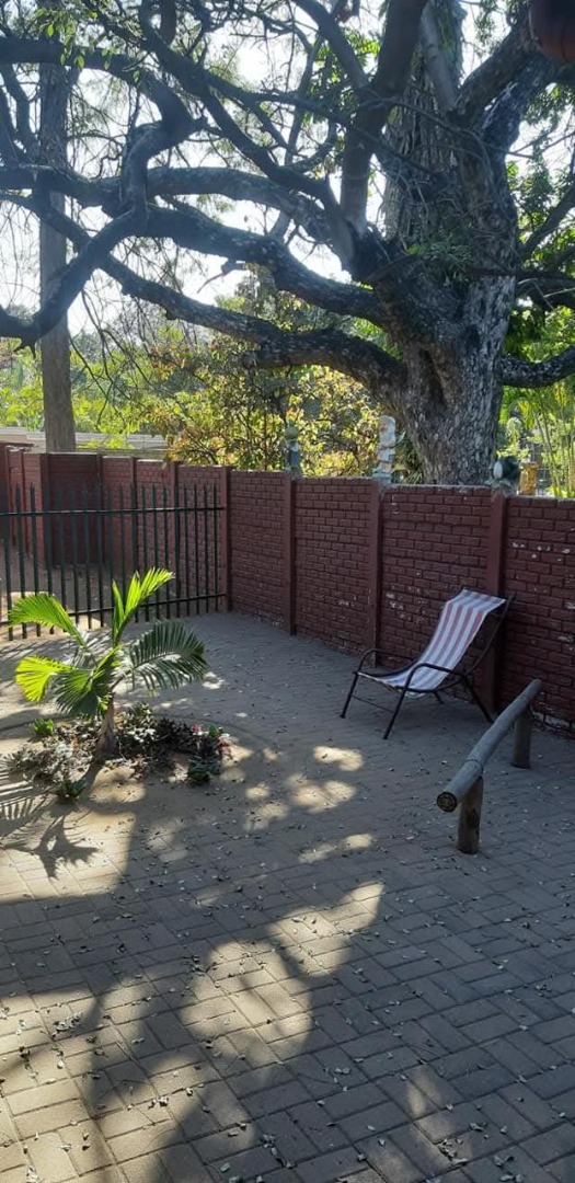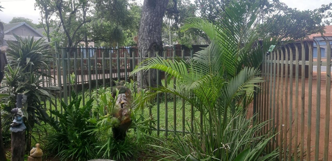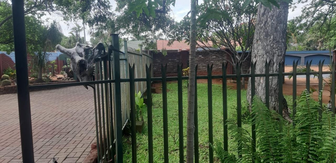 Discover this inviting 3-bedroom, 2-bathroom residence nestled in the heart of Phalaborwa, offering a blend of comfort and outdoor living on a generous 1270 sqm erf. The property immediately impresses with its significant kerb appeal, featuring a well-maintained brick paved driveway and a lush, diverse garden adorned with mature trees, succulents, and palms, creating a vibrant green oasis. Secure access is provided by a sturdy metal entrance gate and robust perimeter fencing, including a solid brick wall and spiked security elements, ensuring peace of mind.