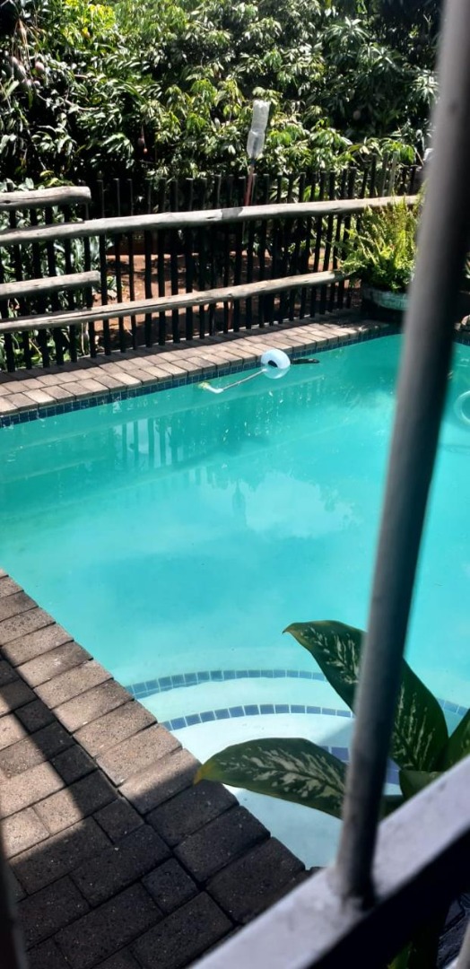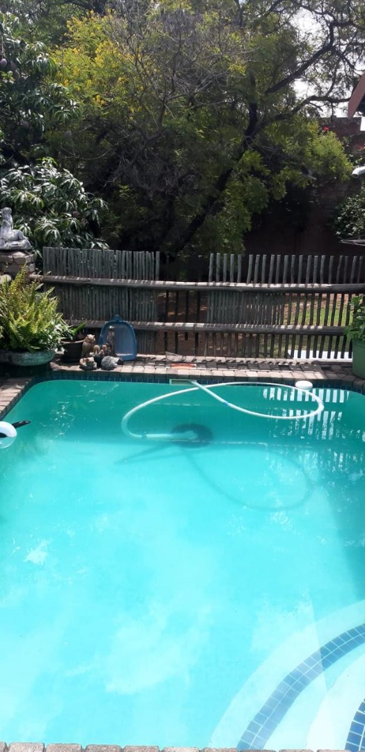 Step outside to embrace the South African lifestyle. A highlight is the clean, clear blue swimming pool, perfectly set amidst lush green surroundings and mature trees that ensure privacy. Paved outdoor areas and walkways enhance usability, while the property's pet-friendly policy welcomes furry companions. An additional flatlet provides versatile space, ideal for guests, extended family, or potential rental income. Two open parking spaces are available for residents and visitors.