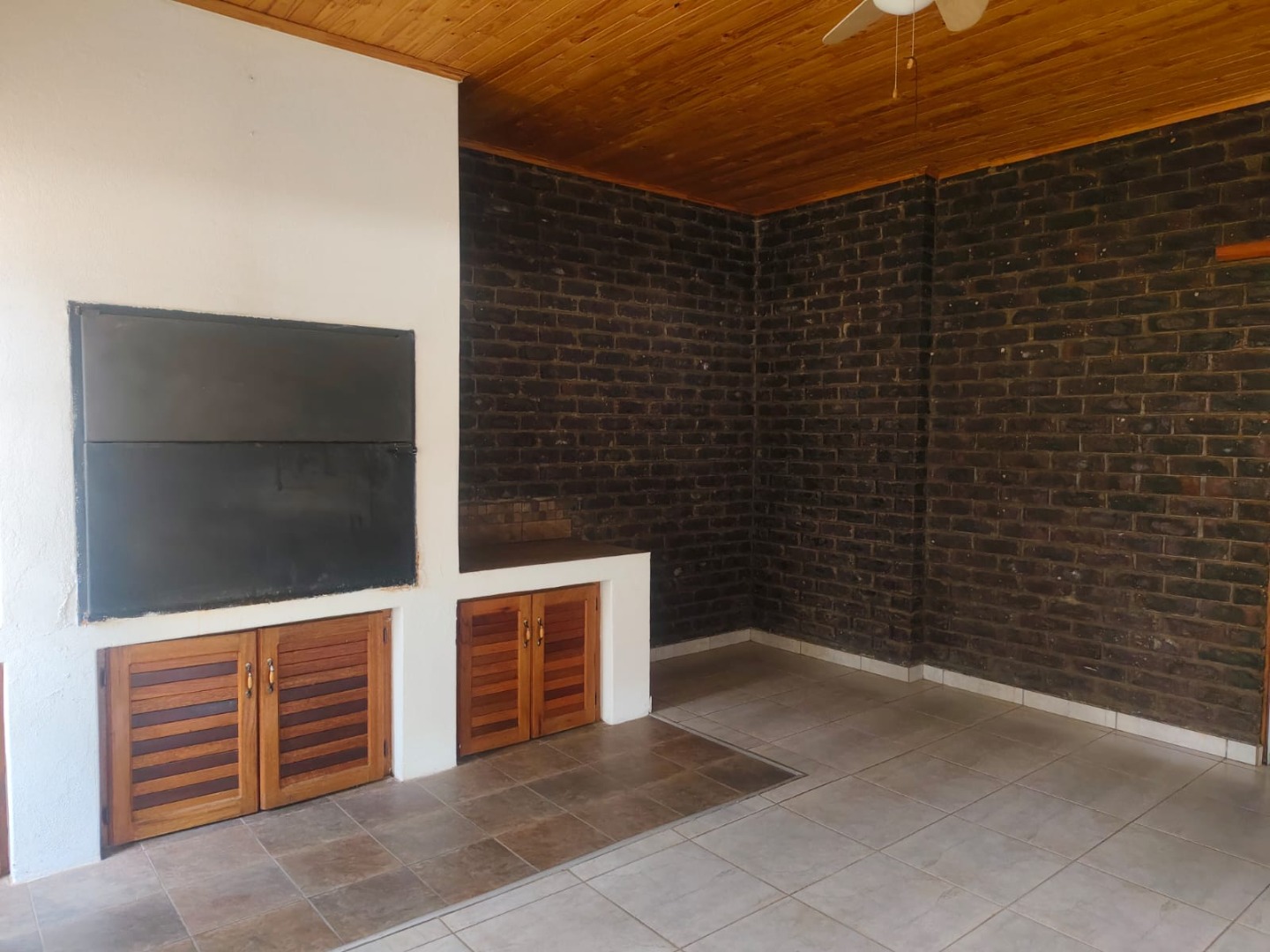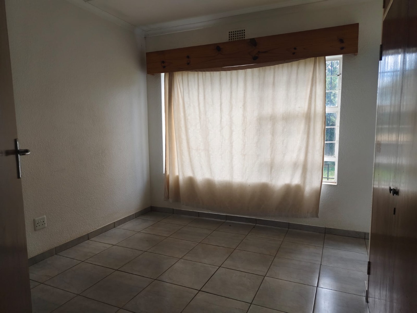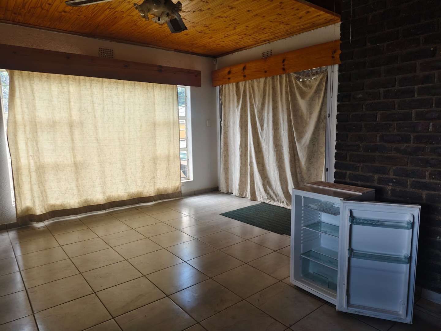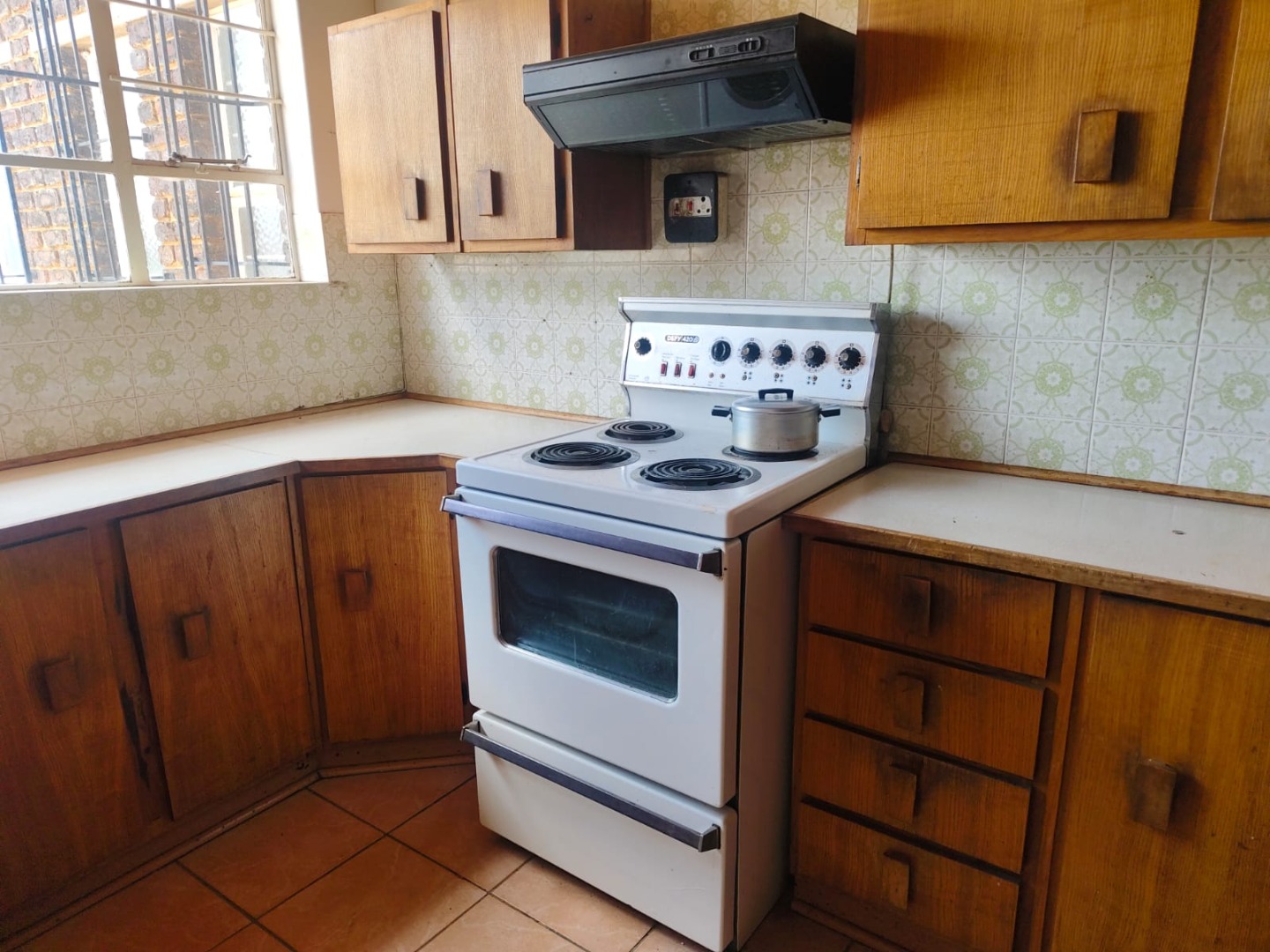 Outdoor amenities include a patio with a built-in braai, perfect for entertaining, and an attached garage. Security is enhanced with an alarm system, burglar bars, and a solar-powered CCTV system. The property also benefits from domestic rooms, outside toilets, and a second house, providing versatile living options. While presenting a dated aesthetic, this home offers a solid foundation for modernization. Pets are welcome.