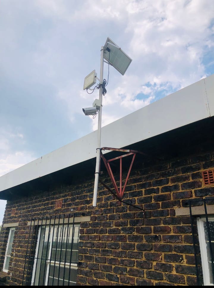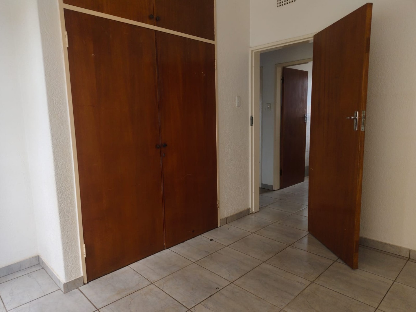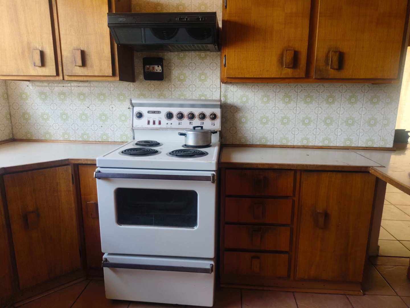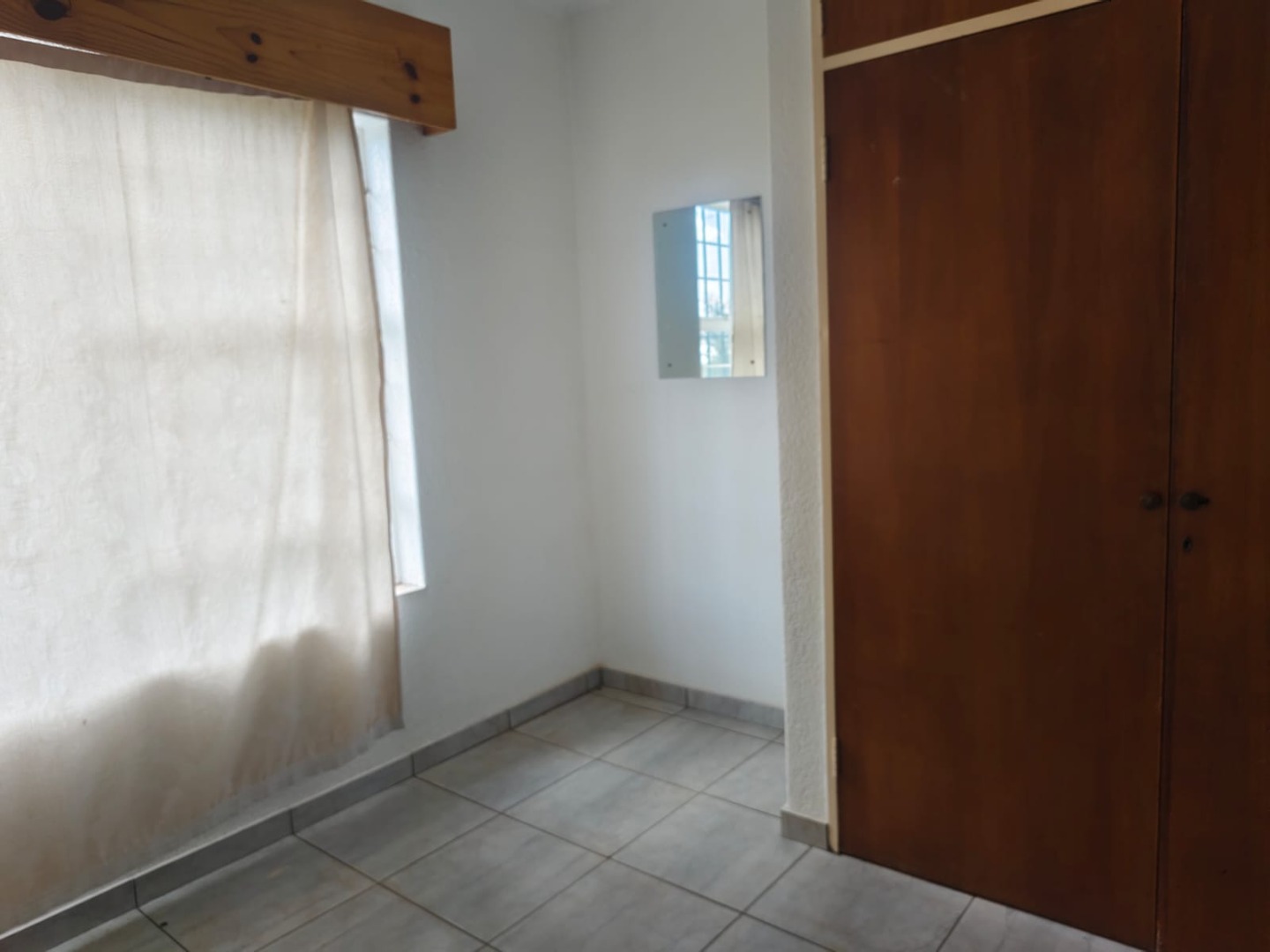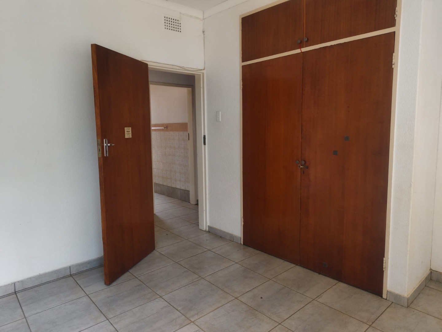 Outdoor amenities include a patio with a built-in braai, perfect for entertaining, and an attached garage. Security is enhanced with an alarm system, burglar bars, and a solar-powered CCTV system. The property also benefits from domestic rooms, outside toilets, and a second house, providing versatile living options. While presenting a dated aesthetic, this home offers a solid foundation for modernization. Pets are welcome.