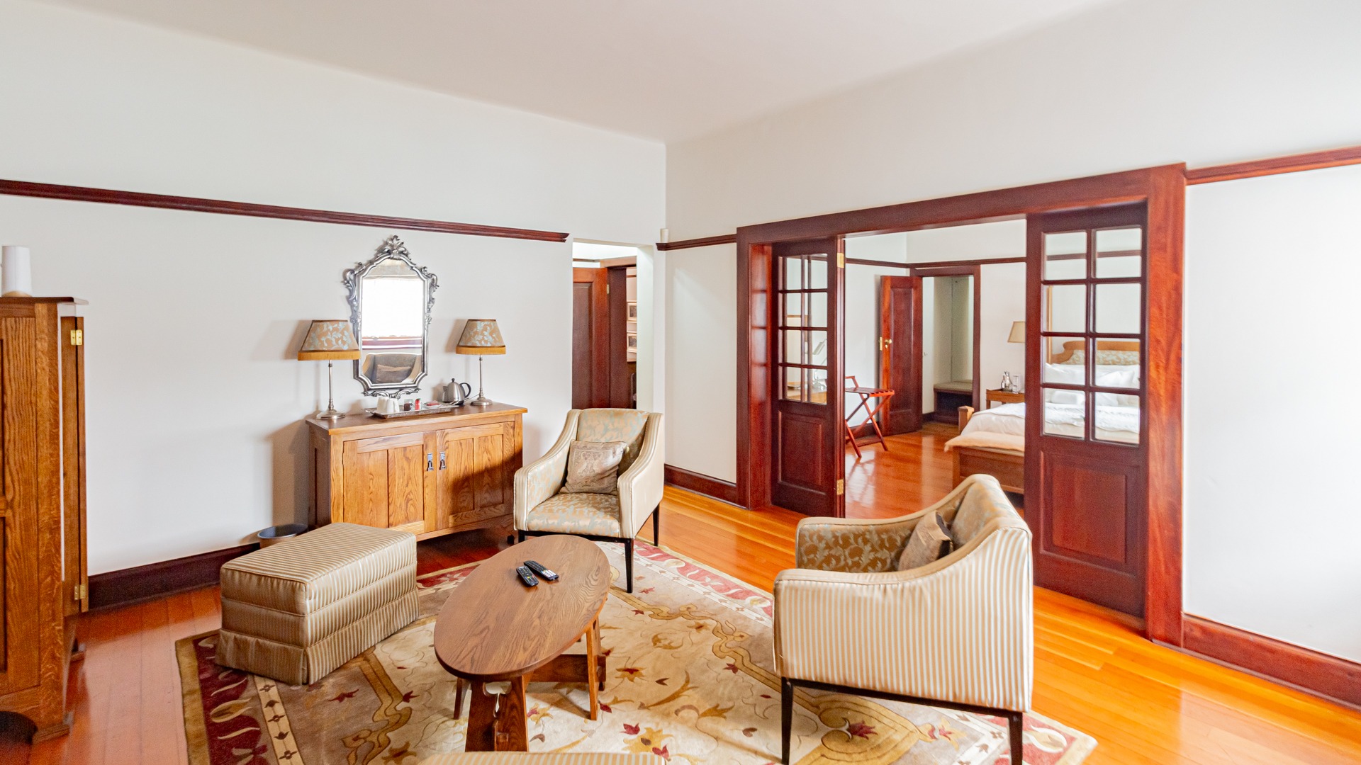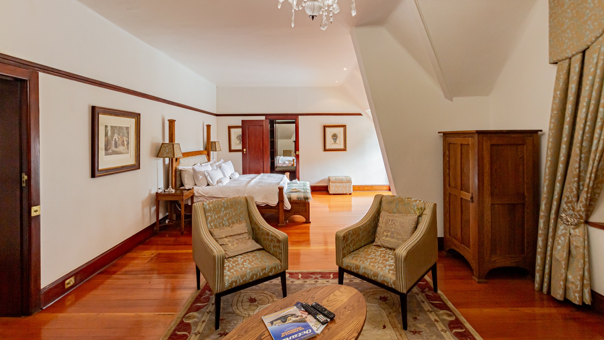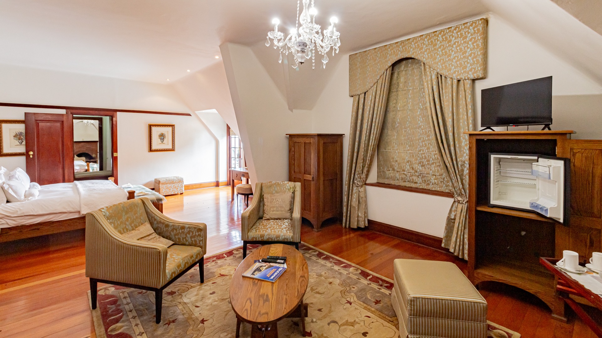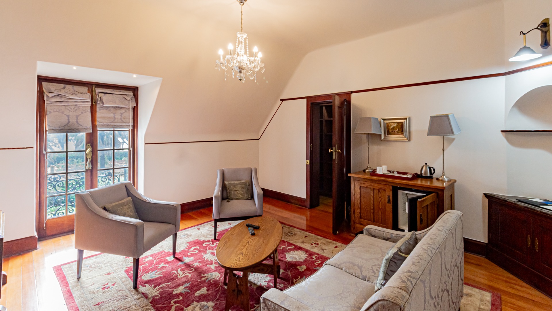 Outdoor living is a highlight, with vast manicured green lawns, formal gardens, and mature trees creating a picturesque and secluded environment. Enjoy leisurely days by the private swimming pool, or relax on the deck and patio areas while taking in the breathtaking scenic views. Practical amenities include an irrigation system, borehole, and water tanks, supporting the extensive grounds. The property offers extensive parking for up to 100 vehicles.